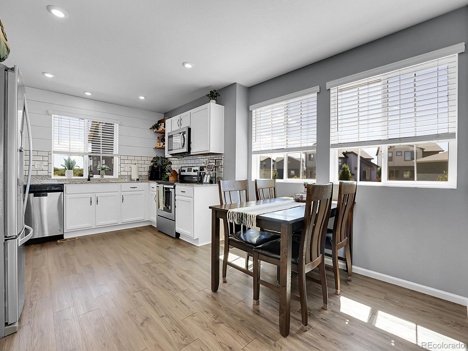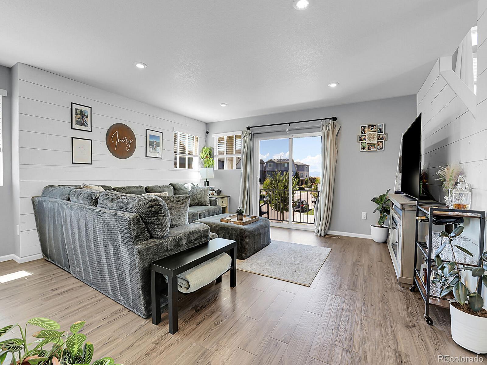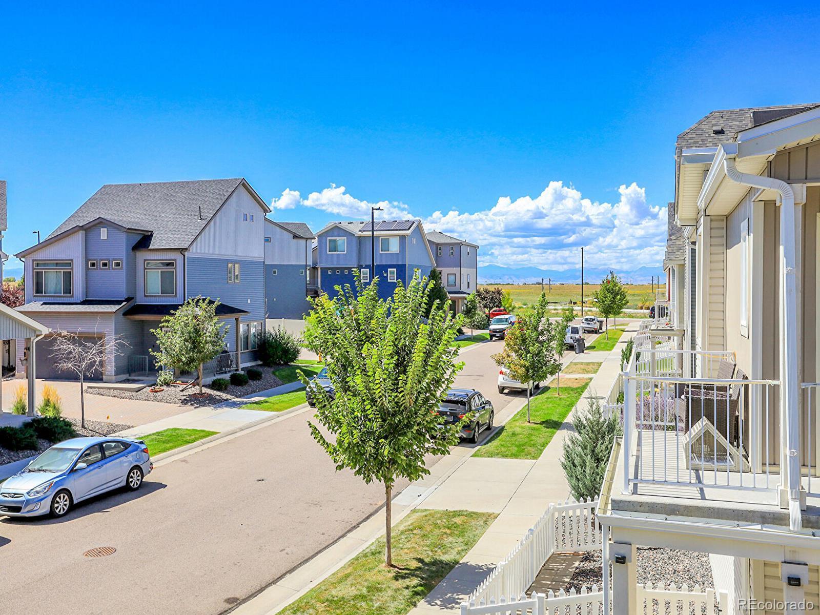 You really need to look at this in person - stunning - shows better than new! Buyer may qualify for some local financial assistance - contact listing agent! This home is nicer than new (see list below)! This meticulously maintained single-family residence presents an exceptional opportunity in the sought-after First Creek Village. Boasting 2 well-appointed bedrooms and 2 bathrooms along with a large laundry/flex room that can be used as an office or workout room. At 1,476 square feet, this home is designed for modern living, complete with an oversized 2-car garage for convenient parking and storage. The interior features a thoughtfully laid out floor plan, highlighted by a living room with recessed lighting that enhances both ambiance and comfort. The kitchen is equipped with stainless steel appliances, elegant white cabinetry, and light stone counters, making it a perfect space for culinary enthusiasts. Adjacent to the kitchen, the dining area benefits from abundant natural light, creating an inviting atmosphere for gatherings. $58k in updates: new siding/roof installed in 2024/25*new gutters June 2025*new garage door Sept 2025*freshly painted front door and trim*Built in shelving for storage in garage*Countertop, cabinet, and rod over washer and dryer*Shiplap in kitchen behind sink and living room*Wainscoting, wallpaper and shelving in guest bedroom and bathroom*Barn door in primary bedroom for closet/bathroom*Upgraded luxury shower in primary bathr with rain shower head & handheld*Shelving over toilet in primary bathroom*Ring doorbell and Ring floodlight camera over garage Outdoor living is seamlessly integrated with a covered porch and balcony, ideal for entertaining or enjoying quiet moments. The First Creek Village community offers a suburban lifestyle with sidewalks, parks, and easy access to local amenities. Located close to I-70, 225, and Pena for quick access to DIA, Denver and Buckley Air Force Base.