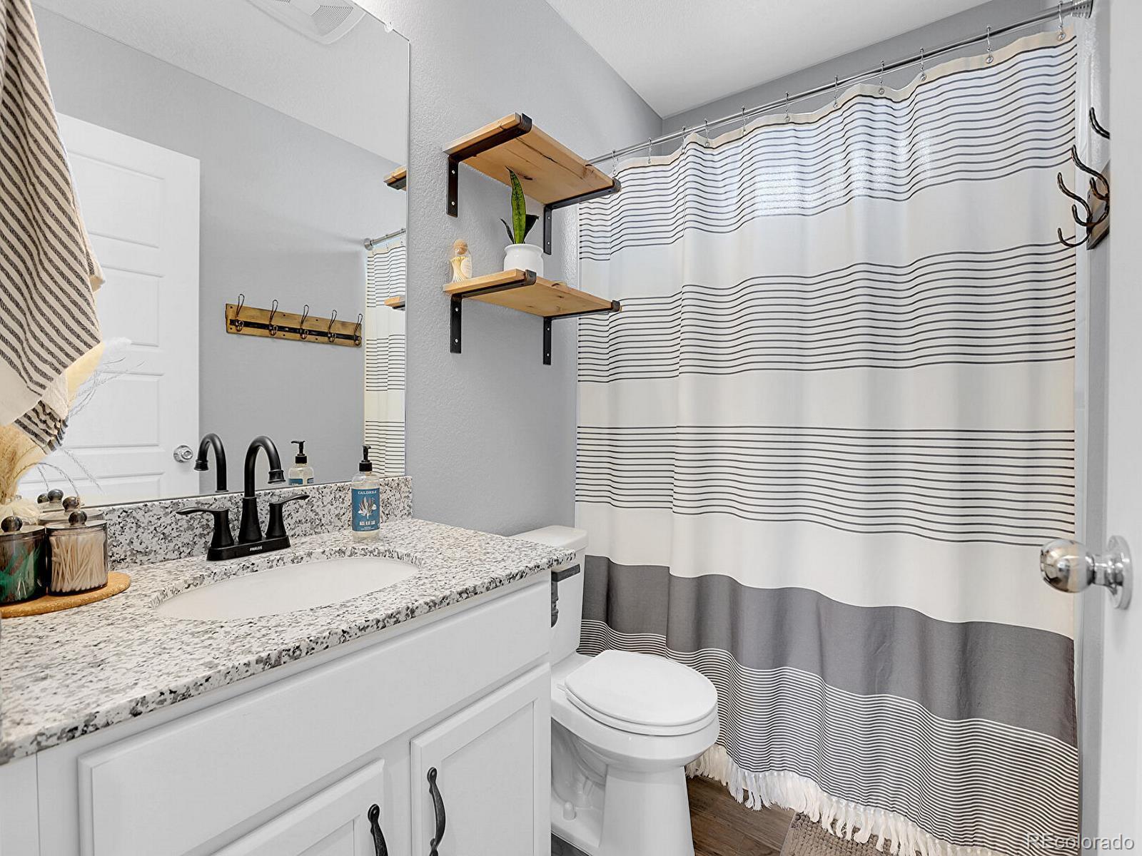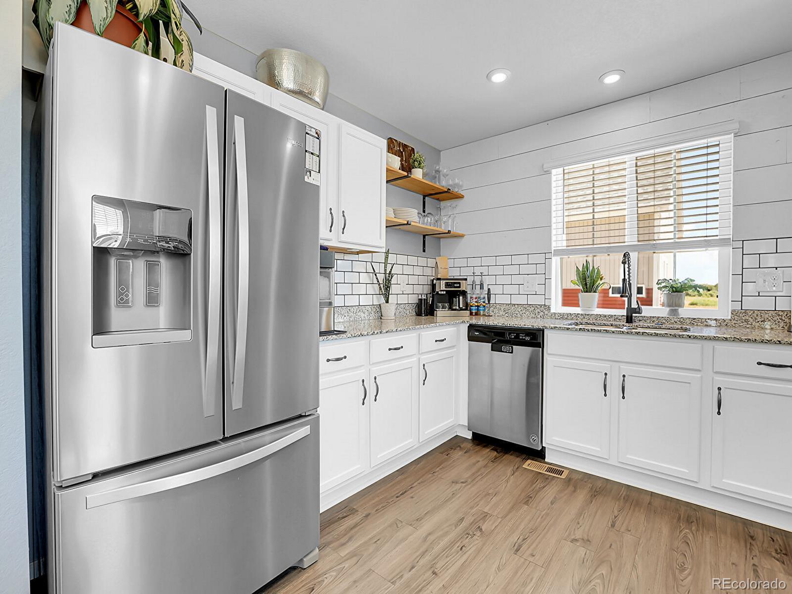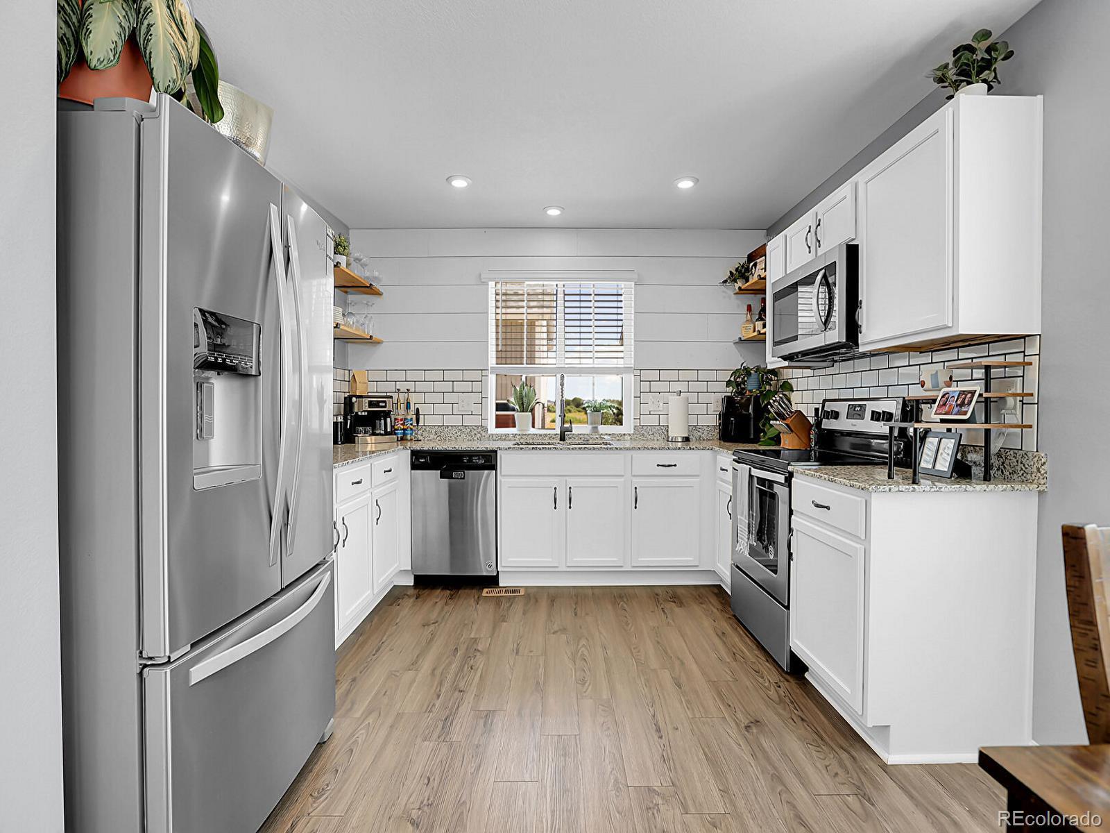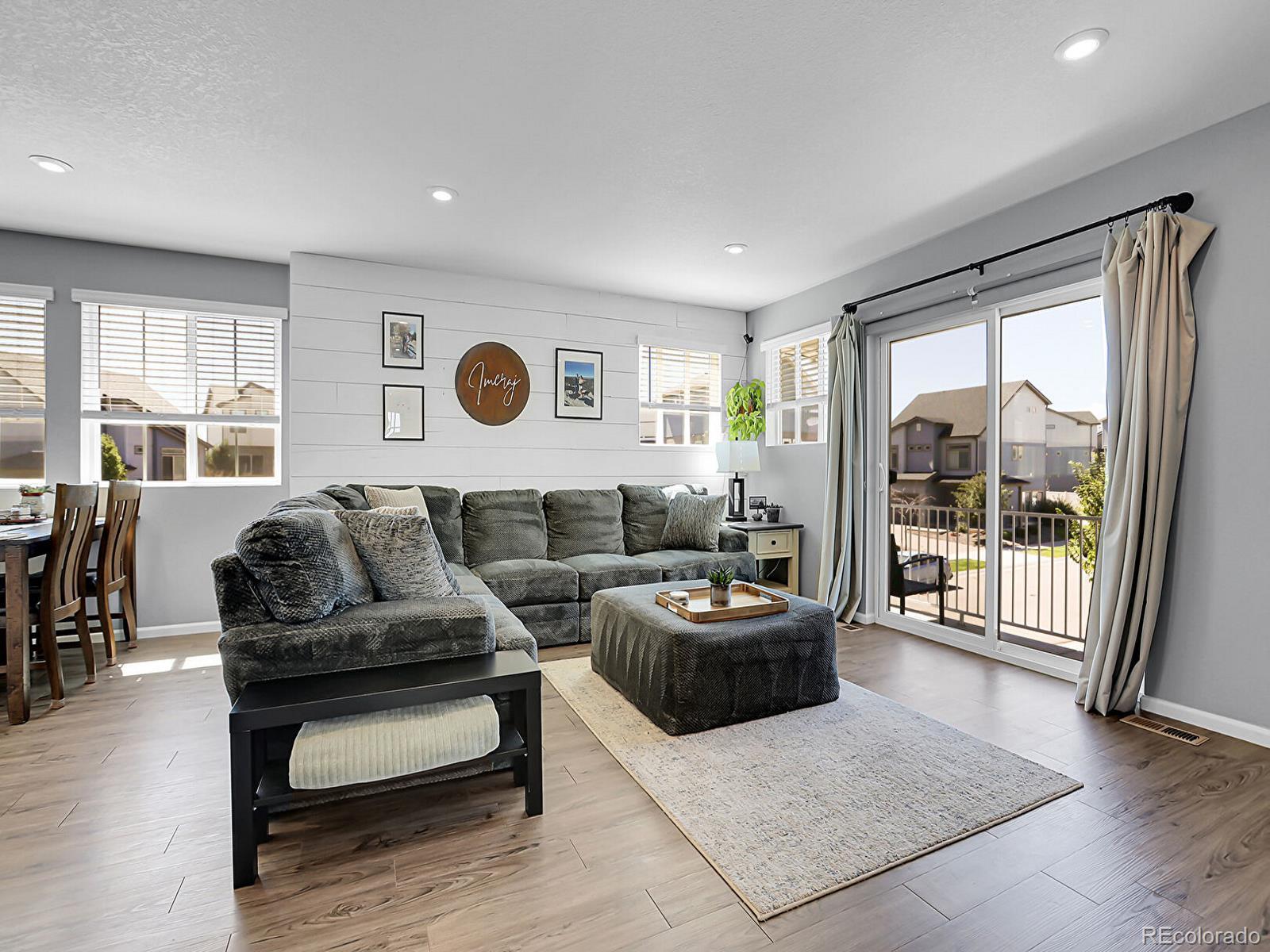 You really need to look at this in person - stunning - shows better than new! Buyer may qualify for some local financial assistance - contact listing agent! This home is nicer than new (see list below)! This meticulously maintained single-family residence presents an exceptional opportunity in the sought-after First Creek Village. Boasting 2 well-appointed bedrooms and 2 bathrooms along with a large laundry/flex room that can be used as an office or workout room. At 1,476 square feet, this home is designed for modern living, complete with an oversized 2-car garage for convenient parking and storage. The interior features a thoughtfully laid out floor plan, highlighted by a living room with recessed lighting that enhances both ambiance and comfort. The kitchen is equipped with stainless steel appliances, elegant white cabinetry, and light stone counters, making it a perfect space for culinary enthusiasts. Adjacent to the kitchen, the dining area benefits from abundant natural light, creating an inviting atmosphere for gatherings. $58k in updates: new siding/roof installed in 2024/25*new gutters June 2025*new garage door Sept 2025*freshly painted front door and trim*Built in shelving for storage in garage*Countertop, cabinet, and rod over washer and dryer*Shiplap in kitchen behind sink and living room*Wainscoting, wallpaper and shelving in guest bedroom and bathroom*Barn door in primary bedroom for closet/bathroom*Upgraded luxury shower in primary bathr with rain shower head & handheld*Shelving over toilet in primary bathroom*Ring doorbell and Ring floodlight camera over garage Outdoor living is seamlessly integrated with a covered porch and balcony, ideal for entertaining or enjoying quiet moments. The First Creek Village community offers a suburban lifestyle with sidewalks, parks, and easy access to local amenities. Located close to I-70, 225, and Pena for quick access to DIA, Denver and Buckley Air Force Base.