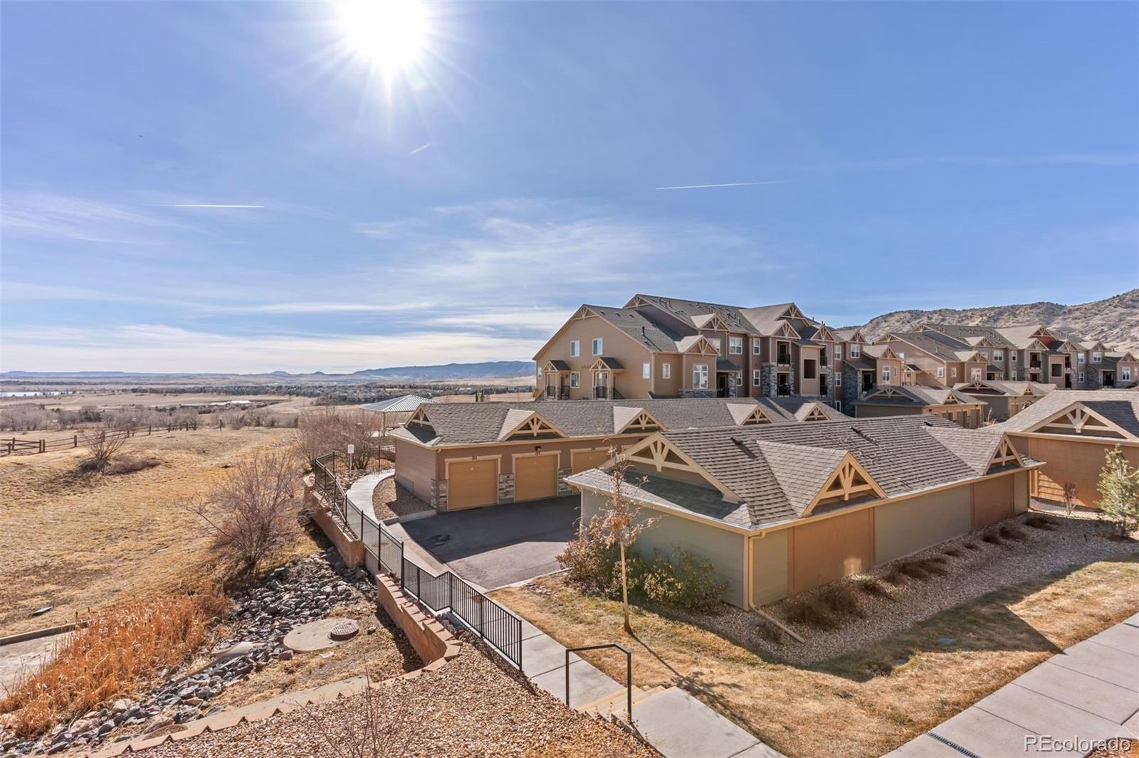 Step into modern elegance with this stunning end-unit townhouse in the highly sought-after Chatfield Bluffs community. Spanning over 1,800 square feet, this 2022-built gem offers 3 spacious bedrooms and 3 bathrooms, perfectly designed for comfortable living and effortless entertaining. The home features every luxury upgrade, including quartz countertops, floor-to-ceiling custom tile at the fireplace, Kohler fixtures, stainless appliances, natural gas range, oversized glass enclosed shower in the primary bathroom, large walk-in closet, upgraded railings, upgraded 9” LVP flooring, tankless hot water heater, Samsung washer and dryer. Imagine cozy evenings by the fireplace, enjoying your 85-inch TV, or hosting an incredible dinner in your contemporary kitchen and dining space. Did we mention the views? You’ll be captivated by panoramic mountain vistas and the serene beauty of Chatfield Lake. Every detail of this townhouse speaks to modern luxury and thoughtful design. Don’t miss the chance to make this breathtaking property your home! Easy access to C-470, downtown Denver, DTC and Red Rocks. Grab your bike or take a hike to Deer Creek Park, Chatfield Reservoir and so much more.