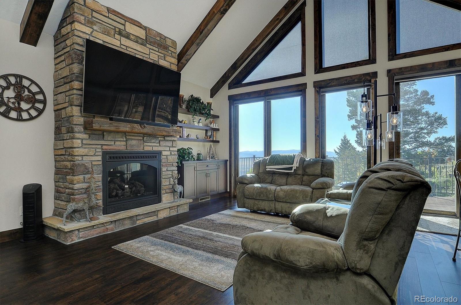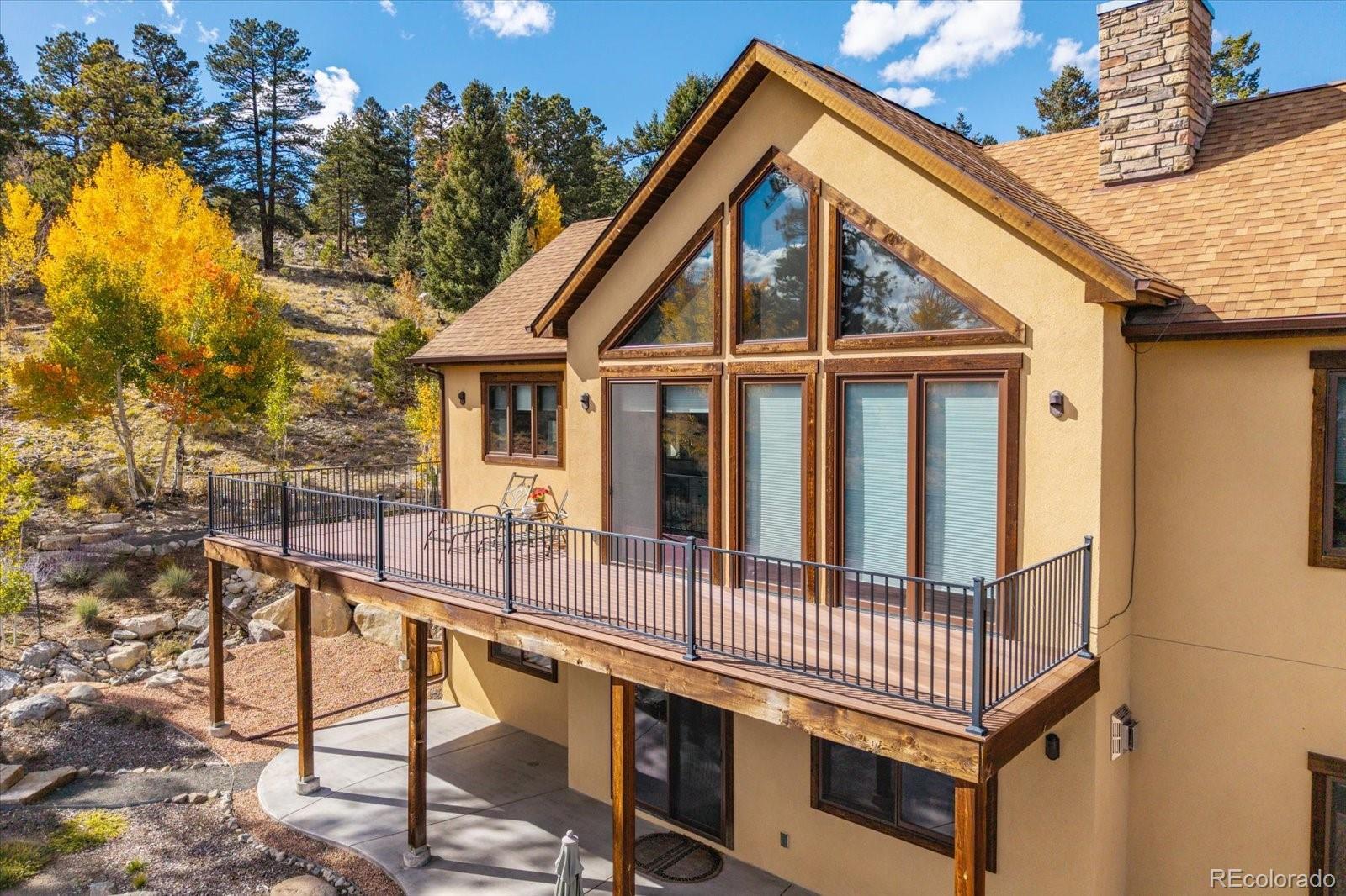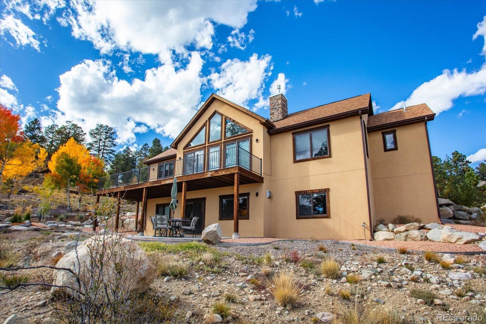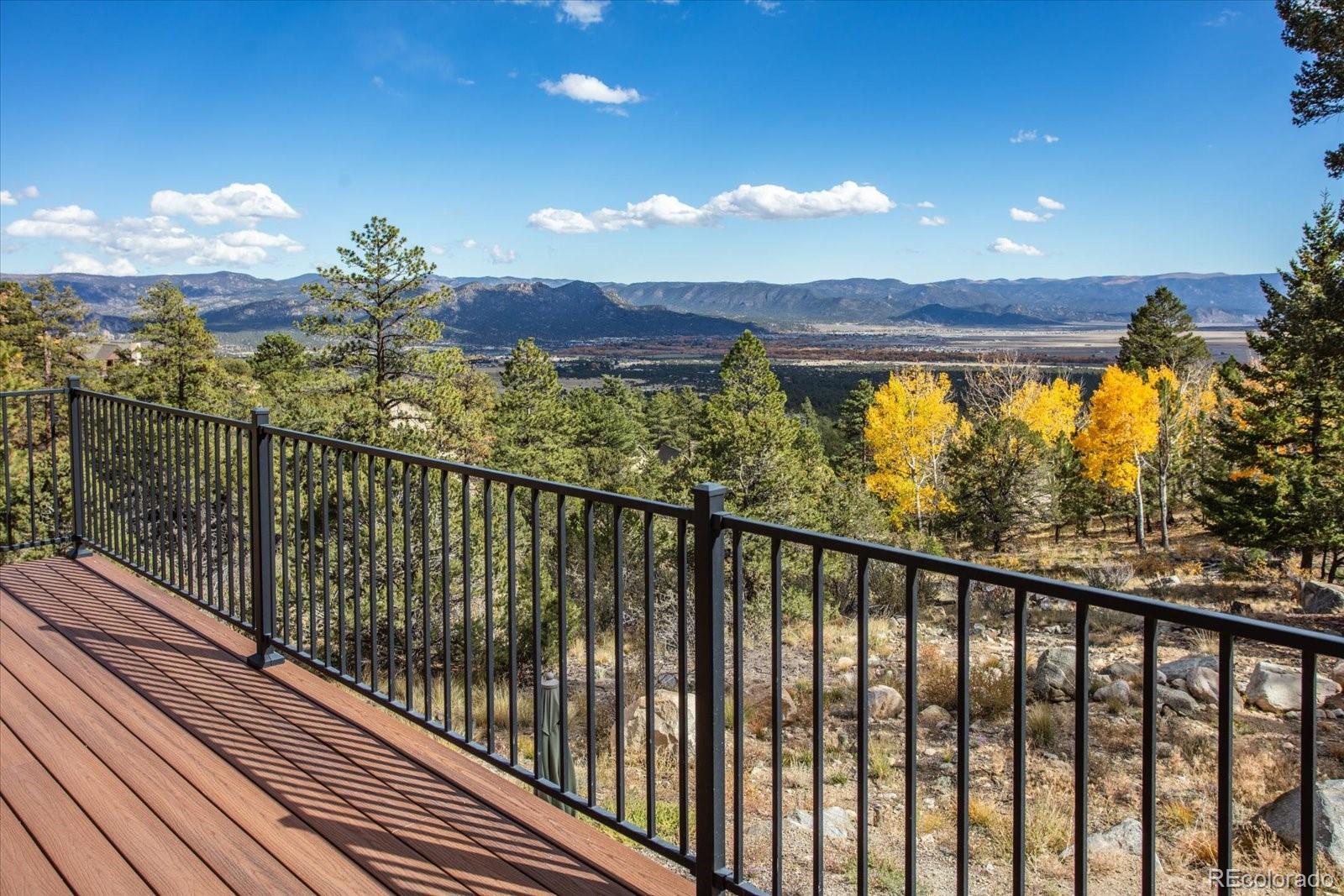 Nestled in the mountains just west of Buena Vista, this exquisite custom-built home, completed in 2021, offers timeless design, thoughtful craftsmanship, and panoramic views of the Collegiate Peaks and the Arkansas Valley. With 3,425 square feet spread across three levels, every detail has been designed to maximize light, flow, and comfort while capturing the unmatched beauty of its mountain setting. The main level is filled with natural light and features an open-concept living, dining, and kitchen area centered around a striking stone fireplace. Walls of windows frame dramatic mountain vistas, while the expansive wraparound deck invites you to step outside and soak in the fresh mountain air. The private primary suite, located on the east side of the home, includes a generous walk-in closet and spa-like bath. A welcoming foyer, powder room, laundry, and convenient garage access complete the main level. Upstairs, the bonus room is a versatile retreat with its own ¾ bath, making it ideal for a recreation room, exercise studio, hobby space, or extra guest quarters. On the walk-out lower level, a cozy family room features a gorgeous stone-surrounded gas fireplace and wet bar, creating the perfect gathering place. Two spacious bedrooms and a full bath provide comfortable accommodations for family or visitors. The lower patio extends the living space outdoors with stunning views of the Arkansas Valley. Additional highlights include an oversized two-car garage, a low-maintenance stucco and stone exterior, and a recently landscaped yard designed to complement the natural surroundings. Located in a well-organized subdivision with valuable amenities, this home offers both privacy and community. Outdoor enthusiasts will appreciate direct access to hiking, biking, and backcountry exploring just beyond the property. This rare offering combines modern comfort, custom detail, and the best of Colorado mountain living in an unforgettable setting.