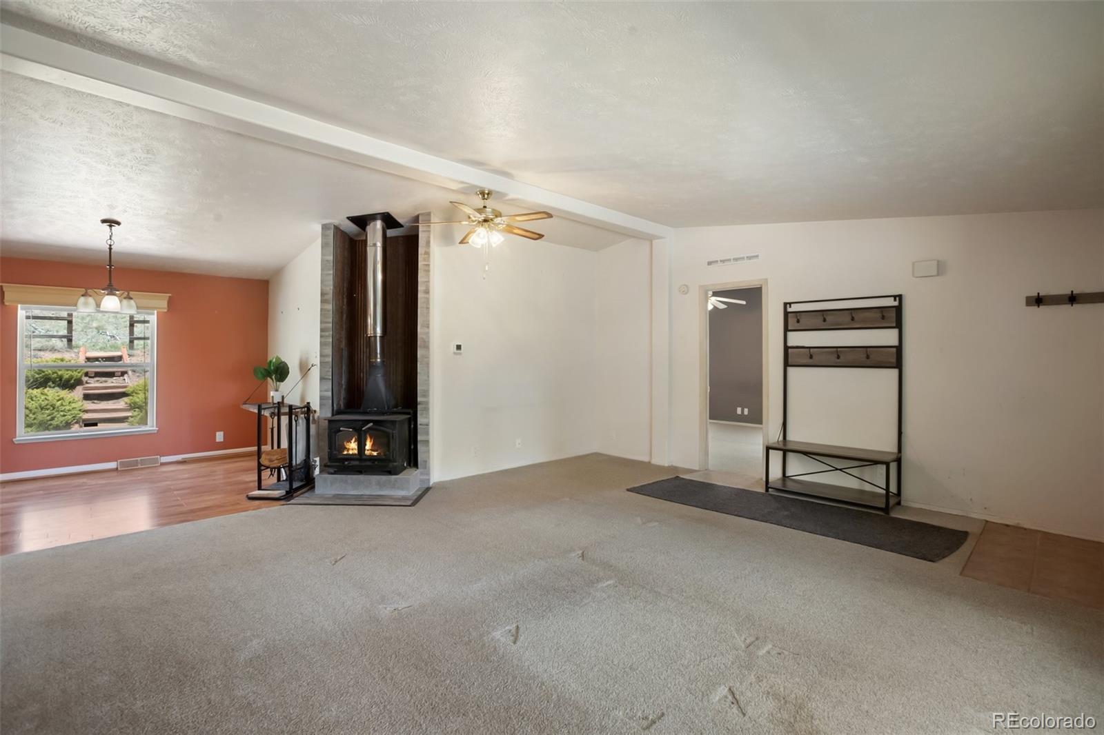 Spacious 4 bed, 3 bath home on 4 beautiful, wooded acres! With 2,090 sq ft of living space, this home offers both a cozy living room and a large family room—plenty of space to spread out. The spacious kitchen is perfect for gatherings, and the wood-burning stove helps keep those electric bills low. Outside, enjoy an oversized 2-car detached garage, RV parking, and a newer roof (2021). Peaceful, private, and ready for your Colorado lifestyle!