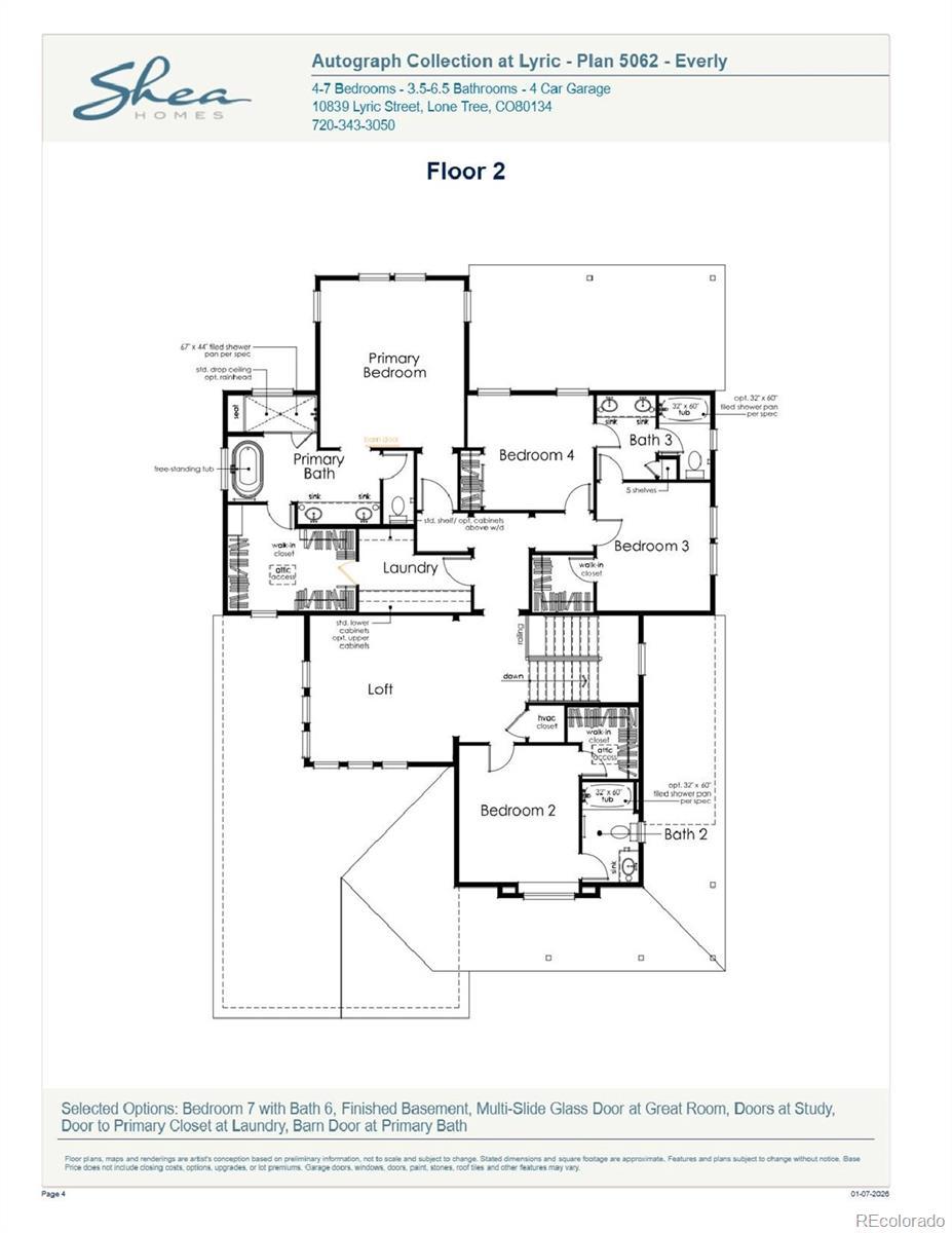 Gorgeous two story home with walk out basement in Lyric at Ridgegate . This home has 6 bedrooms 5.5 baths, loft, study, fireplace with full height tile surround, finished basement, covered deck, and 4 bay tandem garage. Design finishes include Tri West engineered wood flooring in California Classic/Bellumo, AZT/DT engineered stone counter tops in Citrine, and Yorktowne Blaine painted cabinets in Bay Leaf and Biscotti. Please contact a community representative for complete details.