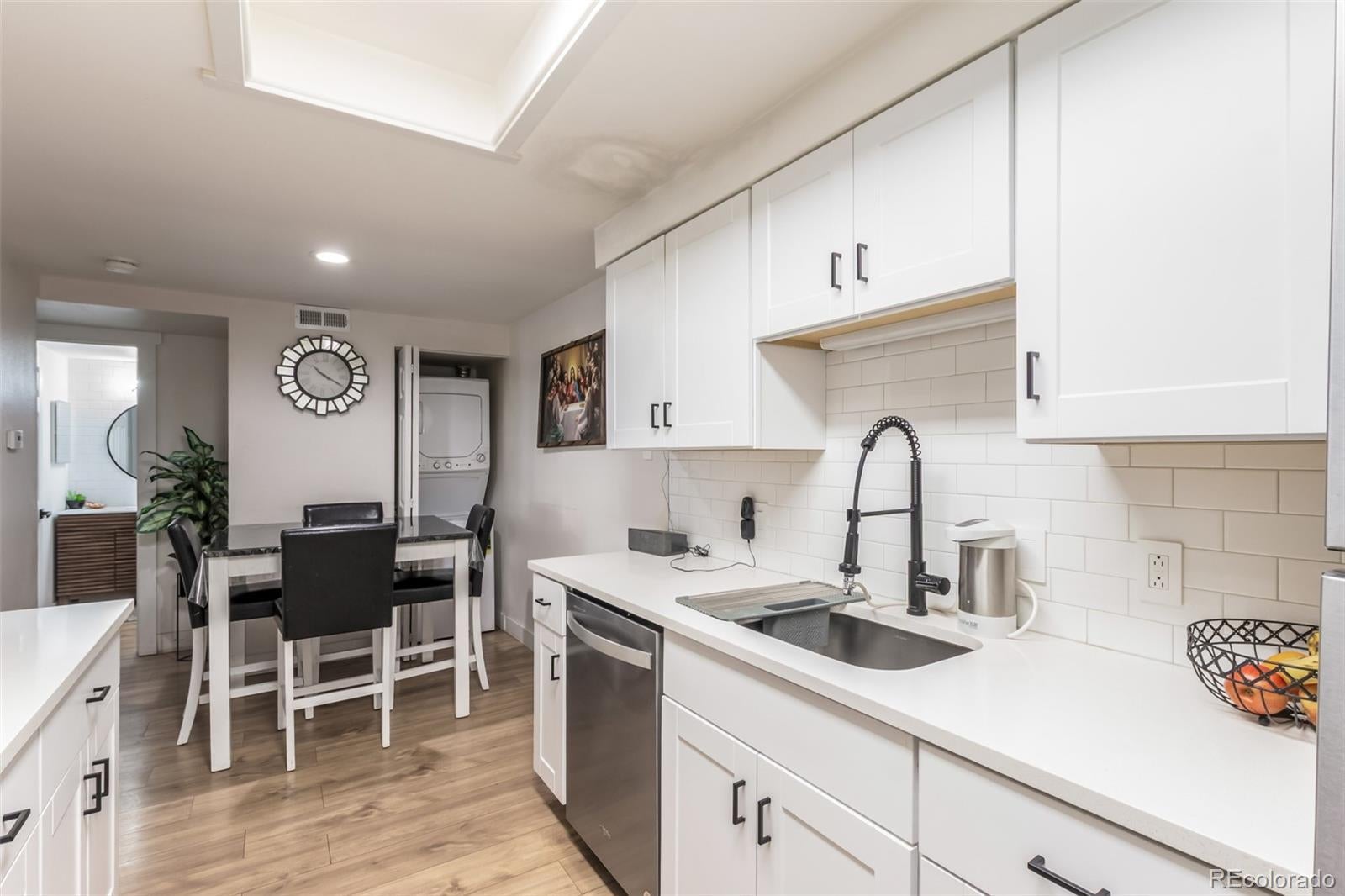 A sense of calm and modern simplicity defines this fully renovated condo from the moment the door opens. Warm modern plank flooring guides the eye toward the living area where a striking stone fireplace creates an unmistakable focal point. Glass doors to the private balcony draw natural light across the space, softening the lines of the room and adding a subtle indoor outdoor connection that encourages lingering. An inviting dining nook sits beneath its own window, creating a cheerful corner for morning coffee or relaxed meals with effortless ease. Just beyond, a thoughtfully designed laundry closet keeps daily routines simple and efficient while maintaining a clutter free environment. The kitchen reveals itself with a quiet confidence. Crisp white shaker cabinetry offers abundant storage and a timeless sense of order. Elegant white quartz counters add an elevated touch that feels both modern and refined, beautifully balanced by the depth of the dark hardware and fixtures. A deep undermount sink and stainless appliances create a highly functional workspace that inspires creativity and ease. The serene flow continues into the bedroom where generous dimensions and extensive closet space allow room for personalized retreat. The adjacent bath feels like a private spa, thoughtfully finished with modern materials and refined design choices that feel both elevated and grounded. Step onto the balcony and take in an outdoor view that overlooks the community courtyard and green space. It is a peaceful extension of the home and a welcome breath of fresh air. Completely renovated interiors, a stone fireplace that brings authentic character, a chic modern kitchen, and private outdoor space come together to create something quietly special. This is a home that embraces simplicity, beauty, and ease in equal measure.