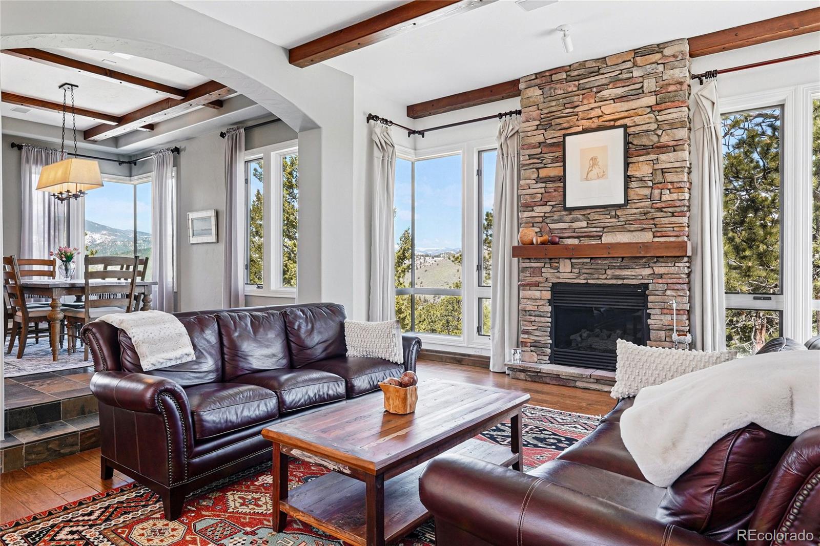 On Top of the World at 290 Skyhill – Where Luxury Meets Nature Perched at the summit of a private ridge in Evergreen’s prestigious gated Skyhill Estates, this extraordinary 10-acre estate delivers the kind of soul-stirring views that few ever get to call home. From sunrise over snow-dusted peaks to moonlight casting shadows through tall pines, 290 Skyhill is a front-row seat to Colorado’s most breathtaking moments. Set behind its own gate, this 5,155 sq ft retreat blends timeless design with modern sophistication. Inside, dramatic windows and soaring ceilings frame panoramic mountain vistas from nearly every room. Brazilian slate floors ground the main level, while new designer paint reflects the quality and care throughout. The kitchen is a host’s dream—enhanced with a brand-new Sub-Zero refrigerator, new wood detailing, and updated lighting—flowing into both formal and informal living spaces designed for connection. Two newly remodeled bathrooms sparkle with natural light and upscale finishes. The lower level offers a cozy media room/office, plus a bonus reading nook with custom cabinetry. Major upgrades include: new central vacuum, whole-house water filtration + reverse osmosis, generator, radiant in-floor heat (even in the garage), new garage door motor, all new window blinds, updated lighting including a new dining room chandelier, and all new toilets and sinks. Stay connected with high-speed fiber optic internet and Starlink—ideal for remote work, content creation, or digital detox retreats. Tucked among just six homes in a quiet, welcoming community with tennis and pickleball, this is where luxury and wilderness coexist. Deer, elk, and fox wander freely. And the world feels wonderfully far away—yet skiing, shopping, and Denver are all within easy reach. Whether you’re stargazing on the patio, curling up by the fire, or simply soaking in the silence, 290 Skyhill invites you to breathe deeper, live slower, and fall in love with every season.