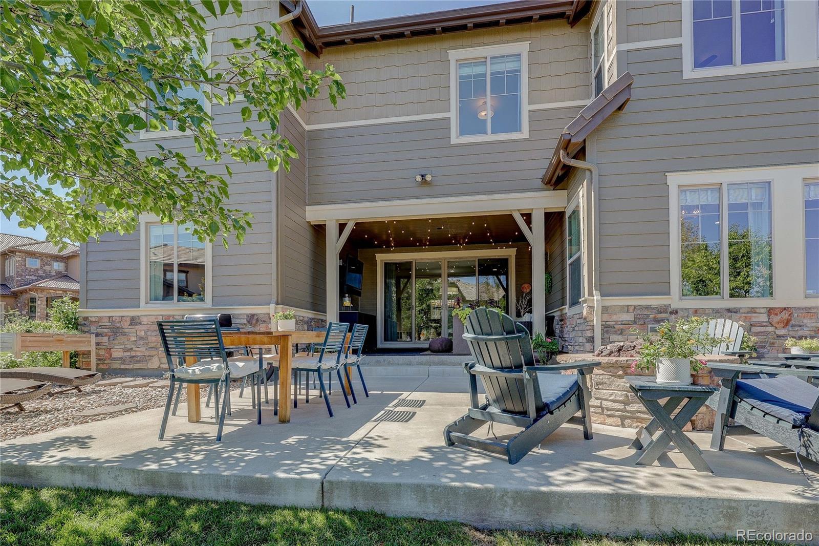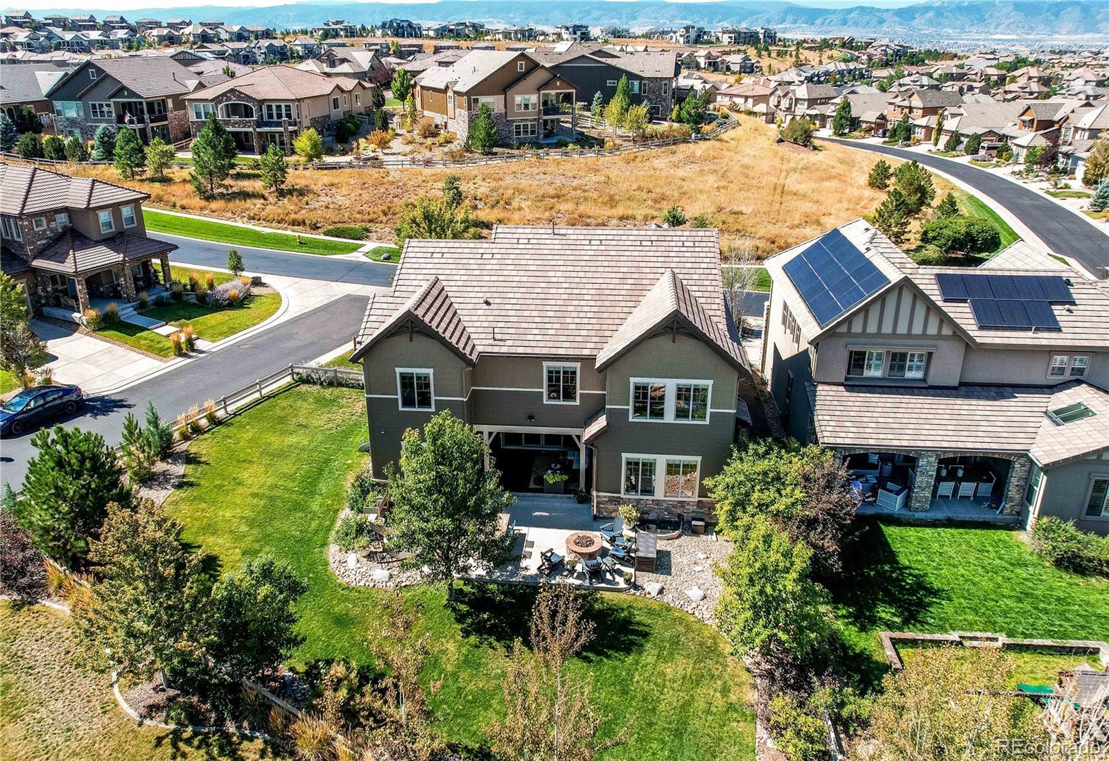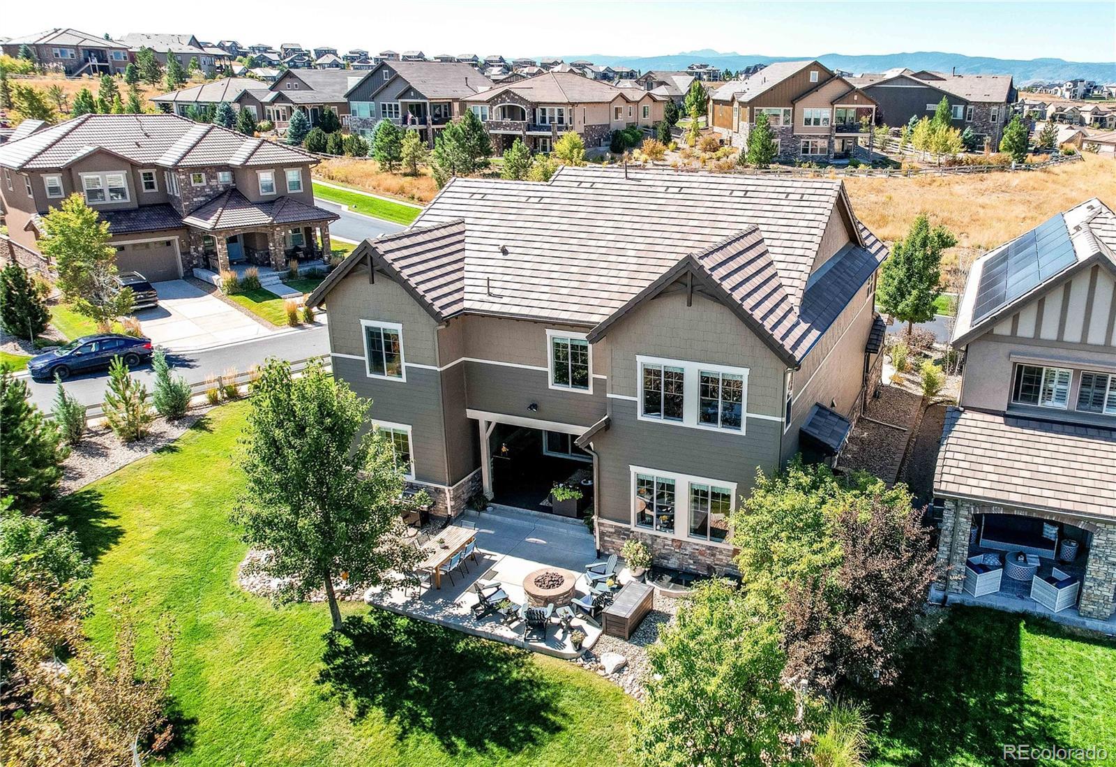 Stunning 6 bedroom, 6 bath home on a premium oversized lot in the exclusive gated community of Backcountry. Perfectly situated on the corner adjacent to a quiet cul-de-sac, this residence boasts an expansive wrap-around yard - ideal for entertaining, outdoor games, or kids’ sports—while being just a short walk to the neighborhood park. Step inside to soaring ceilings, abundant natural light, and a flowing open layout that blends elegance with comfort. The gourmet kitchen is truly the heart of the home, showcasing top-of-the-line appliances, gas cooktop, double ovens, and a generous island that connects seamlessly to the dining and living areas—perfect for hosting family and friends. A main-level guest suite with private en suite bath provides flexibility as a welcoming retreat or a quiet home office. Designed to embrace Colorado’s coveted indoor-outdoor lifestyle, sliding glass doors open to a year-round covered patio, extended entertaining area with built-in fire pit, and a beautifully landscaped fenced yard designed for gatherings and sunset views. The finished basement is a true showpiece, highlighted by a spacious great room, wet bar, wine room, dedicated tasting/game area, and a mirrored exercise room. Upstairs, a versatile loft offers the perfect retreat, while the luxurious primary suite provides a spa-like escape. Three additional bedrooms complete the upper level, ensuring comfort and space for all. Life in Backcountry is unmatched, with resort-style amenities including the Sundial House with its Campus Lounge restaurant/bar, coffee shop by Lost Coffee, multiple pools and hot tub, a state-of-the-art fitness center, playgrounds, amphitheater, and access to over 8,000 acres of open space and scenic trails. This home offers not just a residence, but an elevated lifestyle of community, recreation, and Colorado beauty.