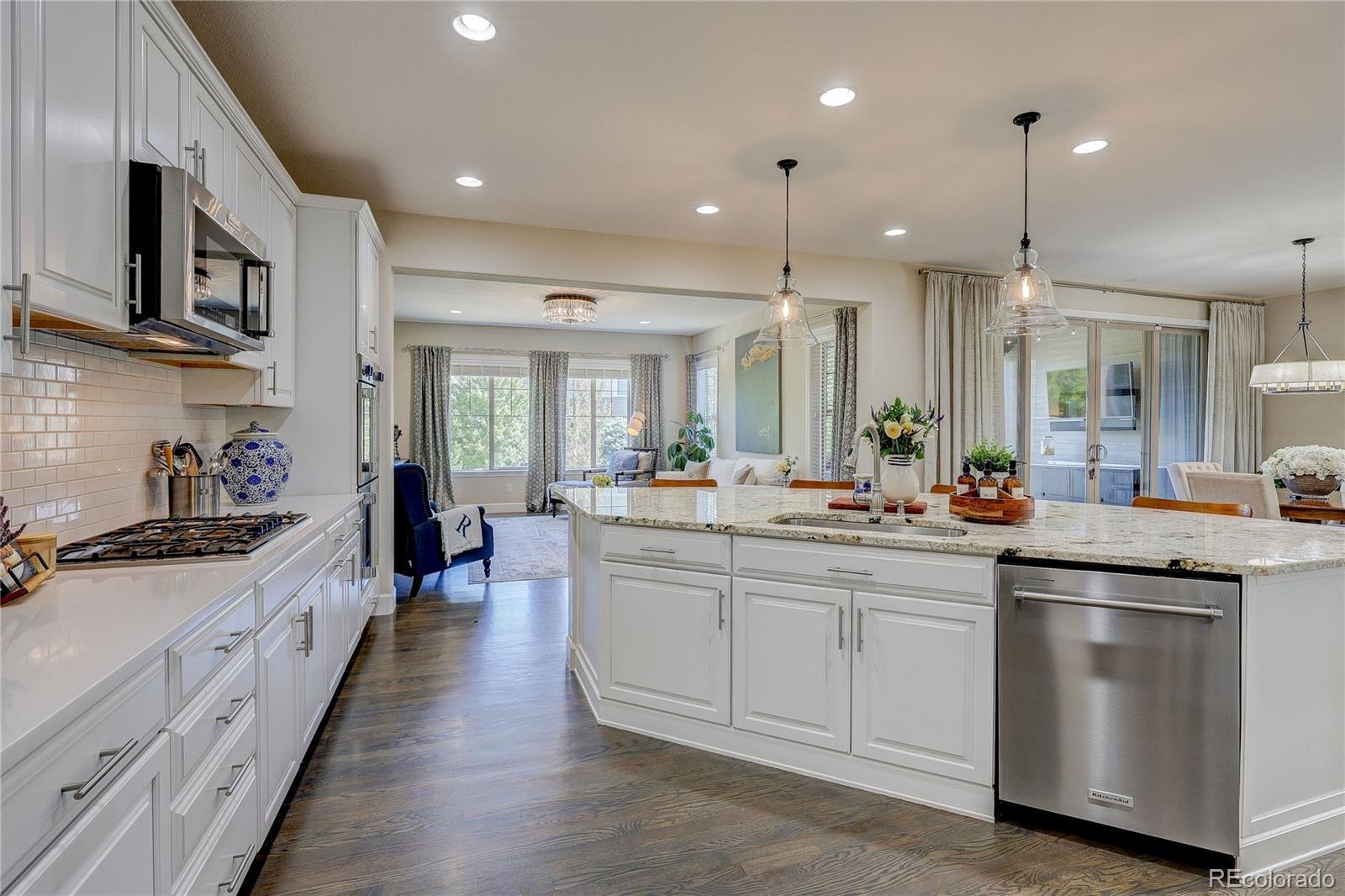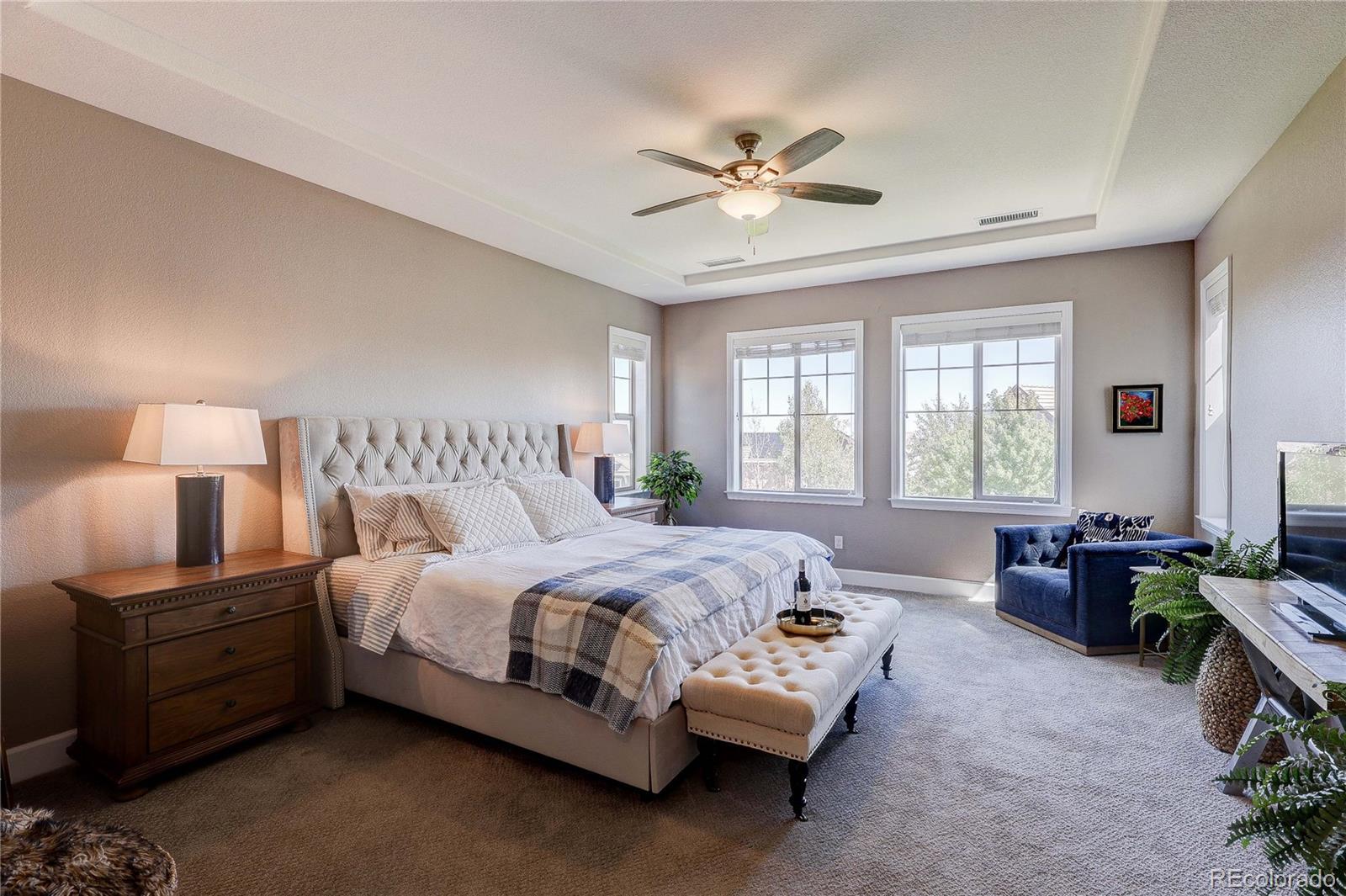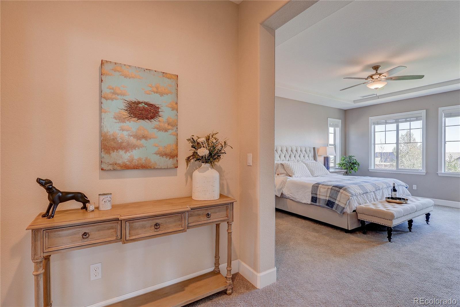 Stunning 6 bedroom, 6 bath home on a premium oversized lot in the exclusive gated community of Backcountry. Perfectly situated on the corner adjacent to a quiet cul-de-sac, this residence boasts an expansive wrap-around yard - ideal for entertaining, outdoor games, or kids’ sports—while being just a short walk to the neighborhood park. Step inside to soaring ceilings, abundant natural light, and a flowing open layout that blends elegance with comfort. The gourmet kitchen is truly the heart of the home, showcasing top-of-the-line appliances, gas cooktop, double ovens, and a generous island that connects seamlessly to the dining and living areas—perfect for hosting family and friends. A main-level guest suite with private en suite bath provides flexibility as a welcoming retreat or a quiet home office. Designed to embrace Colorado’s coveted indoor-outdoor lifestyle, sliding glass doors open to a year-round covered patio, extended entertaining area with built-in fire pit, and a beautifully landscaped fenced yard designed for gatherings and sunset views. The finished basement is a true showpiece, highlighted by a spacious great room, wet bar, wine room, dedicated tasting/game area, and a mirrored exercise room. Upstairs, a versatile loft offers the perfect retreat, while the luxurious primary suite provides a spa-like escape. Three additional bedrooms complete the upper level, ensuring comfort and space for all. Life in Backcountry is unmatched, with resort-style amenities including the Sundial House with its Campus Lounge restaurant/bar, coffee shop by Lost Coffee, multiple pools and hot tub, a state-of-the-art fitness center, playgrounds, amphitheater, and access to over 8,000 acres of open space and scenic trails. This home offers not just a residence, but an elevated lifestyle of community, recreation, and Colorado beauty.