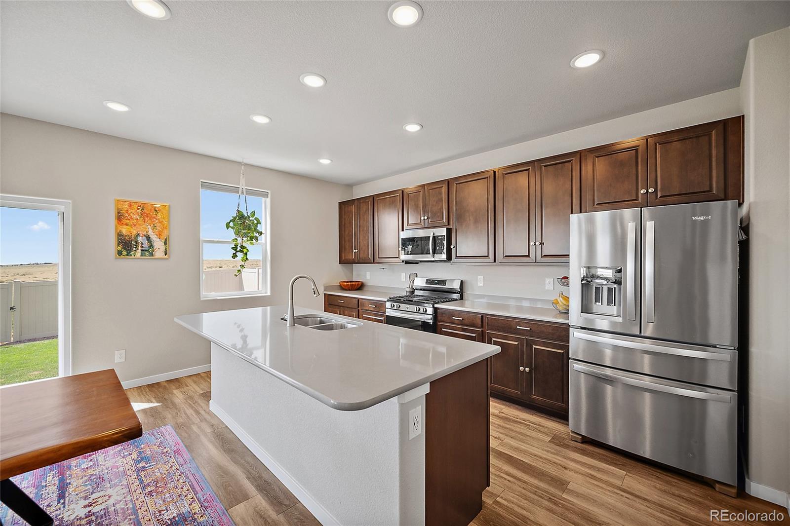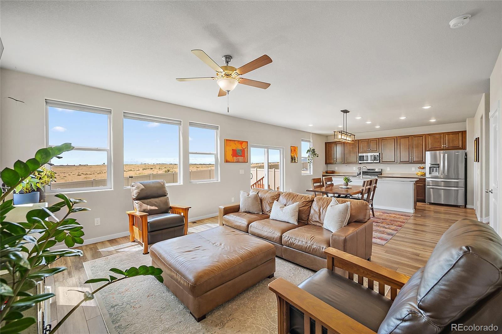 Step inside and discover the kind of home buyers wait for. Beyond the open-concept layout, thoughtful upgrades appear at every turn. The gourmet kitchen is anchored by stainless steel appliances and a butler’s pantry that feels more like a designer feature than simple storage. Sunlight pours through oversized windows and a sliding glass door, framing uninterrupted views of open space instead of a neighbor’s fence. One of the home’s best surprises waits downstairs-a finished basement with oversized window wells that fill the space with natural light, plus a ready-made theater with a mounted 72-inch TV and concealed wiring. Movie nights, game days, or entertaining friends are effortless from day one. Step outside and the extras are already done for you: sod, sprinklers, landscaping, and a fence with a gate leading directly to the open space. Life in Trails at Aspen Ridge comes with details that make a difference. The neighborhood park offers new play equipment, a bike path, and a wide field where neighbors gather for soccer, frisbee, or to watch the mountains glow at sunset. And when convenience calls, you’re just 15 minutes from Peterson Space Force Base and 20 minutes from Fort Carson-close enough for easy commutes, far enough to feel tucked away. Here’s where this home truly stands apart. While nearby properties are still waiting on landscaping, fencing, or expensive upgrades, this one already has it all-and it’s listed well below what others are selling for in the neighborhood. A rare find that combines location, upgrades, and value-homes like this don’t come along often. We expect strong interest, so schedule your showing soon.