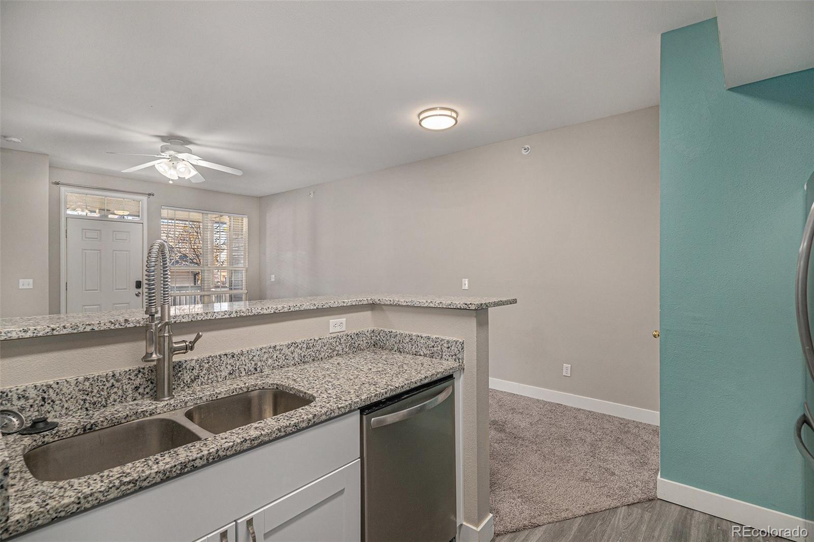 Comfort, Style, and Convenience Come Together in This Move-In-Ready Condo. Step into a home that instantly feels welcoming. This beautifully updated 2-bedroom, 2-bath condo offers an open floor plan filled with natural light, modern finishes, and a calm, neutral palette that makes it easy to settle in and feel at home from day one. The modern kitchen is both stylish and functional, featuring granite countertops, stainless steel appliances, and a layout that flows seamlessly into the main living area—perfect for quiet nights in or entertaining friends. Upgraded flooring throughout adds a polished, cohesive look while enhancing the home’s clean, contemporary feel. The primary suite is a true retreat, complete with a private en-suite bath and a generous walk-in closet. A second bedroom and nearby full bath provide flexible space for guests, a home office, or comfortable shared living. Enjoy everyday conveniences like a full-size washer and dryer, extra storage, and a covered patio—ideal for morning coffee or unwinding at the end of the day. Set within a well-maintained, quiet community with easy access to DTC, I-225, light rail, and Cherry Creek State Park, this home blends low-maintenance living with an unbeatable location. Seller will pay your first 6 months of HOA with acceptable offer!