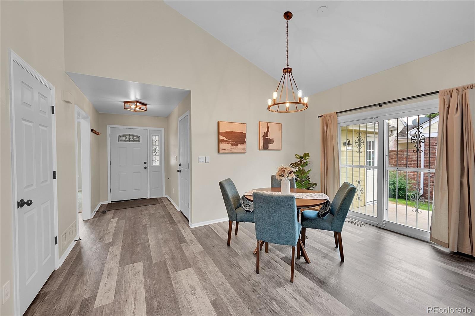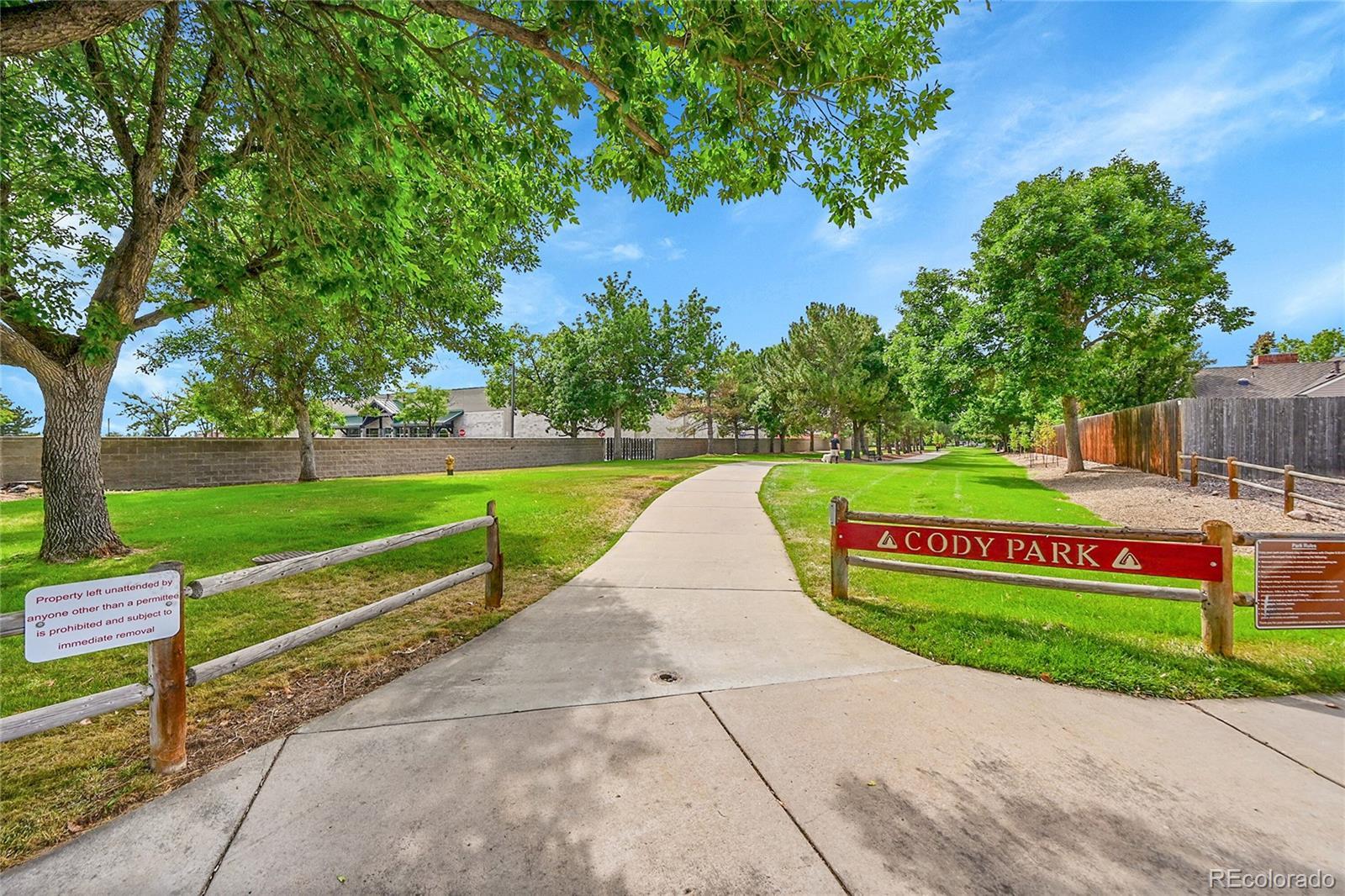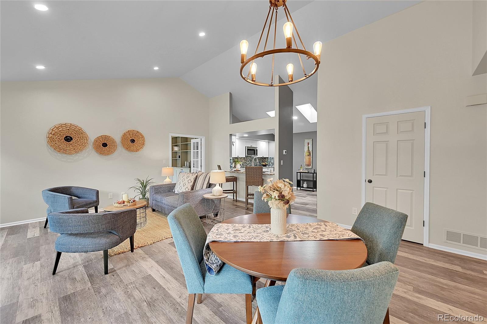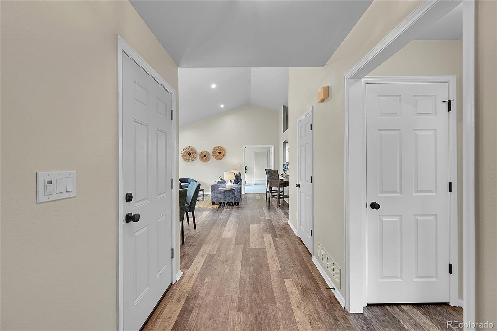 Welcome Home! Buyers are going to LOVE this updated ranch style home nestled in a quiet community called Parkside in Governor's Ranch. Check out the soaring vaulted ceilings & stylish upgrades throughout. The front bedroom is filled with natural light, with brand new carpet & paint. There's a full size bathroom right off this bedroom, perfect for guests or family members. At the heart of the home is an expansive great room that seamlessly connects the living, dining, & kitchen areas, making it the perfect entertaining space. Get ready for cooler nights & enjoy the new Jotul fireplace insert. Many updates since 2023 include newer roof, newer plank flooring, paint, window coverings, furnace and AC systems, tankless NG water heater, NUVO H2O system, basement floor & wall paint, brand new Wolf induction range, kitchen sink & garbage disposal, garage heaters & insulation. The kitchen is nicely updated with newer shaker style cabinets, high end granite, stainless steel appliances, & paint. Two skylights just flood this kitchen with natural light. Just off the great room is a cozy den with NEW custom built-in book cases, tile floor, door, base and casing, and paint. The recent updated vaulted primary site offers a luxurious retreat with dual sinks, a spacious walk-in shower, a new tub, new plumbing fixtures, & tile flooring. These owners had exquisite taste and it shows throughout the updates. The unfinished basement is waiting for your designer touches. There are 2 covered patios to enjoy in all 4 seasons. Step outside & enjoy a private yard, a garden area for flowers/vegetables. The two car insulated garage is roomy & heated. Home is near Belleview Shores shopping center, Southwest Plaza Mall, Racoon Creek Golf Course, & Clement Park. Ideally located near Cody Park & Governor's Ranch Park, a short drive to downtown Denver, Chatfield State Park, & Red Rocks Amphitheatre. The HOA offers a pool, tennis and pickle ball courts, a clubhouse, parks & trails.