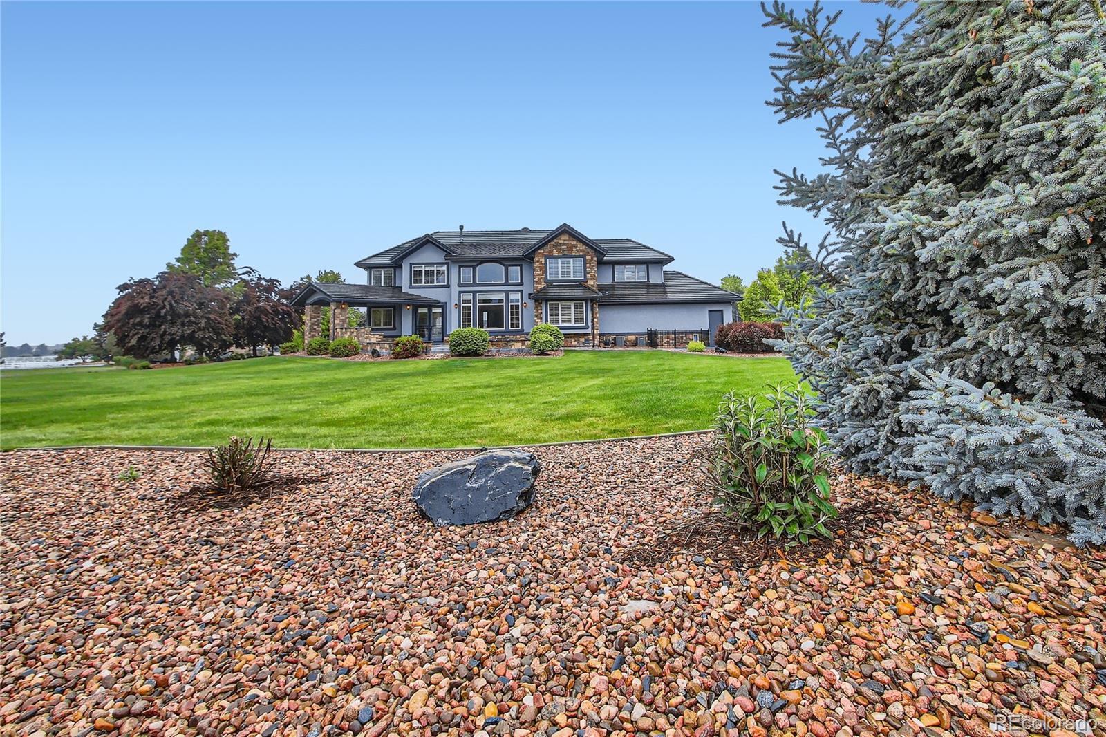 Unrivaled space and natural beauty define this 1.39-acre luxury estate. Surrounded by vibrant, mature landscaping, the extensive yard provides a picturesque setting for sports, recreation, and relaxation. Imagine hosting summer barbecues on the expansive patio complete with firepit. Ample space for the addition of future pool and sports court, further enhancing the outdoor living experience. Welcoming front courtyard with linear firepit invites relaxation while enjoying panoramic mountain and city vistas. Step inside to discover an interior that seamlessly blends elegance and functionality. Thoughtfully designed floor plan crafted with everyday living in mind. Chef’s dream kitchen features stylish quartz island, and Thermador appliances. Cozy breakfast nook has glass doors to the backyard patio creating a seamless indoor-outdoor living experience. Expansive great room is graced with a wall of windows, two-story coffered ceilings and fireplace. Secluded study offers backyard views and tranquil ambiance. Ascend to the upper level to discover a primary sanctuary featuring cozy sitting nook, and spa-inspired bath. Three additional en-suite bedrooms offer comfort and privacy, while a second laundry room adds convenience. Lower-level features spacious rec room with wet bar and climate-controlled wine cellar designed to showcase any discerning wine connoisseur's collection. Exercise room provides dedicated space for fitness enthusiasts, while an additional guest bedroom offers flexibility. Enjoy the tranquility of spacious living with convenient proximity to shopping, dining, entertainment, public, private schools and effortless access to Denver, Boulder, DIA, and Northern Colorado. This is more than just a home, it's a lifestyle.