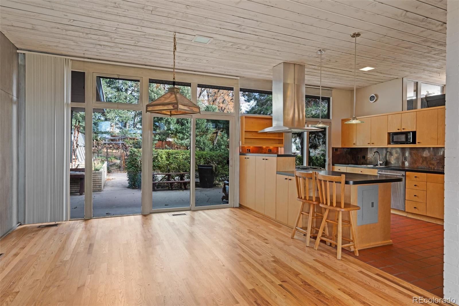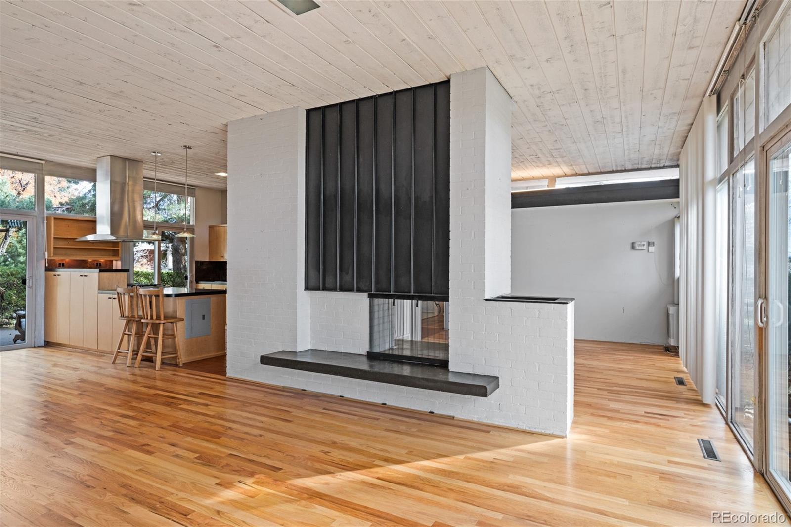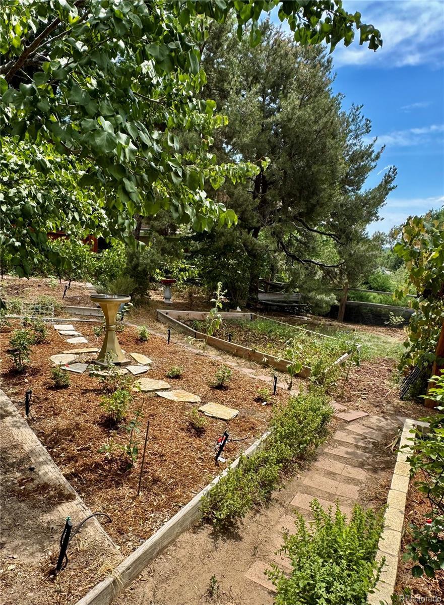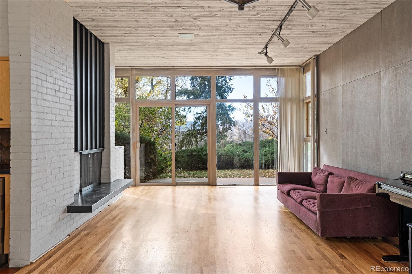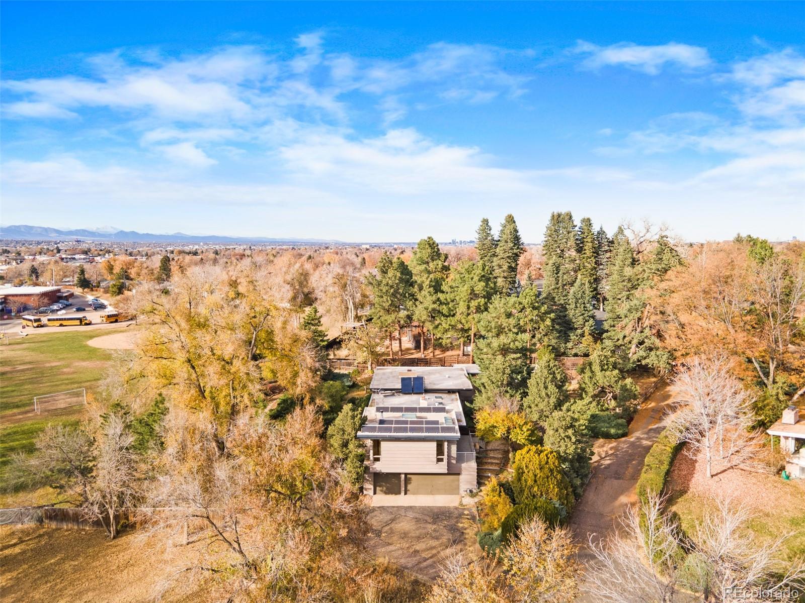 Tucked into one of Greenwood Village’s most charming and established neighborhoods, 11 Sunset Lane offers a rare blend of privacy, nature, and Mid-Century Modern design. At the end of a cul-de-sac, set on nearly 20,000 square feet of lush, secluded grounds with expansive mountain views, this home feels like a private retreat while still being minutes from city conveniences. Inside, the home’s true Mid-Century character shines through, from its clean architectural lines to the ease of flow between one sun-drenched room and the next. The kitchen is well designed with abundant cabinetry, generous counter space, and direct access to the front patio. Appliances, including a Thermador gas range, hood, and dishwasher, as well as a Fisher & Paykel refrigerator, offer quality and timeless appeal. The spacious dining room seamlessly connects to the family room, where floor-to-ceiling windows capture expansive mountain views and offer access to an additional outdoor patio. With 4 bedrooms, 3 baths, a considerable secondary living room previously used as an artist’s studio, and 4 fireplaces, the layout offers warmth and functionality, transitioning smoothly from the open living areas to the private bedrooms down the hall. The lower level has walk-out sliding doors from each room, a full bath, and a utility room leading to the attached 3-car garage. Step outside and discover a garden lover’s paradise: a koi pond and water feature, a whimsical “fairy house,” a greenhouse, and a bounty of fruit trees, including peach, pear, apple, and apricot. Vibrant rose bushes, grapevines, vegetable and flower gardens complete the multi-level grounds. Lovingly cared for by the same family for nearly 50 years, this is a rare Greenwood Village treasure—a home that instantly makes you want to stay and a true testament to the enduring appeal of Mid-Century Modern design. Just a 5 minute walk to the High Line Canal trail, 11 Sunset Lane is a home rooted in history, heart, and harmony with the land.