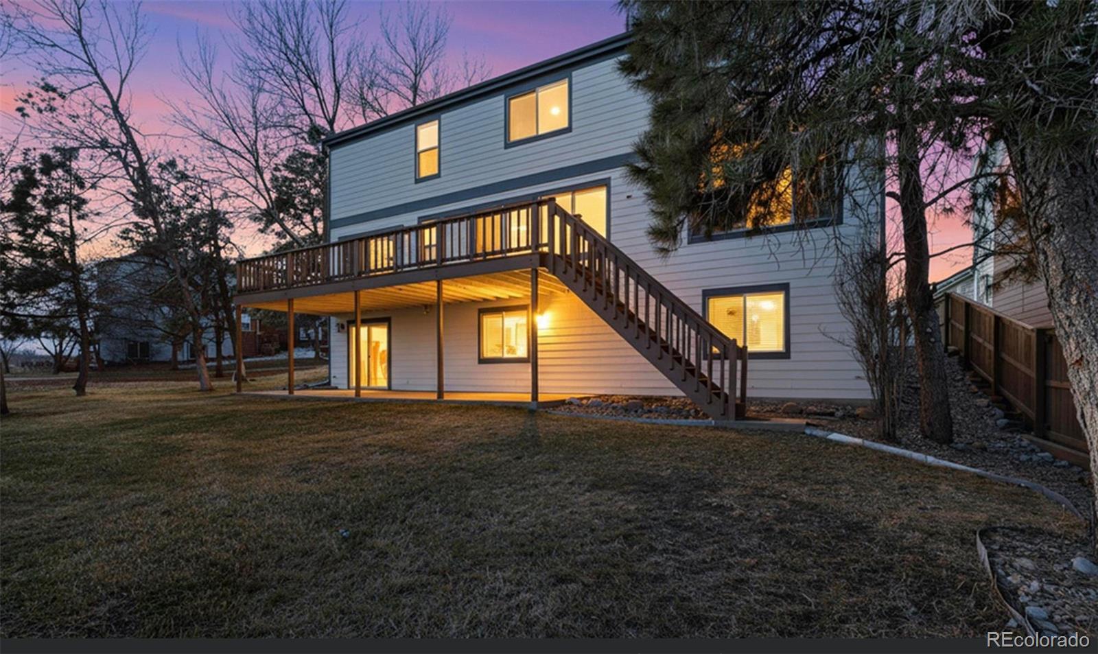 One of the nicest locations in Eastridge. Backing to Cheese Ranch Historic Park with Dry Creek stream running through natural open space. There’s also a community garden with a duck pond. Lots of new inside and out! Interior decorator designed.! A dramatic floorplan, every detail is completed with quality craftsmanship! Freshly painted interior and newly painted exterior. Replaced lighting and plumbing fixtures and all 4 baths remodeled. Newer furnace and ac. The entry has a grand 2 story foyer. New designer luxury carpet. The generous sized kitchen has been updated with exotic granite countertops and has an island, stainless steel appliances, and walk in pantry! Located off the eating area are patio doors leading to the new oversized deck! The hardwood floors are newly refinished! The formal dining room sparkles with new lighting and hardwood flooring. The family room is conveniently next to the kitchen with a cozy gas fireplace. Tucked next to the family room is the 5th bedroom which can be utilized as a private study. Also on this level is a formal living room for entertaining. On the main floor is a laundry room with cabinetry can easily hold a full-size washer and dryer. Upstairs you’ll enter the private primary suite with a large walk in closet and a 5 piece bathroom! 3 additional bedrooms and 2 full bathroom with two sinks complete the upstairs. One of the secondary bedrooms has an en-suite. Completing the upstairs in an oversized loft . The full size walkout basement is great for storage. Many windows throughout the home add natural sunlight. It’s a short walk to all schools all highly ranked in CO. Located in Eastridge with access to all of Highlands Ranch amenities. Backcountry access is nearby, open space/hiking trails. Warm and friendly neighborhood. Impressive home has all the bells and whistles! True dream home! Thank you for viewing!