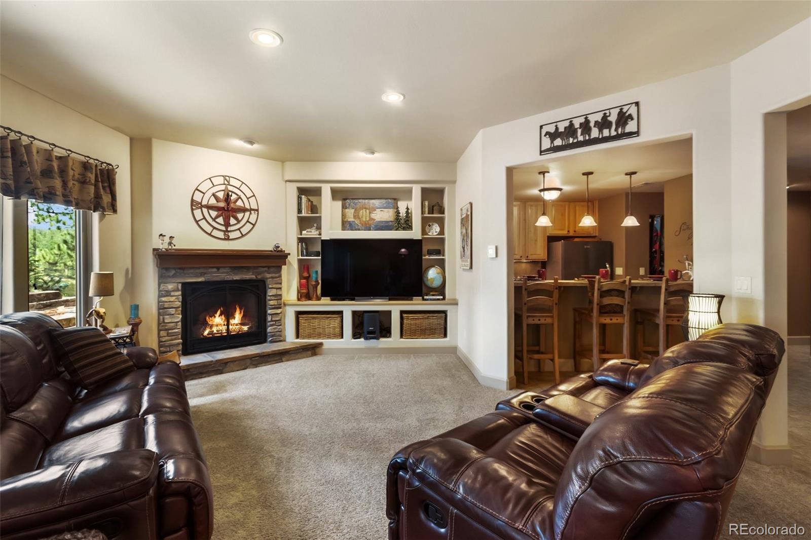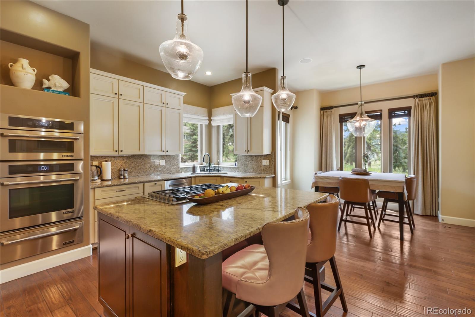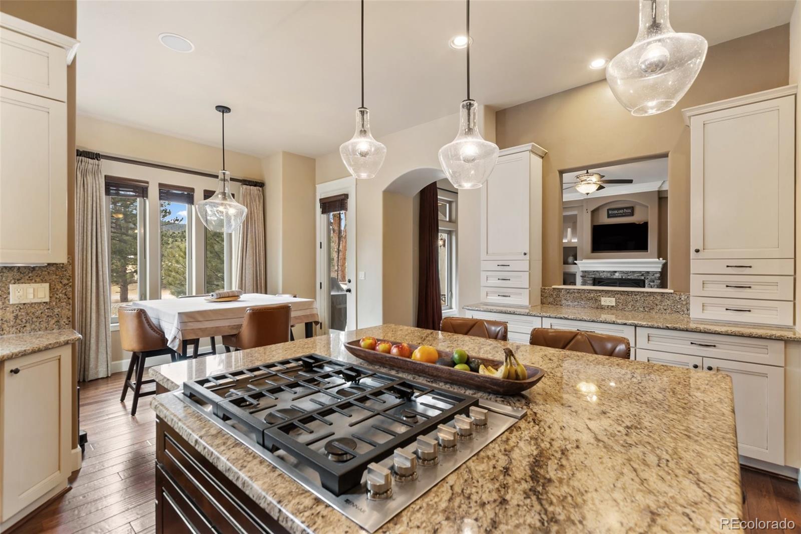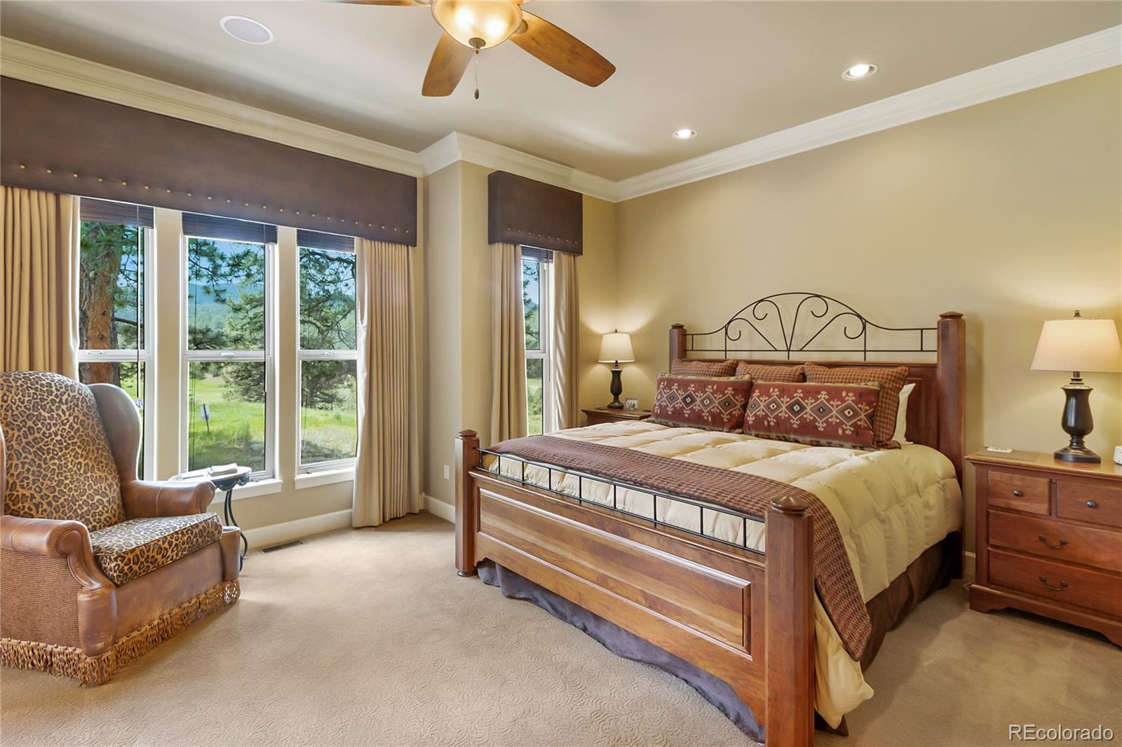 The best of Colorado living with exceptional access to adventure, comfort, and style. This stunning custom foothills home is just 30 minutes from Colorado Springs and 45 minutes from the COS airport. Nearby outdoor recreation includes hiking trails, Manitou Lake, skiing in Breckenridge, fishing gold medal waters, or golfing at Shining Mountain just steps away. Enjoy true main-level living with the primary suite, guest suite, living room, dining room, kitchen, breakfast nook, laundry, and 3-car garage all on one level. The main living area feels warm and inviting with a cozy gas fireplace and picture windows framing the natural surroundings. The gourmet kitchen is a centerpiece, showcasing a generous island with seating, large pantry, under-cabinet lighting, gas cooktop and new (2025) double oven and warming drawer. The luxurious primary suite offers a fully remodeled (2025), spa-inspired bath with a large double shower and oversized soaking tub. A second main-level suite provides flexibility for guests or multigenerational living. The walk-out lower level is designed for leisure and entertaining, featuring two additional bedrooms and a bathroom, a large family room with gas fireplace, custom wet bar and café area, theater room with components, pool table, and an oversized hot tub. Additional upgrades include elegant architectural arches and art coves, 10-foot ceilings, dual furnaces and water heaters, main-level air conditioning, and abundant storage. The wide, 1/3 acre lot is fence-able (no covenants), offering ample room for pets, play, and future customization. A new composite deck (2025), accessible from both the primary bedroom and breakfast nook, is perfect for morning coffee or sunset views overlooking open space with no neighbors to the west. This former Parade of Homes luxury residence is a meticulously crafted opportunity that truly has it all.