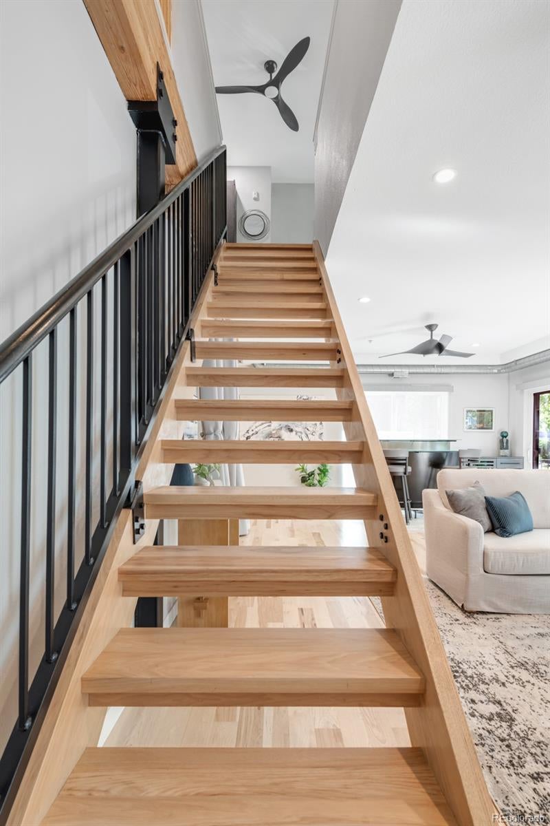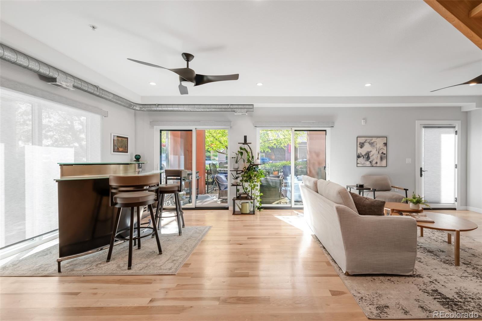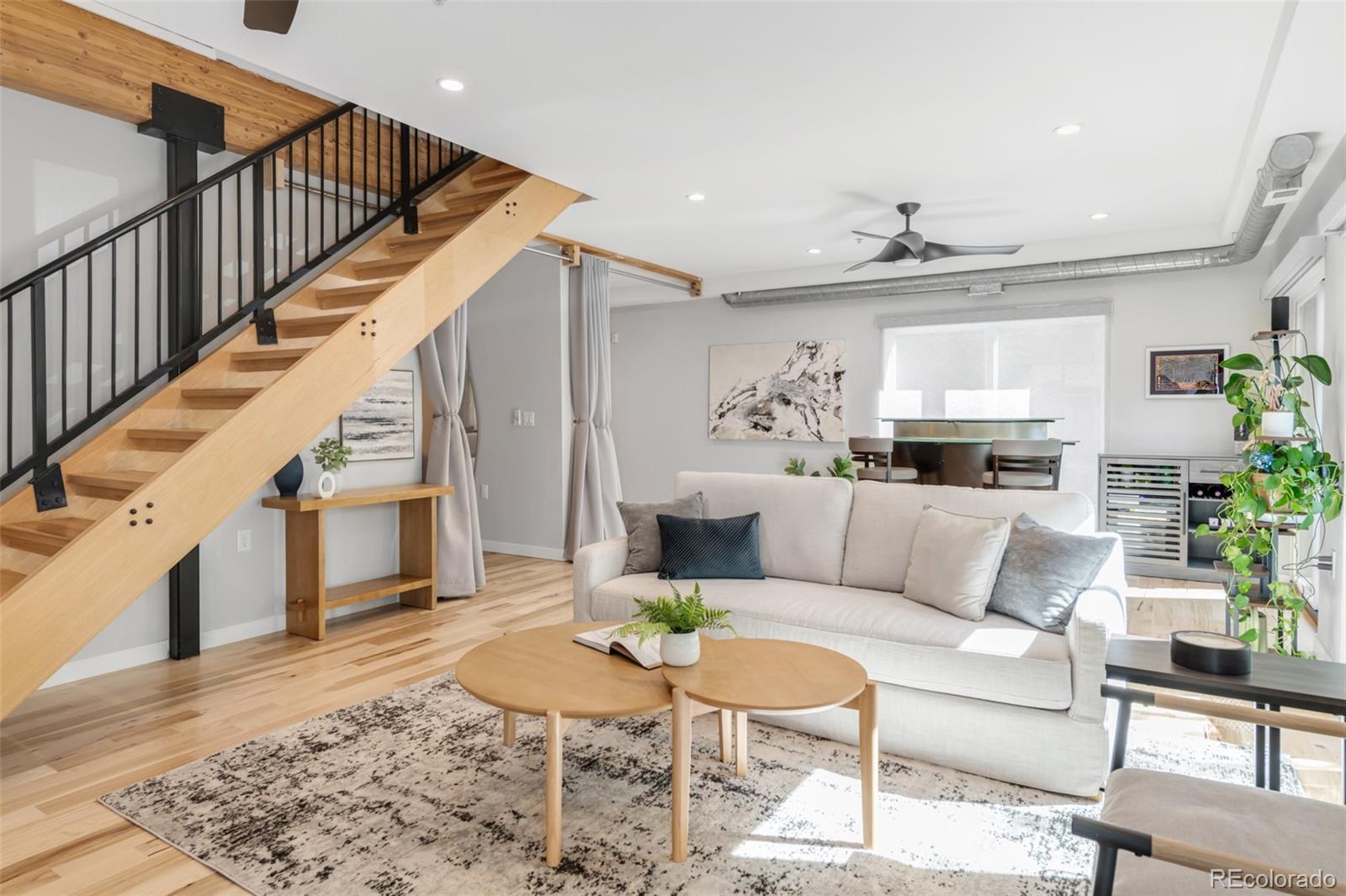 Positioned in the heart of RiNo, this meticulously updated live/work residence presents a rare opportunity within Denver’s most vibrant arts district. Mixed-use zoning meets elevated design, creating a space that balances creative flexibility with refined living. Rich hardwood floors ground the interiors, while custom concrete countertops and a glass-topped kitchen island anchor the culinary space with sculptural presence. Designer Samsung appliances, a wine fridge, and a plumbed coffee station elevate daily rituals, while an instant hot water line adds quiet convenience. Walls and ceilings have been refreshed with recessed, dimmable lighting and smart switches that allow ambiance to shift effortlessly. The lower level is wired for sound, and integrated Wi-Fi and networking ensure reliable connectivity throughout. Updated systems include air conditioning, heating, a new water heater, and upgraded electrical. Motorized shades, new windows, sliding glass doors, and symmetrically placed ceiling fans complete the transformation. This is a residence reimagined with intention, where live/work versatility and modern comfort converge.
