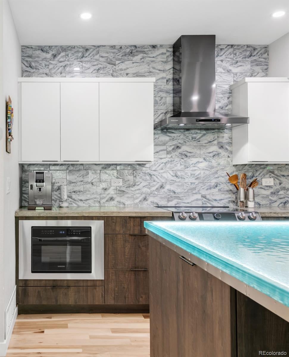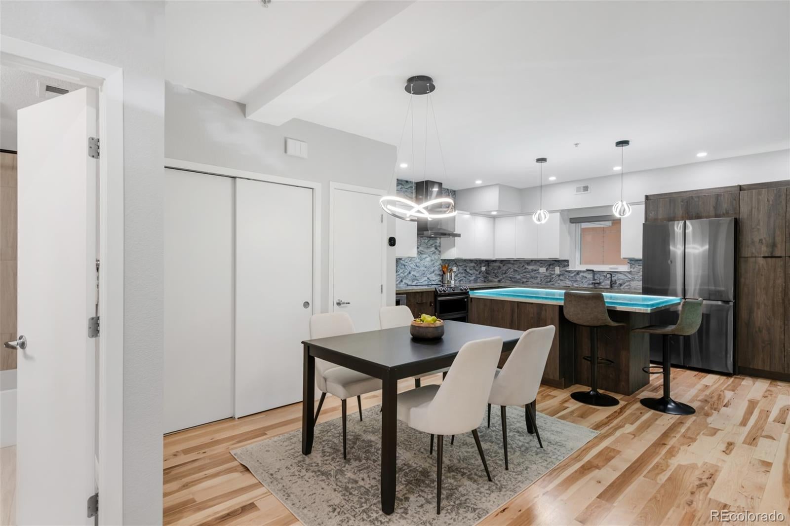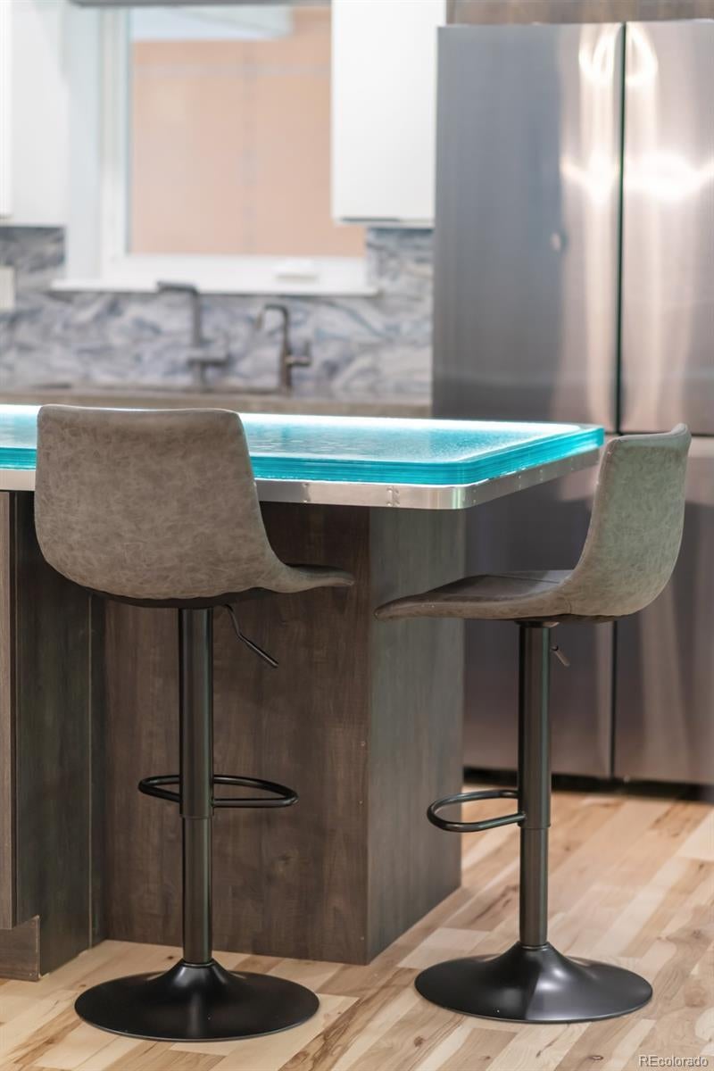 Positioned in the heart of RiNo, this meticulously updated live/work residence presents a rare opportunity within Denver’s most vibrant arts district. Mixed-use zoning meets elevated design, creating a space that balances creative flexibility with refined living. Rich hardwood floors ground the interiors, while custom concrete countertops and a glass-topped kitchen island anchor the culinary space with sculptural presence. Designer Samsung appliances, a wine fridge, and a plumbed coffee station elevate daily rituals, while an instant hot water line adds quiet convenience. Walls and ceilings have been refreshed with recessed, dimmable lighting and smart switches that allow ambiance to shift effortlessly. The lower level is wired for sound, and integrated Wi-Fi and networking ensure reliable connectivity throughout. Updated systems include air conditioning, heating, a new water heater, and upgraded electrical. Motorized shades, new windows, sliding glass doors, and symmetrically placed ceiling fans complete the transformation. This is a residence reimagined with intention, where live/work versatility and modern comfort converge.