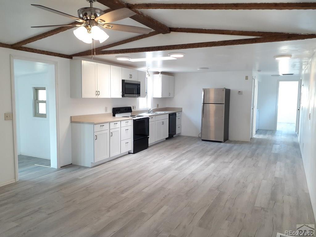 Warm, bright 2 bed/2 bath Colorado City home with brilliant mountain views! This recently renovated home has newer flooring, paint, appliances, kitchen cabinets and plumbing. Open the front door and you will be greeted with an expansive sun room with inner window opening into the living room. Living room and guest bathroom feature fun skylights that illuminate each room without using electricity. Large, sunny windows in both bedrooms are perfect for houseplant enthusiasts. Located at the end of a quiet cul-de-sac in a family-friendly neighborhood, this charming green home with red accents features hollyhocks in the fully fenced backyard with newly painted shed. Plenty of off-street parking and room for a future carport. This home has been a lucrative rental for over 10 years. Check out this great Colorado City home today!