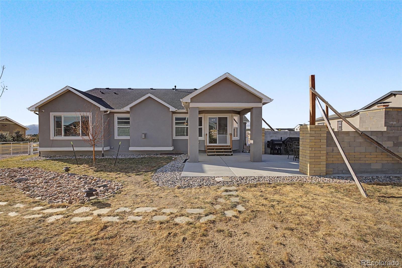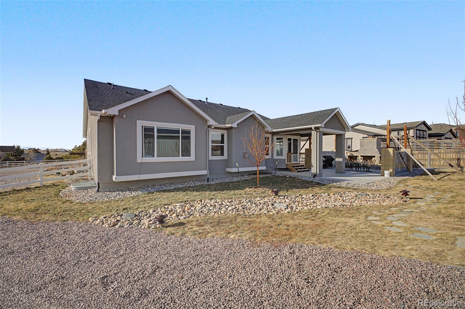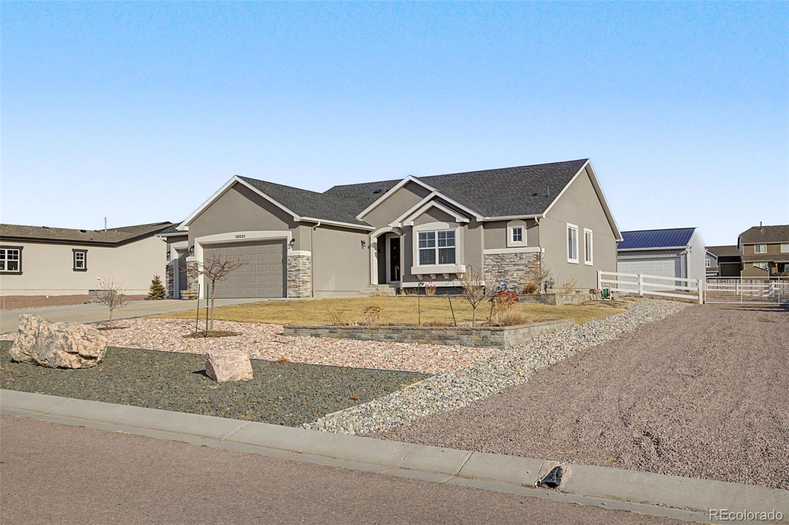 Built in 2020 by Campbell Homes with extensive upgrades and no HOA, this exceptional ranch-style home in Paint Brush Hills blends thoughtful design, modern technology, and everyday comfort on a spacious half-acre lot. Vaulted ceilings and an open-concept layout create an inviting atmosphere, anchored by a stunning flagstone fireplace in the great room, creating a warm focal point that instantly feels like home. The kitchen is both functional and elegant, featuring granite countertops, a large island, Blanco Diamond double sink, Aristokraft Sinclair birch cabinetry, and a walk-in pantry with barn doors. A kitchen nook and separate formal dining space offer flexibility for both casual and formal gatherings. The private office includes built-in bookshelves and dimmable lighting. The primary suite offers a spacious walk-in closet and a barn door entry into the spa-style bath with double vanities. The fully finished basement expands your living space with a large family room, game area, full wet bar, and kitchenette with included mini fridge. The pool table and accessories remain. Builder HRE upgrades include CAT6 wiring throughout, conduit runs in basement areas, added 110v outlets, security system, and central vacuum extending into the garage. Outdoor living shines with a 32' x 16'6" covered patio and partially completed outdoor fireplace. The 39' x 29' attached garage offers extended depth and ceiling storage, complemented by large RV parking with electrical hookups and a remarkable 40' x 30' detached shop with full electrical service. With over 4,000 finished square feet, premium upgrades, and unmatched garage and shop space, this home delivers both sophistication and functionality — designed for the way you truly live.