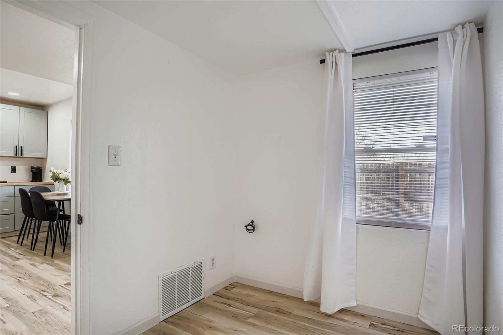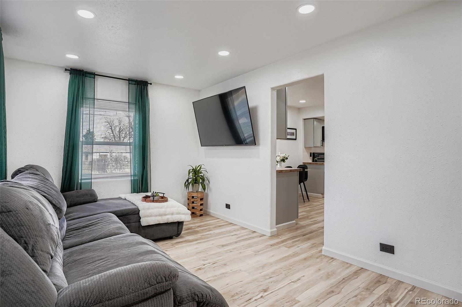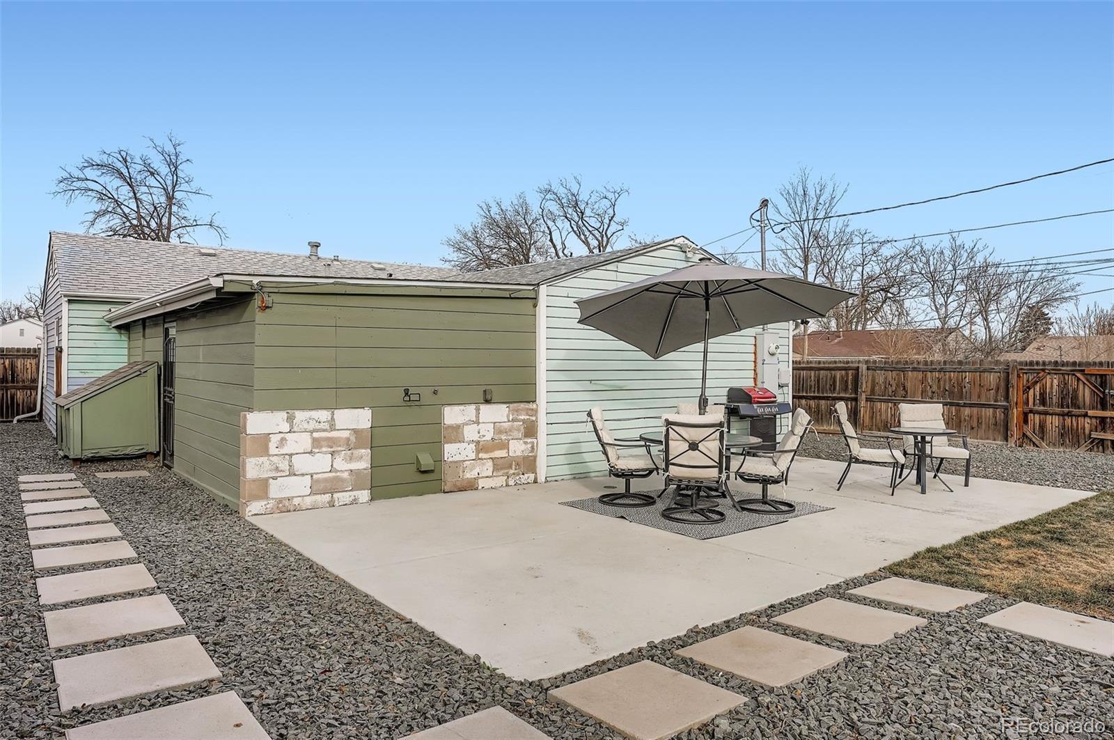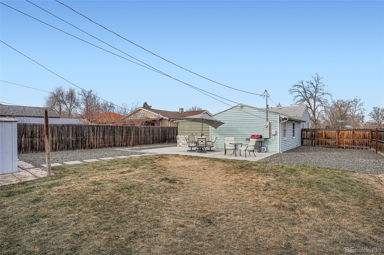 Welcome to this Fully renovated Charming home offering 3 bedrooms and 2 bathrooms with a functional layout. The owners renovated down to the studs and rebuilt the Kitchen, Living Room, and Guest Bathroom, adding new Cabinets and Lighting. Interior updates also include new laminate wood flooring throughout, and fresh interior paint across all living spaces. The kitchen and bathrooms are positioned for efficient daily use, while the bedrooms allow flexibility for a variety of needs. The additional sun room, storage room, or work area is a great place for all your needs. Exterior features include a large, fenced yard with patio, suitable for multiple uses and outdoor storage options. This is a great location within walking distance to light rail access (Decatur-Federal Station, and The Sheridan Station), providing convenient connectivity to surrounding areas. A quick commute to downtown Denver, or hop on the highway to journey to the beautiful Rocky Mountains for a quick weekend! This is a move-in-ready opportunity with recent interior upgrades and a fenced outdoor space. We can't wait for you to come and see this home!