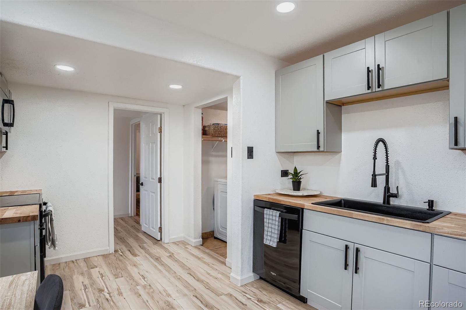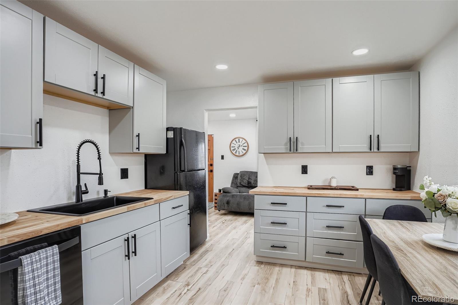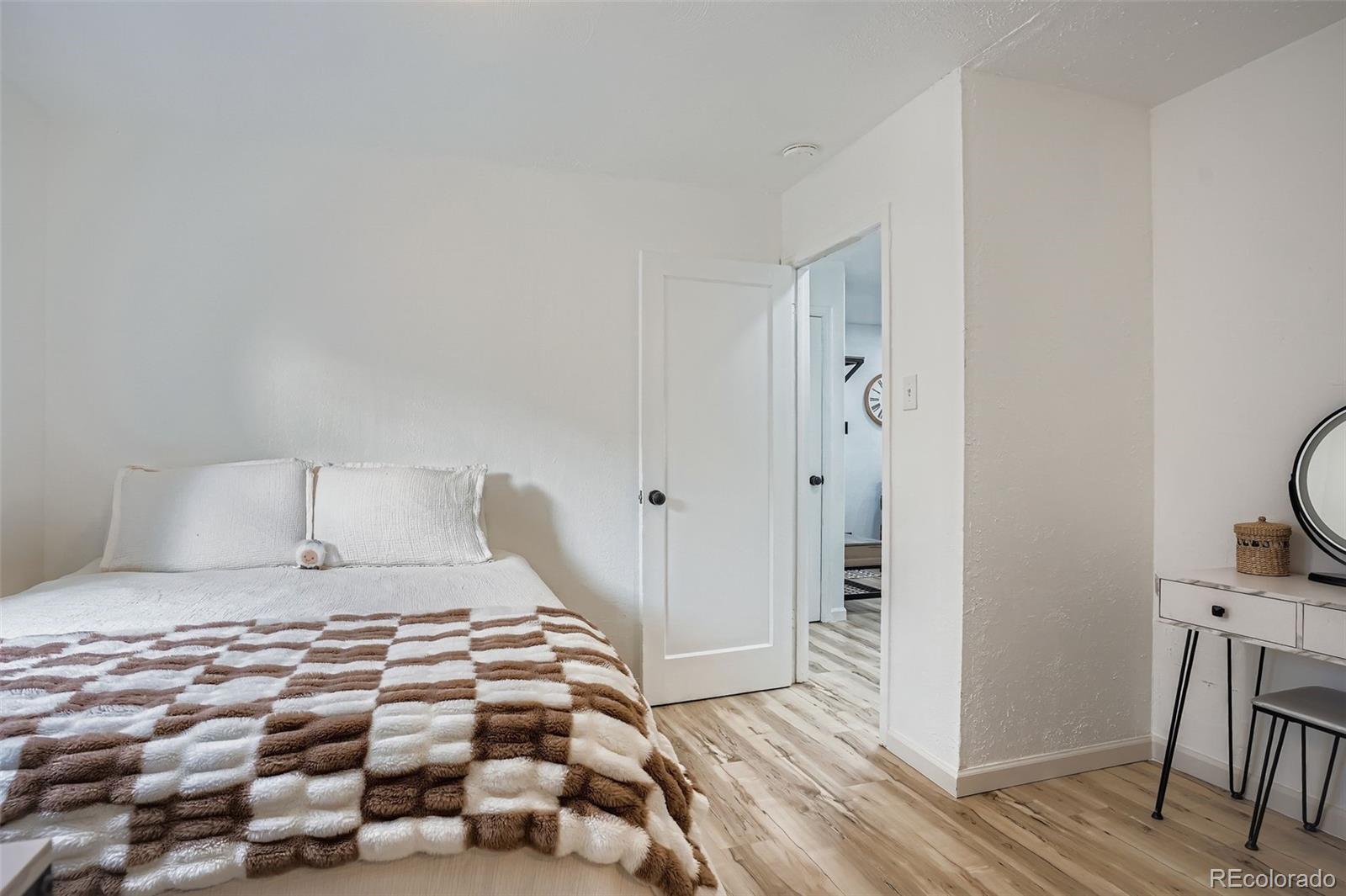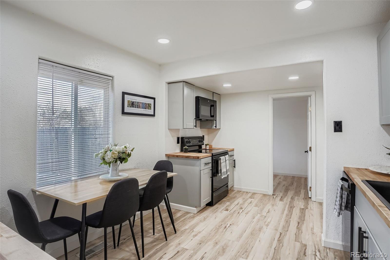 Welcome to this Fully renovated Charming home offering 3 bedrooms and 2 bathrooms with a functional layout. The owners renovated down to the studs and rebuilt the Kitchen, Living Room, and Guest Bathroom, adding new Cabinets and Lighting. Interior updates also include new laminate wood flooring throughout, and fresh interior paint across all living spaces. The kitchen and bathrooms are positioned for efficient daily use, while the bedrooms allow flexibility for a variety of needs. The additional sun room, storage room, or work area is a great place for all your needs. Exterior features include a large, fenced yard with patio, suitable for multiple uses and outdoor storage options. This is a great location within walking distance to light rail access (Decatur-Federal Station, and The Sheridan Station), providing convenient connectivity to surrounding areas. A quick commute to downtown Denver, or hop on the highway to journey to the beautiful Rocky Mountains for a quick weekend! This is a move-in-ready opportunity with recent interior upgrades and a fenced outdoor space. We can't wait for you to come and see this home!