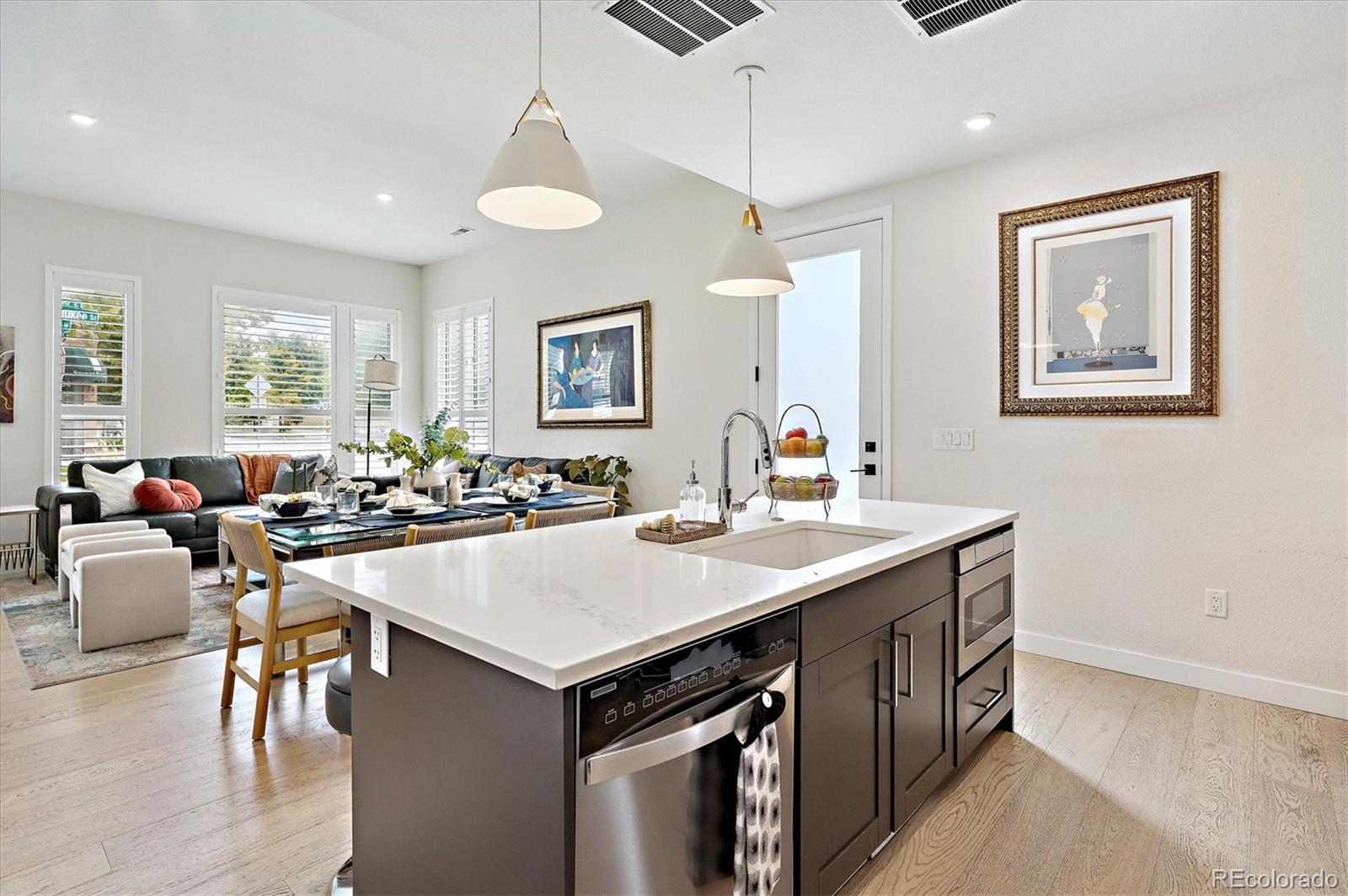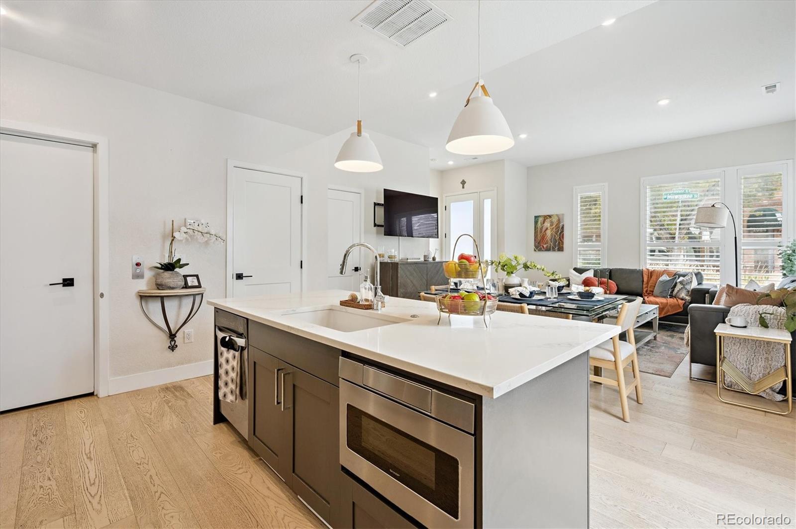 Elevator Luxury Living in a Prime Location! Stunning modern brownstone situated in the heart of South Denver and the University of Denver. This turn-key residence is defined by intentional design, seamless flow, and refined finishes throughout, while also being just blocks from the I-25 corridor. Beautiful engineered hardwood floors, grand 10' ceilings, and abundant natural light greet you upon entry and unfold to a spacious open living area, ideal for functional living and easy entertaining. The well-appointed kitchen features quartz counters, grey soft-close cabinetry, a stainless steel appliance package, and an oversized center island with barstool seating. Retreat to your spacious primary suite, complete with an ensuite 4-piece bath with a walk-in shower. Two generously sized secondary bedrooms, a second 3/4 bath, and laundry round out the upper level. This ADA-compliant end-unit residence features an elevator from the main level garage, all the way up to the sizable rooftop deck on the 3rd floor. Take in stunning views of Observatory Park, partial mountain and city views from the upgraded deck, or relax in the hot tub under the stars (included with the property). The 2-car attached garage is equipped with an electric vehicle charging station, providing convenience and efficiency for EV owners. Just minutes from your door are endless dining, shopping, and entertainment options on historic Pearl Street, South Gaylord Street, and Observatory Park, along with public transportation, which is within walking distance. Do not hesitate to experience 2083 S. Milwaukee Street and discover how urban contemporary living is achieved in an ideal, vibrant location.