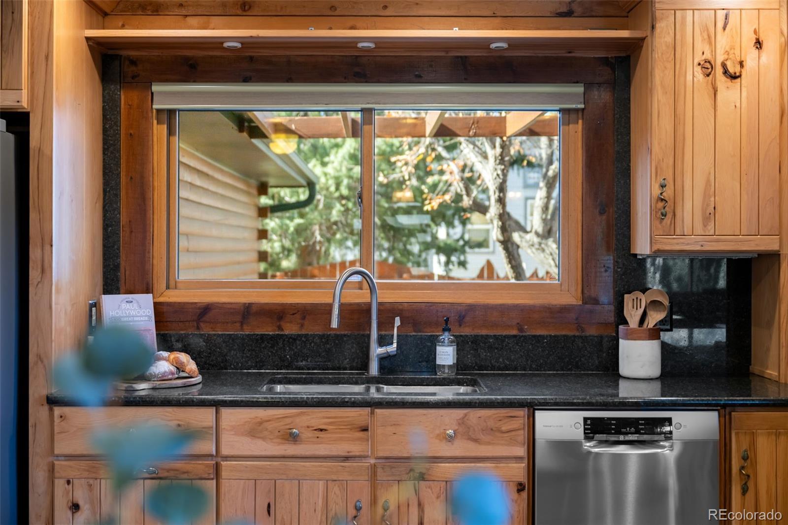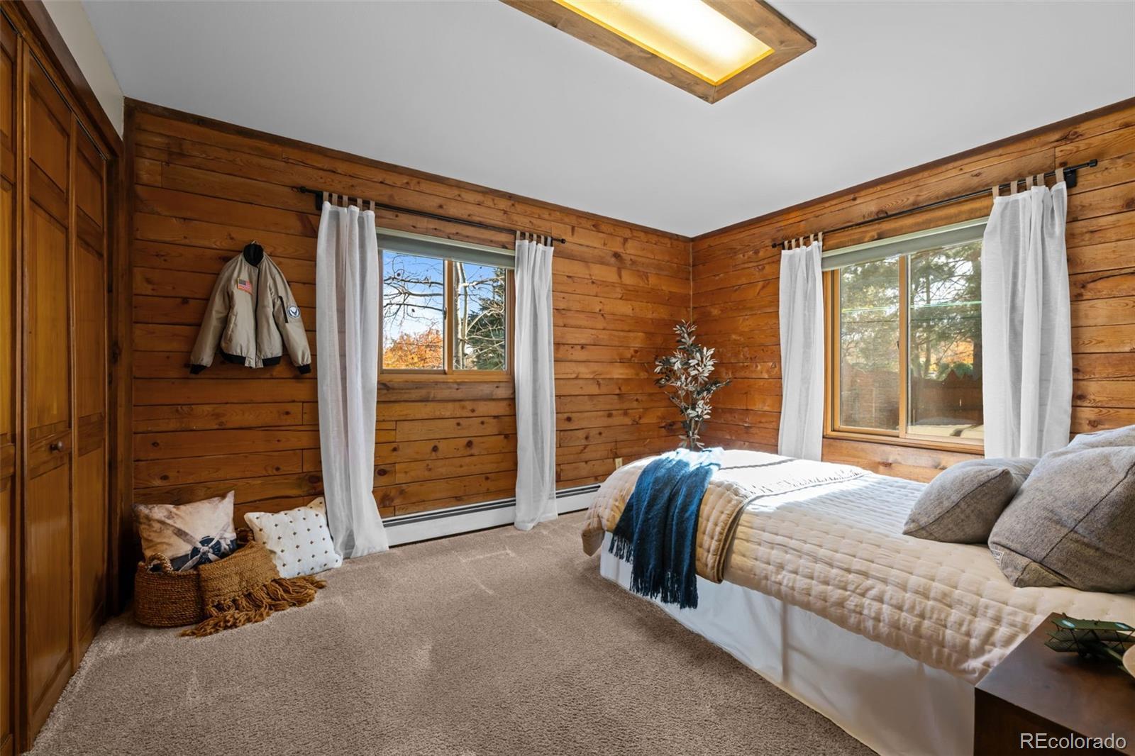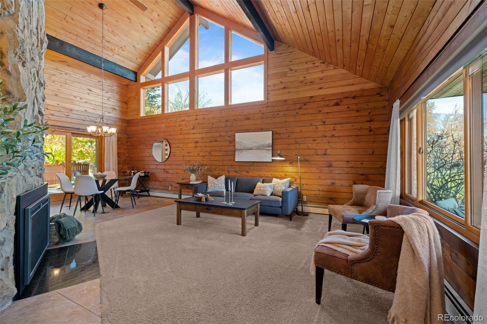 Looking for a unique & truly special home that stands out? Your search ends here*Welcome to this beautiful & iconic log home nestled in the heart of highly desired Applewood*This stunning Colorado Mtn contemporary home beautifully blends rustic charm w modern luxury and offers 4 beds,3 full baths & 3,384 SF of total living space on a .28 Acre park-like lot*From the moment you arrive,you will love the curb appeal, covered front porch,mature trees,long winding driveway & a side-load O/S 2 Car garage w 3+ additional dedicated parking spaces*Step inside to spectacular soaring ceilings, tongue-and-groove woodwork & classic log construction known for its insulation, warmth and character*High-end Andersen windows throughout flood the home w natural light,including a large dining room slider that opens up to the fantastic backyard*The timeless floorplan features: Vaulted great room w beams & gas log fireplace,spacious dining area w custom oversized windows designed specifically for this home*Beautiful kitchen w a large island,dedicated desk/workspace & abundant cabinetry,large laundry room w window,washer,dryer,sink & extensive storage*The main level also offers 2 large bedrooms & a full bath*The open staircase is accented by impressive stone rock wall & leads to an upper loft or office area overlooking the dining room & great room*You will love the enourmous vaulted primary suite,complete w vaulted tongue & groove ceilings,beams & large window w mtn view + a beautifully updated ensuite & spacious walk-in closet*The finished basement offers a generous family room,space for a workout area, a 4th bedroom w attached full bath & large storage room*The park-like backyard is an entertainer's dream w multiple decks, lounging spaces, gorgeous mature trees & lush landscaping*Enjoy fantastic walkability to restaurants,trails shopping & highly rated schools*This charming home is truly a rare find & located in the heart of the prestigious and highly sought-after Applewood neighborhood!