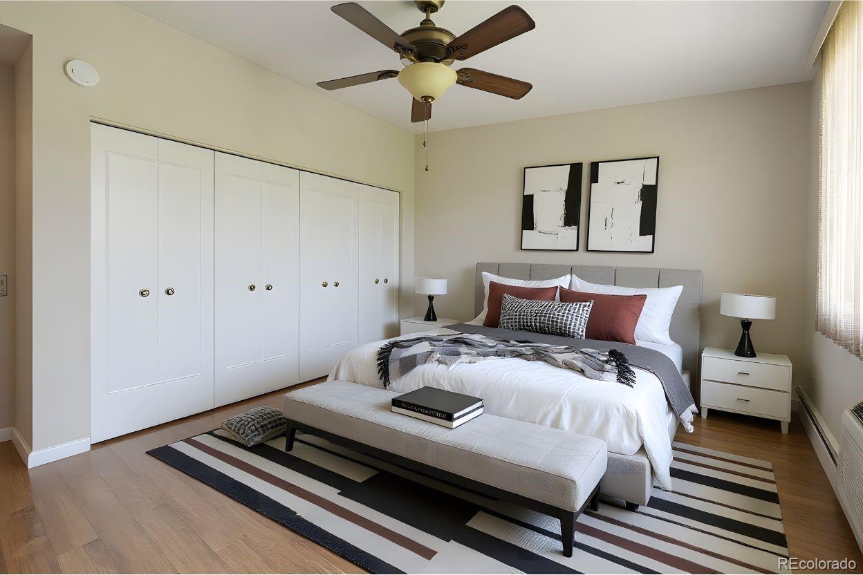 Penthouse beauty! Remodeled top floor condo in Windsor Gardens: 945 sf, 2 bedrooms, 1 bathroom, & 1 car detached garage! Move right in- updated & great condition! Kitchen features updated cabinets & countertops reconfigured to offer more countertop space, & all stainless appliances are included. The bathroom has been remodeled with updated vanity, stone top, updated fixtures, & large walk-in shower. No carpet! Laminate floors thru-out & tile floor in the bathroom. Neutral paint thru-out, updated baseboards- 2 updated wall ac units included! Enjoy city/mountain views, and vast open space from the enclosed vinyl glass/screened in lanai, & the vinyl slider door required by the HOA is already installed! 2 wall ac units included! This community includes an additional storage room in the building. The clubhouse & all the amenities are just down the street. Great time to buy, this one is a must see! **Windsor Gardens is Colorado's Largest Age 55+ Active Adult Living Condo Community. Did you know? Monthly HOA Dues include annual property taxes! And heat, water, sewer, trash, round-the-clock patrolling community responders, full time onsite association management, grounds/building maintenance, and activities department. Enjoy clubhouse amenities such as fitness center, indoor/outdoor pools, hot tub, sauna, billiards, library, craft rooms for ceramics, sewing, woodworking, and 9 hole par 3 golf course and onsite restaurant both open to the public. Stay engaged with a wide array of activities, clubs, and events scheduled every month. Additional features include garden plot program, private walking trail and nature preserve, and RV/Boat storage. The Highline Canal runs full length along south side of the complex. RTD Bus Stops located thru-out the community. FHA/VA approved. Close to restaurants, stores, shopping…Minutes to Lowry, Hwy 225, Cherry Creek…Easy access to DIA and downtown. Come see for yourself what Windsor Gardens has to offer. ©2021**