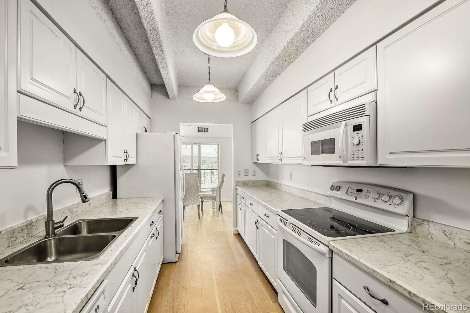 AMAZING VIEWS OF THE MOUNTAINS AND THE CITY!! AMAZING VALUE!! AMAZING OPPORTUNITY!! SELLER CONCESSION OF $12,000 to be used for prepaid HOA fees, closing costs, interest rate buydown at Buyer's discretion!! This beautiful unit has new wood flooring, many new fixtures and new paint throughout! It is tastefully appointed, spotlessly clean and ready for immediate occupancy. The breathtaking west views from the living room, dining room, and lanai are of the mountain ranges including Pikes Peak to the south and downtown Denver. The lanai is heated and air conditioned for year-round enjoyment. The second bedroom also has amazing views and is perfect for a guest room, den or office. This is one of the few units that has TWO GARAGE SPACES plus one exterior space on the deck. Included are two additional storage rooms within the building for the exclusive use of the owner. The monthly HOA fee is also a great value as it includes heat and central air conditioning. The owner only pays for the electricity and internet. No need for a gym membership as the community club house has men's and women's locker rooms, a great work-out room with newer equipment, indoor swimming pool, sauna, spa and pool room. You can also enjoy the Pickle Ball and Tennis Courts or simply stroll around the 7-acre impeccably maintained grounds and enjoy the soothing sounds of the water flowing through the two ponds. The community grounds are a true oasis. Don't miss them!! Electric car? -- charging stations on site. Conveniently located to Cherry Creek, Lowry Town Center, DIA, Denver Tech and only 20 minutes to LoDo. Candlewyck is a no pet dog community subject to Federal Regulations for service and emotional support animals.