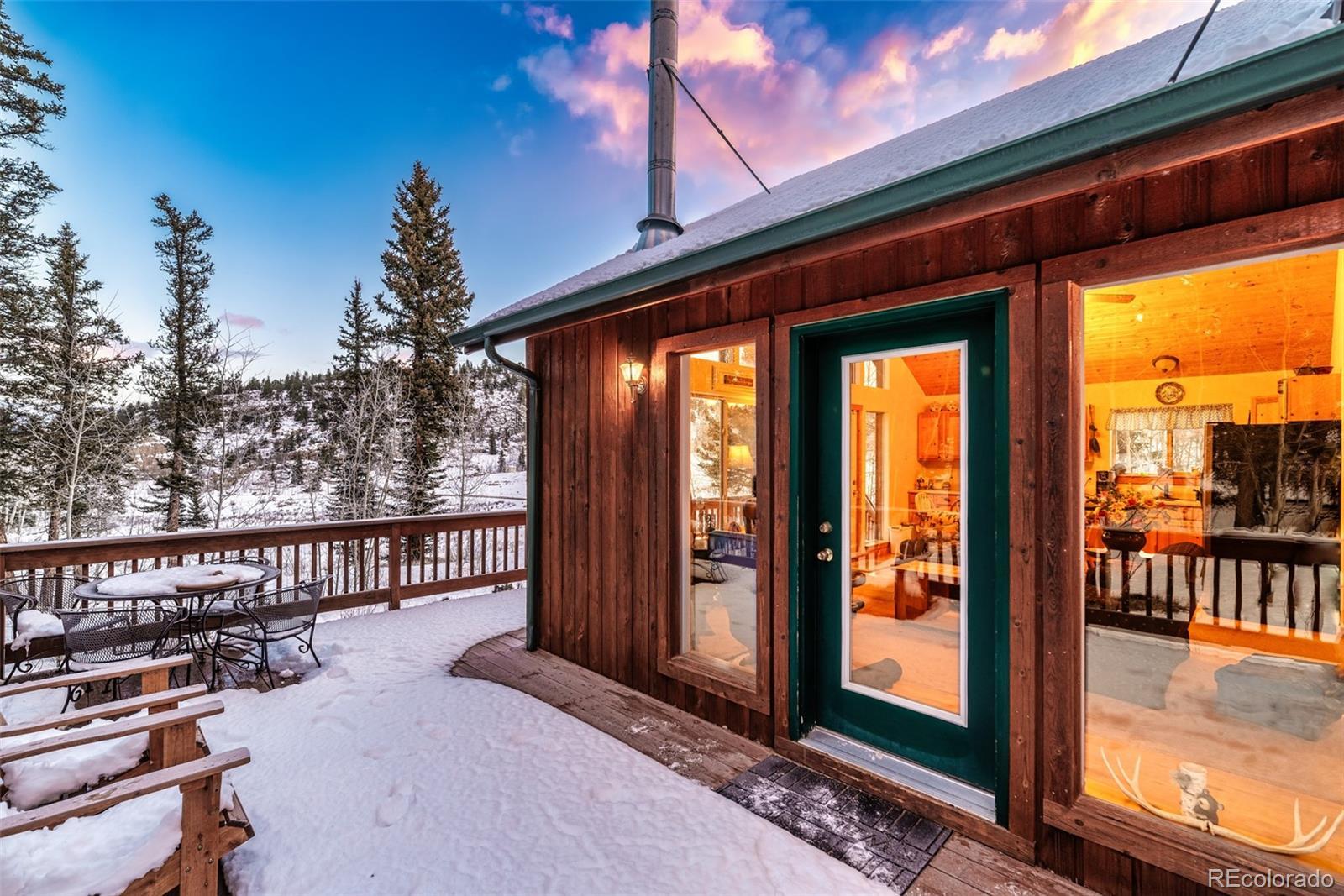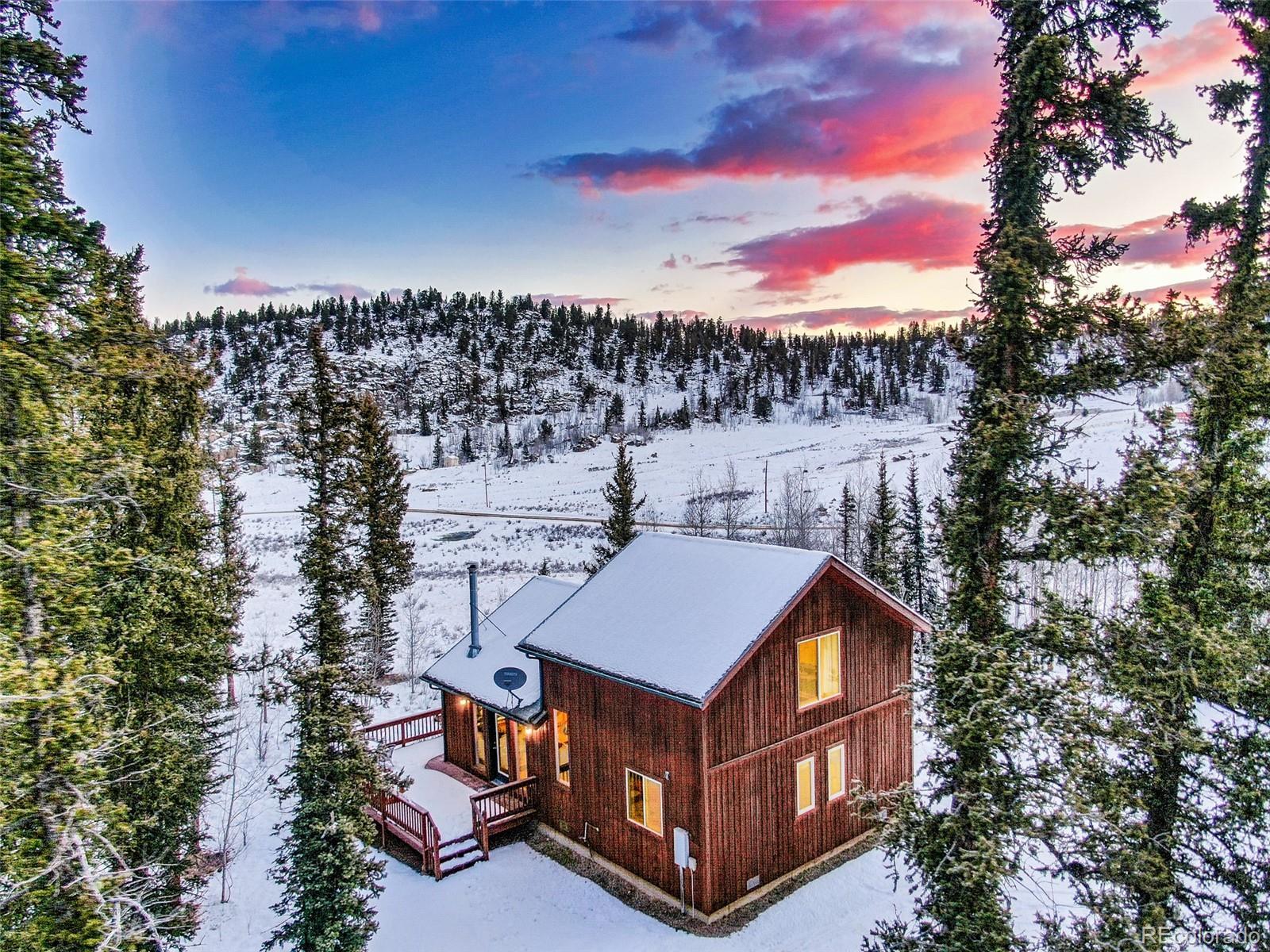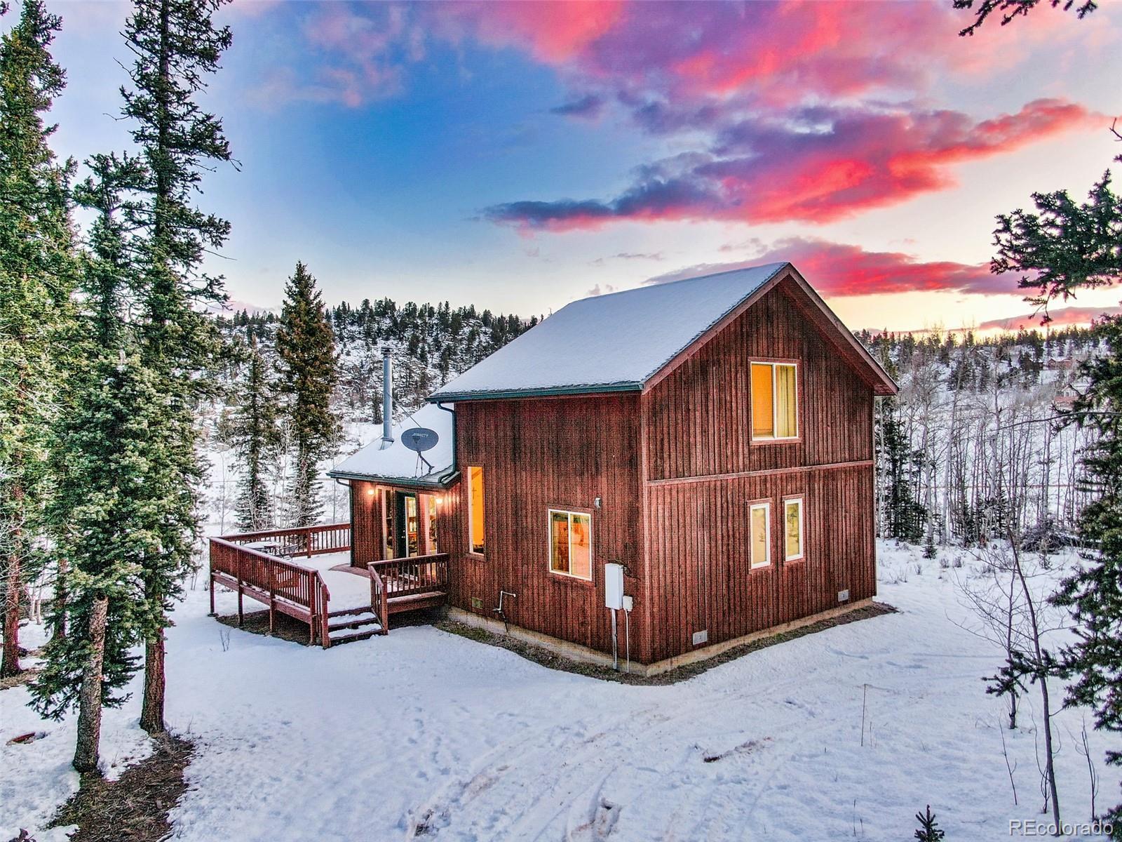 Nestled within the tranquil Indian Mountain subdivision, this charming chalet-style home offers a perfect blend of rustic comfort and modern convenience. Step inside to discover a beautifully appointed interior where vaulted wood T&G ceilings soar above hardwood floors, creating an inviting atmosphere. The kitchen dazzles with hickory cabinets, adding warmth and character to the space. Privacy abounds as this home is strategically positioned, backed by a lush green belt area, ensuring uninterrupted serenity without any neighbors in sight. Embrace the cozy ambiance with a wood-burning stove, perfect for chilly mountain evenings.Outside, a wrap-around deck beckons you to soak in the breathtaking views and bask in the glorious sunshine. The expansive lot offers ample space for outdoor activities, surrounded by mature trees that provide shade and seclusion. Experience the essence of mountain living in this retreat, where every detail exudes quality and craftsmanship. Whether you seek a peaceful getaway or a permanent residence immersed in nature's splendor, this home promises an unparalleled lifestyle opportunity. Only 10 minutes to National Forest access and 25 minutes to Fairplay for dining, shopping and entertainment!