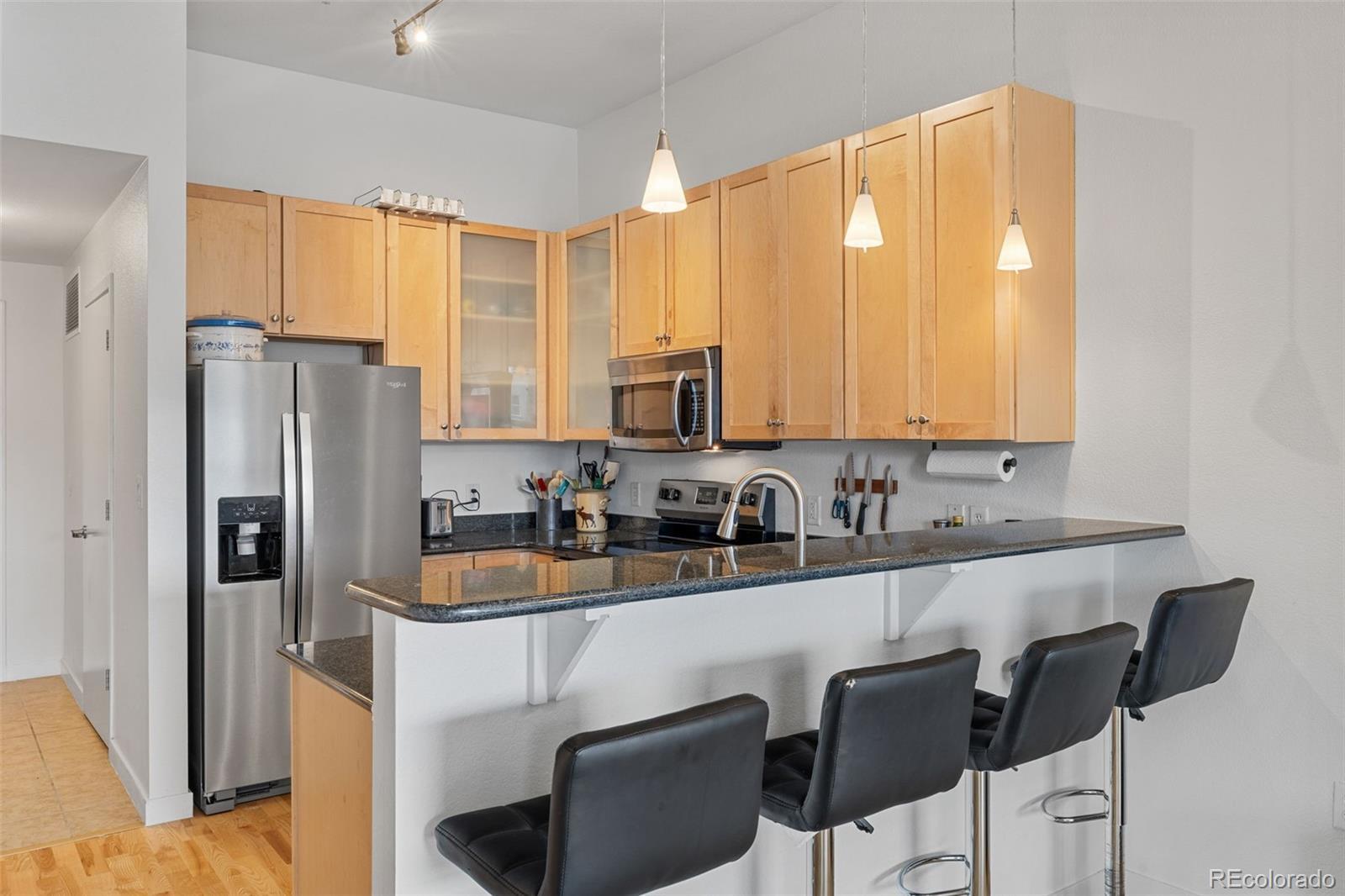 Location is everything! This 1-bed / 1-bath penthouse-level condo is what you have been waiting for. Hardwood floors, tile, and carpet make each living space inviting and warm. The living area has huge windows, a warm gas fireplace, and easy access to the patio. A kitchen large enough for the aspiring chef or right-sized for the occasional chef makes it very versatile. Huge bathroom, laundry in unit, and bedroom with attached office/den means you have room for everything. Very quiet building & neighbors. Easy access to I-25 or enjoy walking to everything your urban lifestyle demands. Public transit is a few minutes from your door - you'll have two parking spaces, but you won't need two cars anymore once you live here! In minutes, you'll be running the Platte River Trail that connects with Denver's extensive trail system, over 300+ miles of trails. Have you seen the development at Union Station lately? Step from your door - wine, dine, & coffee.