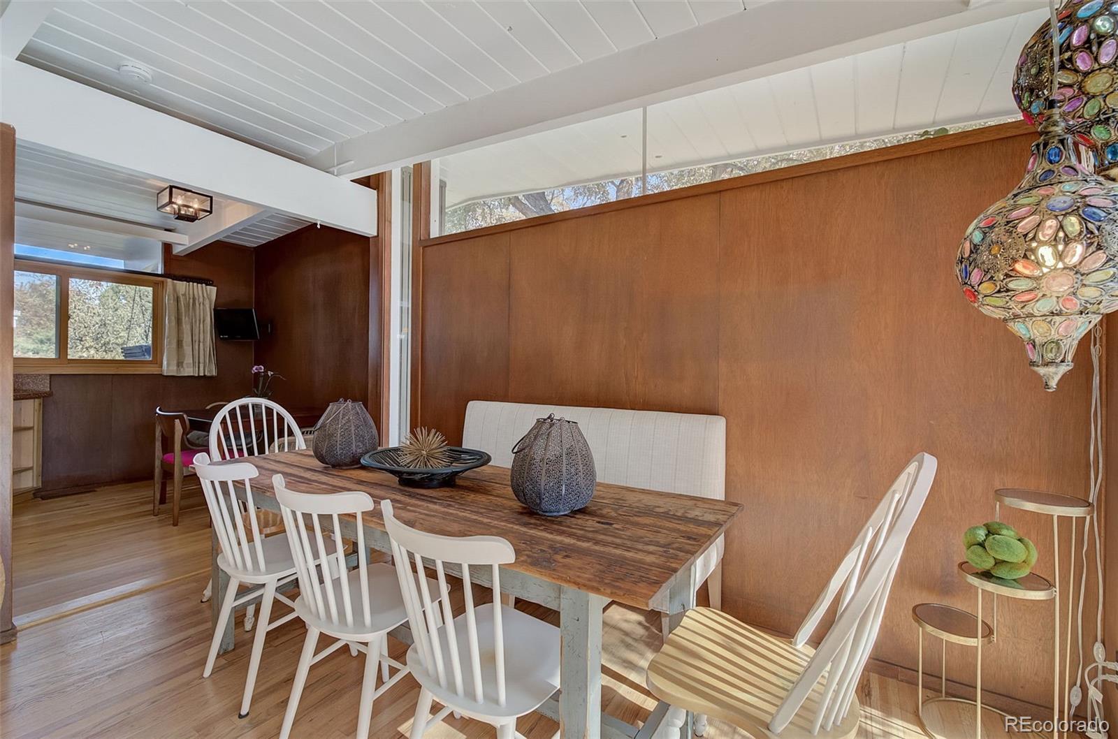An architecturally significant Joseph Eichler inspired ranch home built by H.B. Wolff in Denver’s iconic mid-century modern neighborhood, Krisana Park! Amazing architecture including floor to ceiling and clerestory windows, skylights, tongue and groove ceilings, original mahogany walls, skylights, double walk-in shower, dry sauna room, workroom with skylight, outdoor shed, 3 outdoor patios, and one with a wine barrel hot-tub/plumbed outdoor shower! Amazing home with true MCM vibes of both original and new updates. Very high rental income potential as well! Must see to appreciate! Also available for lease.