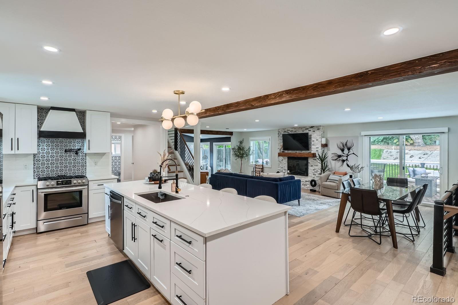 This beautiful 6-bedroom, 5-bathroom home, offers the perfect blend of style, comfort, and functionality. Situated in the popular Applewood Knolls neighborhood on a cul-de-sac street, this property has countless features designed for modern living. The open-concept layout welcomes you with natural light and flows seamlessly from the living room to the dining area and kitchen plus ample outdoor space, ideal for entertaining. At the heart of the home is the inviting kitchen featuring custom cabinetry with soft close drawers, an oversized center island with sleek quartz countertops, modern subway tile backsplash, a gas range with pot filler, high-end stainless-steel appliances and two separate sinks for all your culinary needs. The adjoining dining space opens directly to a pergola covered patio and the expansive professionally landscaped backyard, perfect for seamless indoor-outdoor entertaining. There are two primary suite options, one is conveniently located on the main level with a spacious en suite bath and walk-in closet; the other option is upstairs with a cozy fireplace, ensuite bathroom as well as your own private balcony for enjoying your morning coffee or just relaxing and taking in some fresh air. Two additional fireplaces can be found, one in the beautifully finished basement and one in the main living area. With a cozy sunroom just adjacent, there is an abundance of areas in the home to relax and unwind. The additional bedrooms and versatile living areas provide endless possibilities for family, guests, or flex space options. Additionally, there is a large two car garage for parking and storage needs. Applewood Knolls is a desirable neighborhood within minutes of highly rated Jefferson County schools, multiple parks plus shopping and eateries at the nearby Gold’s Marketplace, Applewood Village and just up the road from the new Clear Creek Crossing development. Don't miss out, set up a showing today!