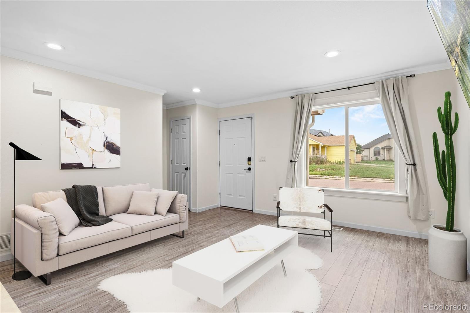 Fully Renovated Corner Lot Gem with Stylish Updates & Easy Fort Carson Commute! Welcome home to this beautifully updated 3-bedroom, 3-bathroom home sitting proudly on a spacious corner lot. Renovated from top to bottom, this home features fresh exterior paint, a new roof, and thoughtful touches throughout, including stunning accent walls and updated bathrooms that add modern charm. The bright kitchen offers stainless steel appliances and opens to a walkout patio, perfect for morning coffee or evening BBQs. Enjoy Colorado’s cool evenings around your own firepit and take advantage of the large backyard with a shed for extra storage or weekend hobbies. Stay comfortable year-round with central A/C, and enjoy the oversized 2-car garage with a built-in workbench, ideal for projects and extra organization. Conveniently located with an easy commute to Fort Carson, this move-in-ready home has it all, style, space, and functionality!