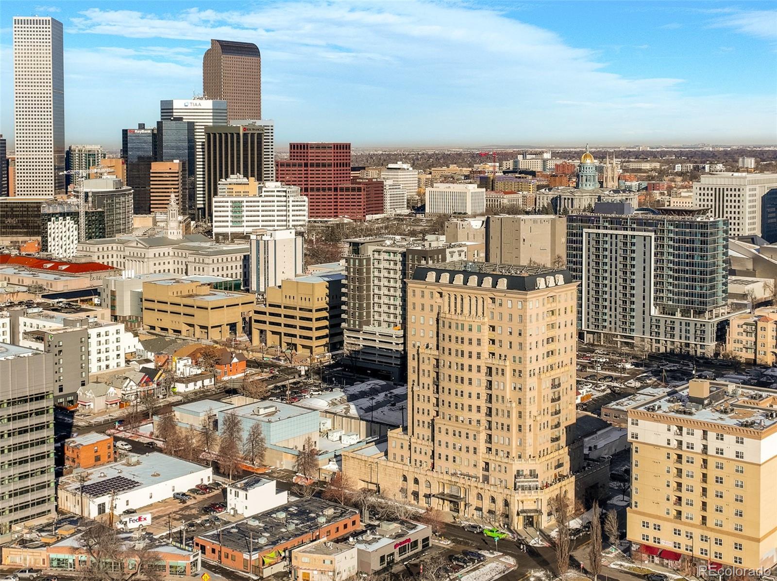 Only one of three luxury residences exist within the Belvedere that expand the width of the building. This is your opportunity to own the BEST one. Exclusively perched on the 9th floor, this stunning home in Denver's Golden Triangle is over 2,600 sq ft and offers a blend of modern comfort and classic elegance. With 3 spacious bedrooms, an office and two bathrooms, it provides ample space for relaxation and entertainment. Upon entering, you'll be greeted by a well-designed open floor plan that seamlessly connects the living, dining and kitchen areas. The living room also boasts the only gas fireplace in the building! Kitchen features a new refrigerator, cherrywood cabinets with rollouts, granite countertops, gas range (the only one in the building) and a large pantry. The primary suite is extraordinary and includes an office (that could be a fourth bedroom), spa-like bathroom including soaking tub, multiple closets including two massive walk-in closets. One of 3 private balconies is also a bonus to the primary, which provides views of the State Capital and downtown. The secondary bedrooms flank the west side of this home and both offer views of the mountains and cityscape. Newer carpet is in all three bedrooms. The remainder of the home has pristine new hardwood floors. The 3/4 bath includes a new vanity and seamless euro shower enclosure. The amount of natural light this home provides is unbelievable. With 3 private balconies, one can truly enjoy the Colorado sunshine and views. Additionally, this unit comes with the most coveted parking spot in the building, spot #1, which is right next to the ramp up to the lobby and elevators. Spot #81 is the additional parking spot, so be sure to check out both along with the storage unit! The Belvedere building is exemplary in design and both quiet and secure. Enjoy being steps from 16+ museums, multiple shops, restaurants and the beautiful Cherry Creek Trail. *Two kitchen photos are virtually remodeled for visualization only.*