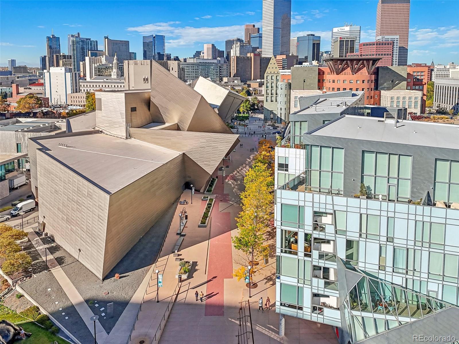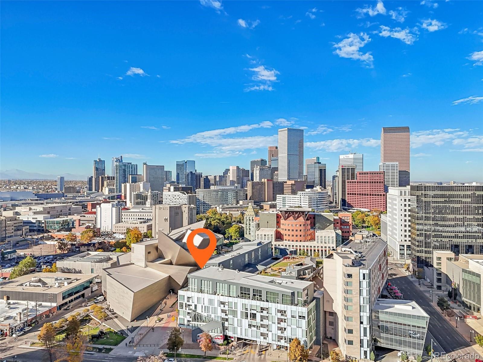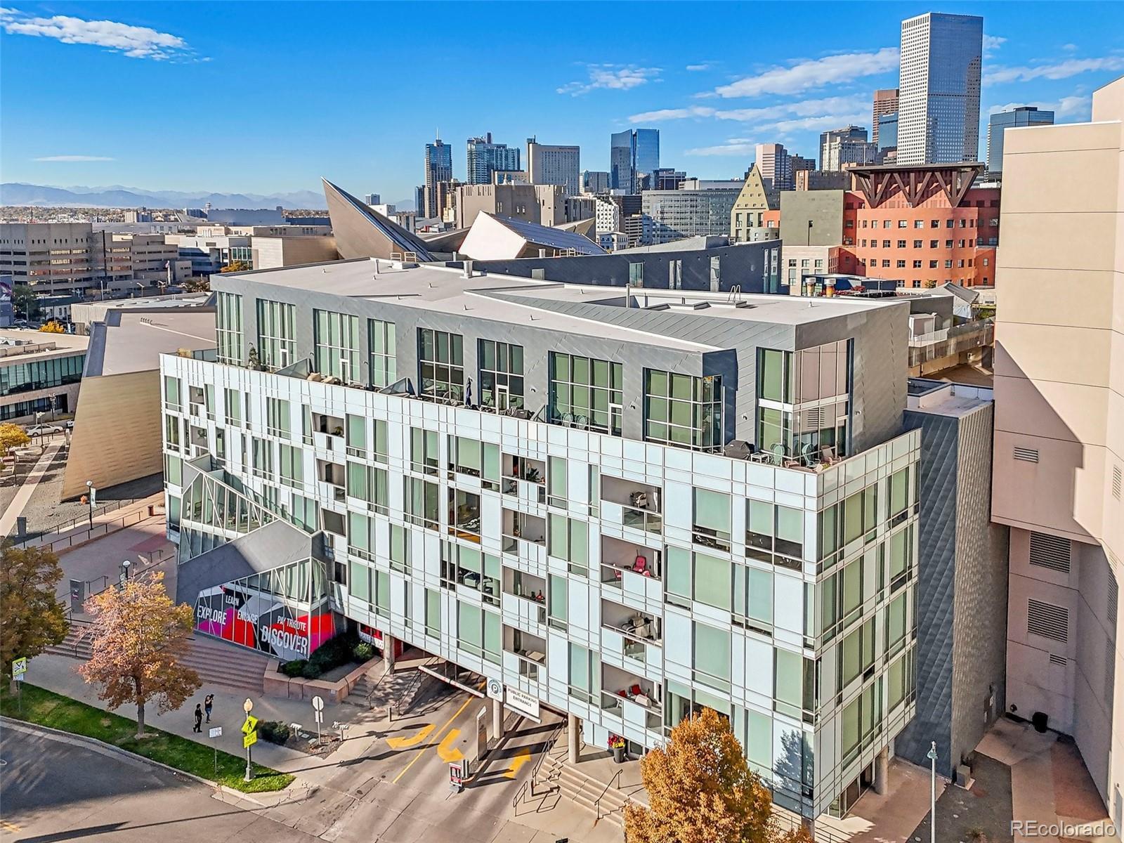 Centrally located in the Golden Triangle, this 2006 built condo is in the most desirable line of the Museum Residences community, and the only unit in this building (aside from the penthouses) that boasts a spectacular terrace patio—perfect for soaking up breathtaking views of the Denver Art Museum and majestic Rocky Mountains. The unit includes Expansive Floor-to-Ceiling Windows allowing sunlight to flood every corner of this contemporary home, with high-end electric blinds providing full and easy control of the ambiance. Enjoy three unique patios, including a gas-outfitted grilling patio off the kitchen, a spacious private terrace off the primary suite, and another private patio connected to the guest bedroom. Deeded to the unit are two reserved parking spaces located right next to the elevator entrance, along with a deeded private storage unit, bringing both convenience and added value. There are only 27 units in this private and quiet community, with a front desk concierge offering premium security and personalized service. The stunning rooftop terrace offers panoramic mountain and city views, creating the ideal setting for hosting, relaxing, or simply enjoying a nature escape amidst the city’s vibrant lifestyle. This incredibly walkable area puts Denver’s best amenities right outside your door. From dining and cultural hubs to parks and transit, downtown living has never looked better. Embrace luxury, privacy, and the best views Denver has to offer in this one-of-a-kind residence. Schedule a showing today! Video tour: https://www.youtube.com/watch?v=UA8QOPufBUM