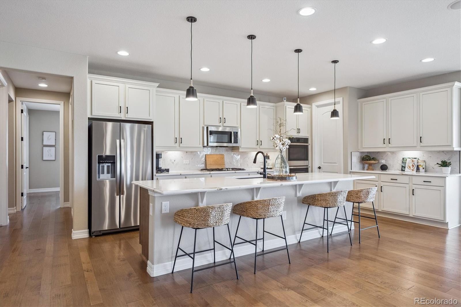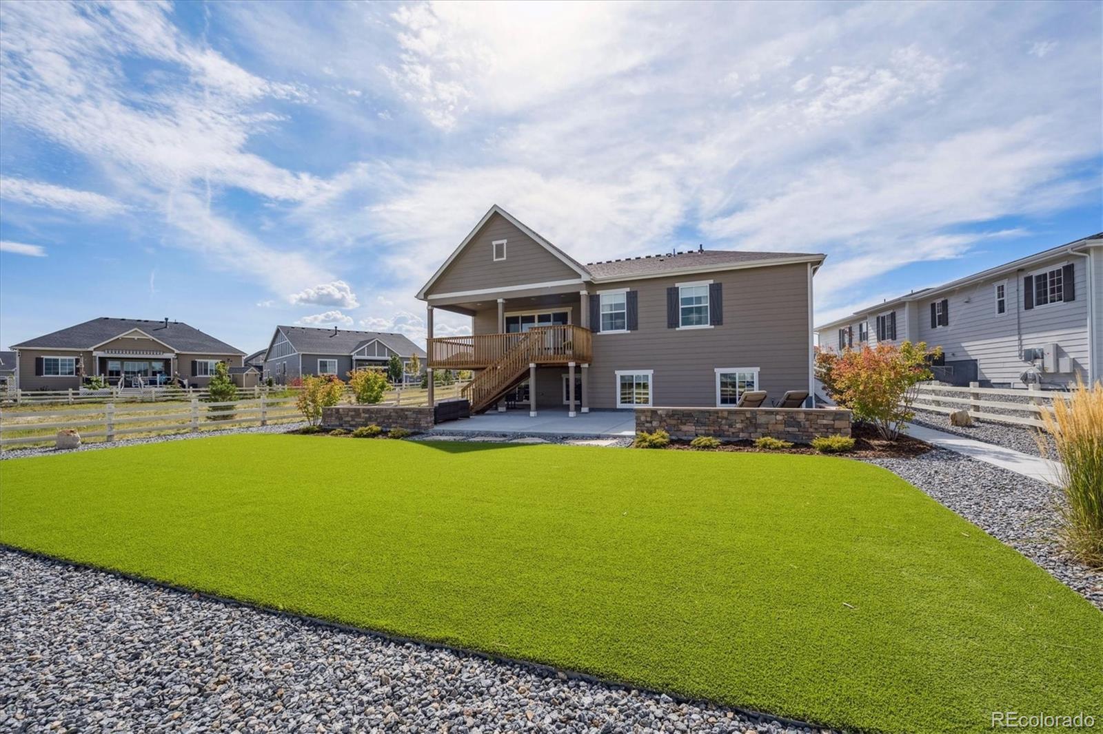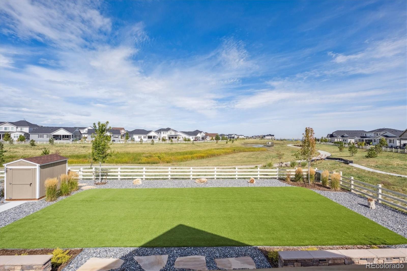 UNBELIEVABLE VALUE in a PRIME LOCATION! Enjoy unmatched privacy and stunning views of the Aurora Reservoir in one of the most desirable spots in the neighborhood—situated directly across from a park, with a greenbelt on one side, and open space behind. This beautifully upgraded ranch-style home offers the perfect blend of luxury, comfort, and functionality. The gourmet kitchen is a chef’s dream with an oversized center island, quartz countertops, gas range, double ovens, stainless steel appliances, large walk-in pantry, and plenty of prep space—ideal for both everyday living and entertaining. The spacious primary suite is a true retreat, featuring dual vanities, two generous walk-in closets, and a luxurious walk-in shower. The main level also includes two additional bedrooms, one with a private full bath—perfect for guests—and another with easy access to a full hallway bathroom with double sinks, and a convenient half bath near the kitchen. There is also a flexible space that can serve as a home office or formal dining room. Downstairs, the fully finished garden-level basement expands your living space with a large great room, wet bar, bonus room, additional bedroom, 3/4 bath, and a dedicated storage area. Step outside to a professionally landscaped backyard oasis—ideal for entertaining! Enjoy the low-maintenance turf yard, cozy fire pit area, covered deck, patio, and custom landscape lighting. Additional highlights include: Class 4 impact-resistant roof (new in 2024), maple engineer hardwood flooring on the main level, deck was sanded and stained in 2024, main floor laundry room with sink and cabinets, designer lighting throughout, access to top-rated Cherry Creek Schools, Pet Free, close proximity to community clubhouses, pools, parks, shopping, DIA, and DTC. This home truly has it all—just move in and start living!
