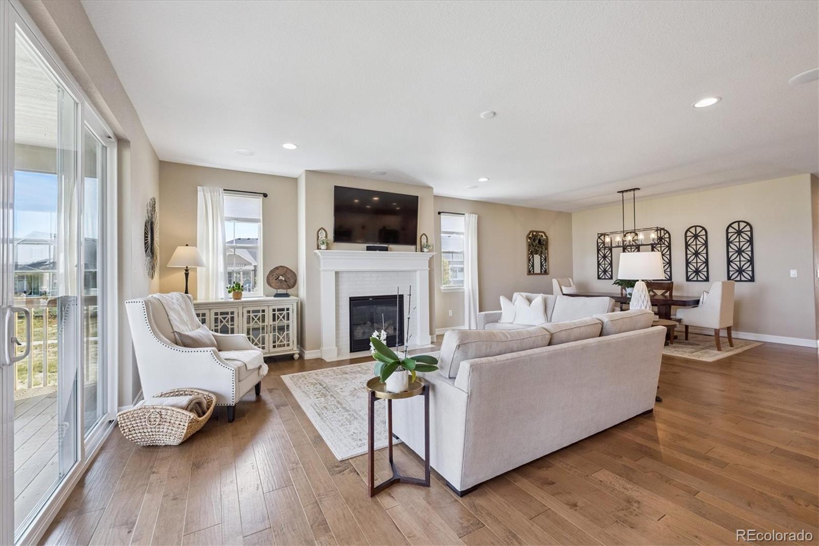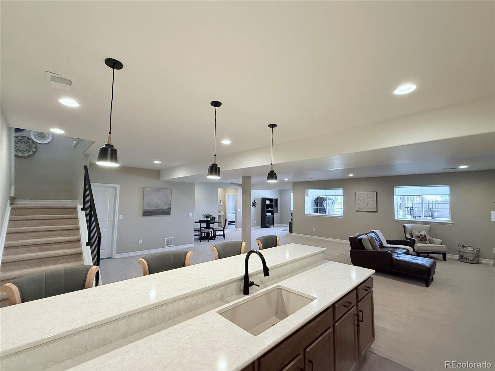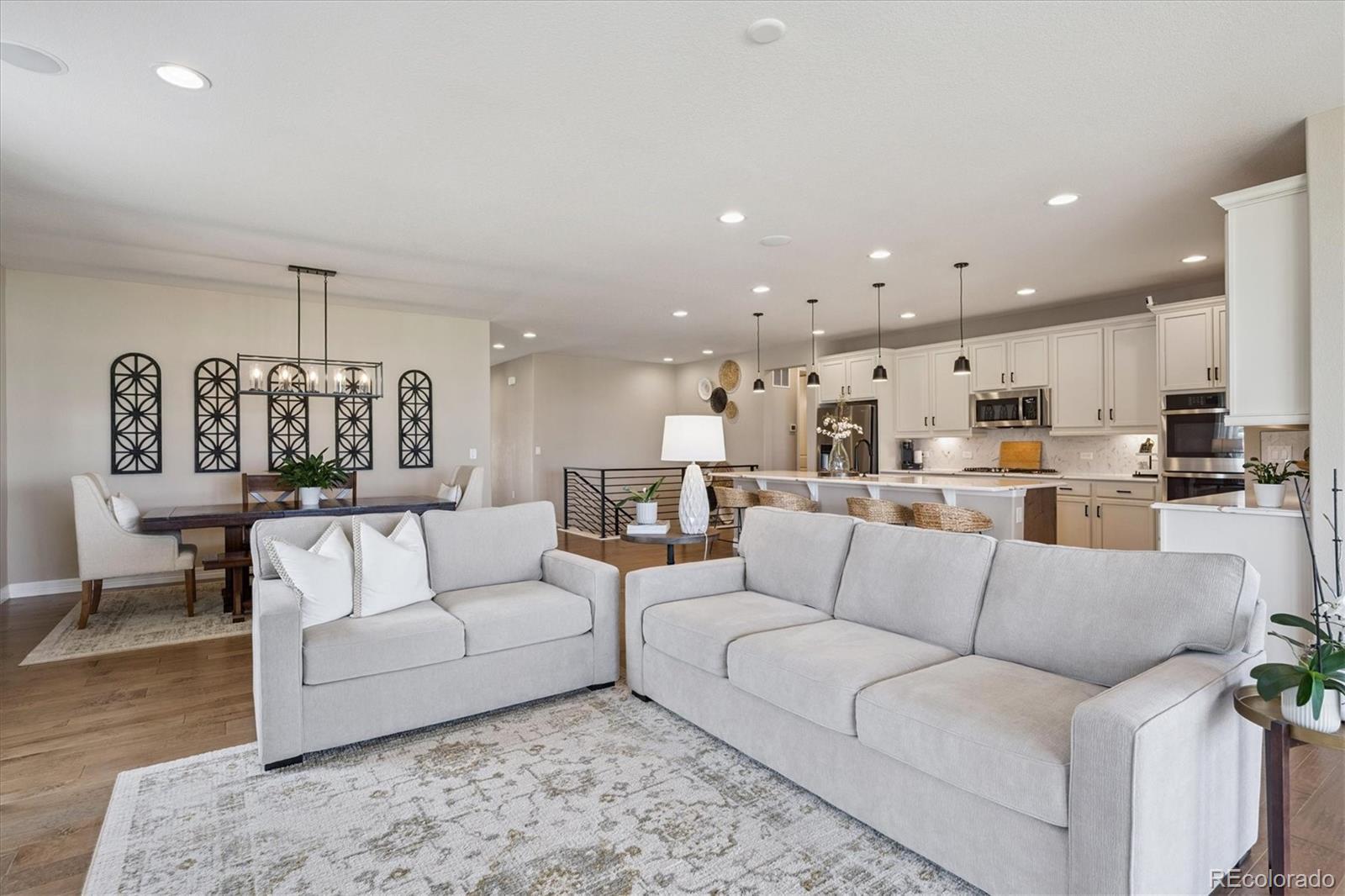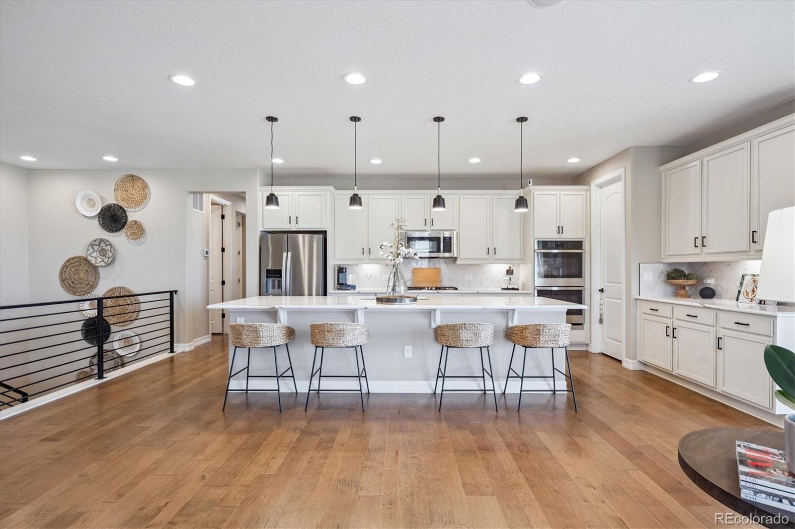 UNBELIEVABLE VALUE in a PRIME LOCATION! Enjoy unmatched privacy and stunning views of the Aurora Reservoir in one of the most desirable spots in the neighborhood—situated directly across from a park, with a greenbelt on one side, and open space behind. This beautifully upgraded ranch-style home offers the perfect blend of luxury, comfort, and functionality. The gourmet kitchen is a chef’s dream with an oversized center island, quartz countertops, gas range, double ovens, stainless steel appliances, large walk-in pantry, and plenty of prep space—ideal for both everyday living and entertaining. The spacious primary suite is a true retreat, featuring dual vanities, two generous walk-in closets, and a luxurious walk-in shower. The main level also includes two additional bedrooms, one with a private full bath—perfect for guests—and another with easy access to a full hallway bathroom with double sinks, and a convenient half bath near the kitchen. There is also a flexible space that can serve as a home office or formal dining room. Downstairs, the fully finished garden-level basement expands your living space with a large great room, wet bar, bonus room, additional bedroom, 3/4 bath, and a dedicated storage area. Step outside to a professionally landscaped backyard oasis—ideal for entertaining! Enjoy the low-maintenance turf yard, cozy fire pit area, covered deck, patio, and custom landscape lighting. Additional highlights include: Class 4 impact-resistant roof (new in 2024), maple engineer hardwood flooring on the main level, deck was sanded and stained in 2024, main floor laundry room with sink and cabinets, designer lighting throughout, access to top-rated Cherry Creek Schools, Pet Free, close proximity to community clubhouses, pools, parks, shopping, DIA, and DTC. This home truly has it all—just move in and start living!