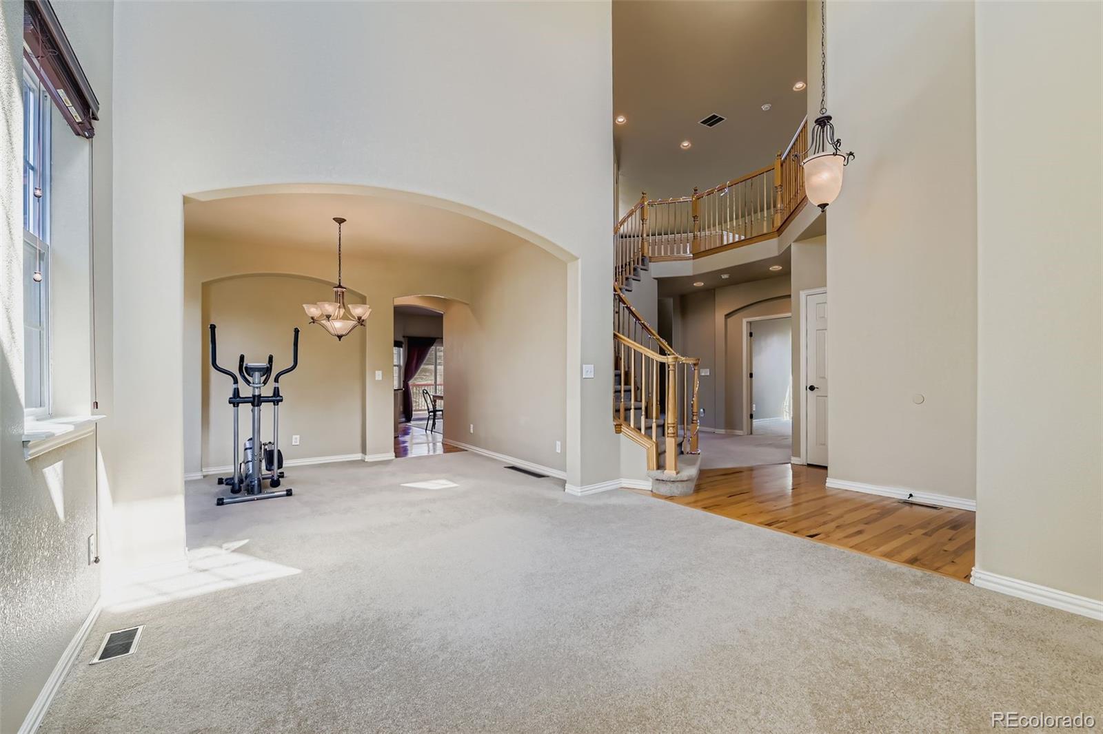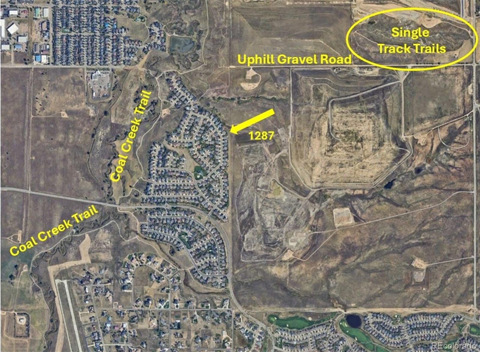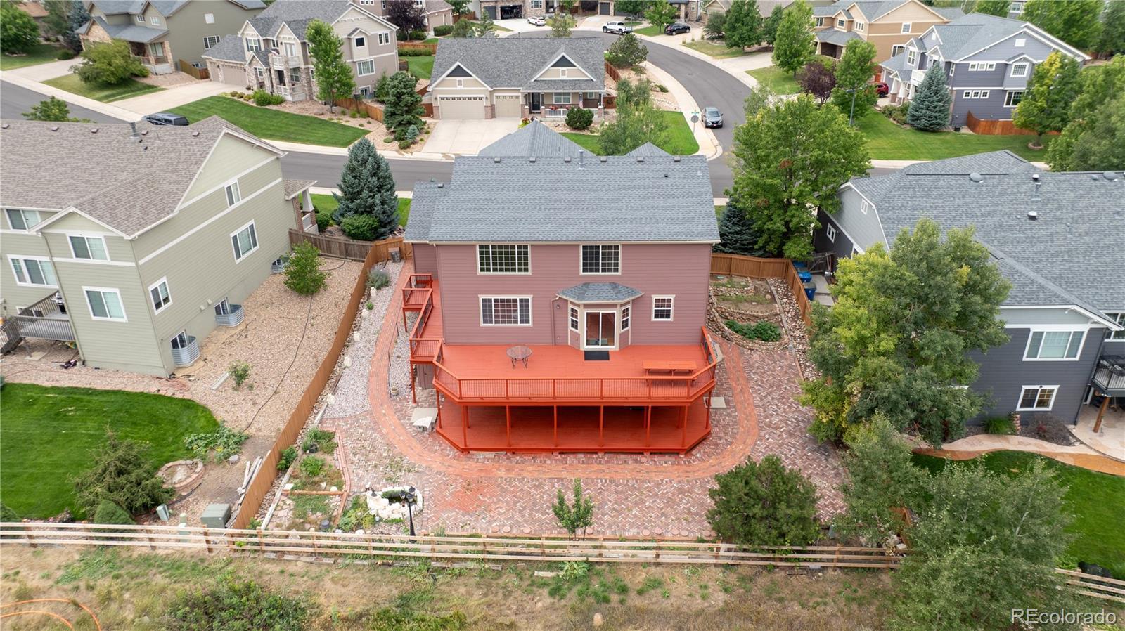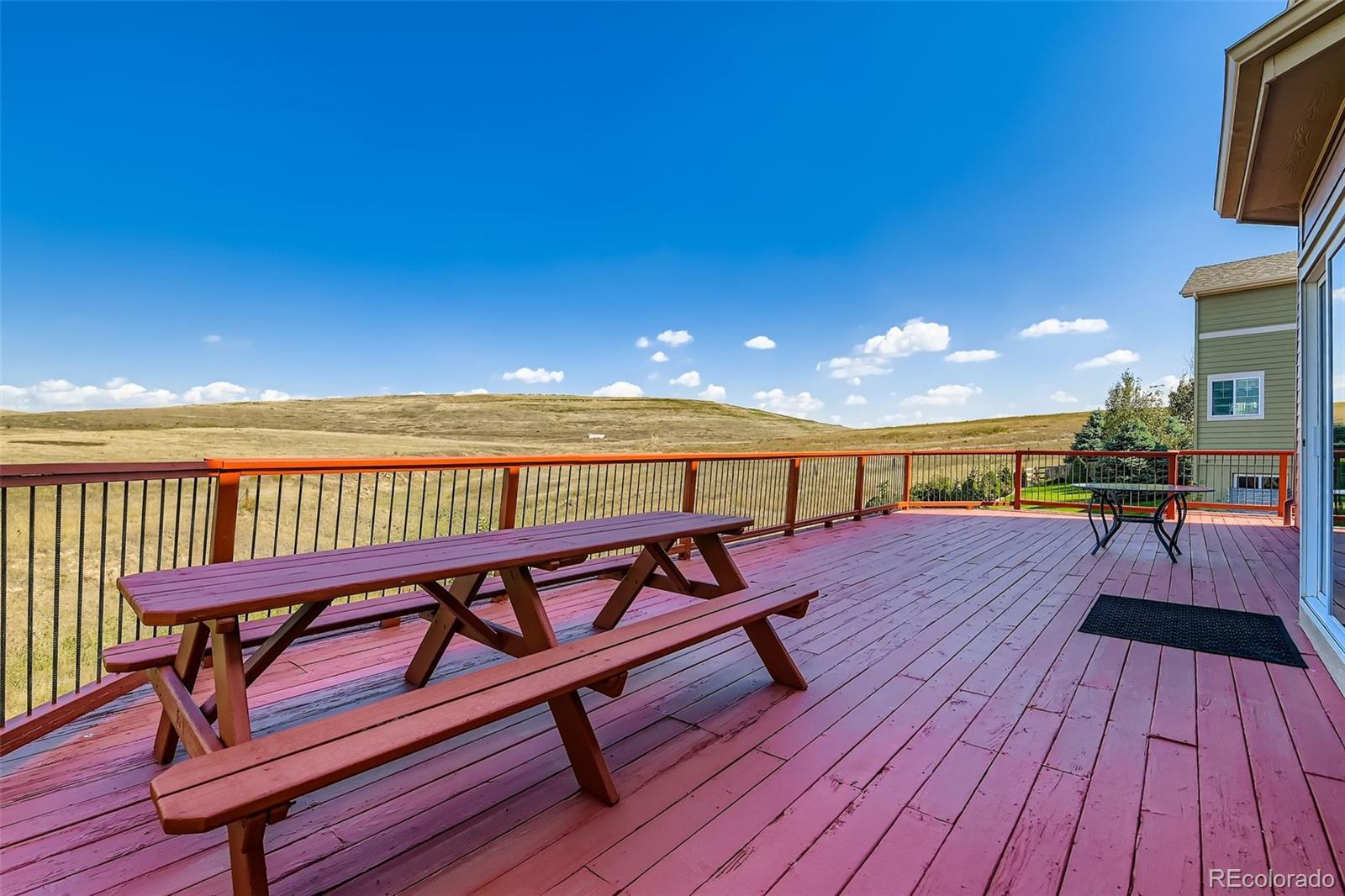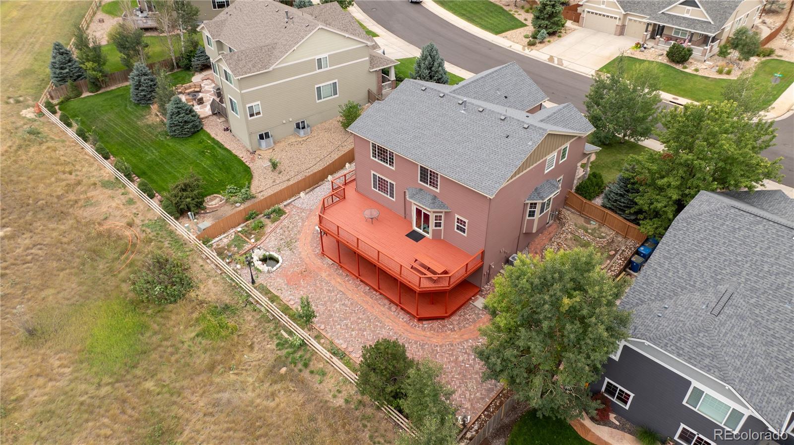 ERIE OPEN SPACE GEM. Appraised at $920,000 in August 2025. This home stands out for its first-floor 18-foot ceilings, large double deck, and commanding open space views. The main level living room, foyer, and great room have two-story tall ceilings. Also on the main floor is a kitchen, dining room, office, laundry room, and a half-bathroom. The kitchen has granite countertops, an island, a pantry, many cabinets, and a built-in desk. The master suite on the upper level has a bedroom with a pitched ceiling, a five-piece bathroom, and a walk-in closet. Also on the upper floor is a loft that looks down into the high-ceiling foyer and great room, as well as two bedrooms and a full bathroom. The lower-level finished walk-out basement has a second kitchen, dining room, family room, two bedrooms, a furnace room, and a custom-built bathroom with marble walls and a glass block shower. One of the superalive aspects of this home is the massive double deck. The upper deck covers 870 sq ft and provides unobstructed views of the nearby hills. The upper deck wraps around the side of the house, leading to a staircase down to the brick sidewalk that encircles the back of the home. The 640 sq ft lower deck has views of the hills between wooden support columns. The entry slide glass door from the lower deck to the family room has a key-based lock. The backyard features a brick piazza with three garden areas, a goldfish pond, and a shed located beneath the upper deck's wrap-around. The garage features a three-car configuration, complete with a workbench and extensive built-in shelving. Inclusions: clothes washer and dryer, two gas stoves, two refrigerators, microwave, and dishwasher. Easy-access bicycle trails with minimal car or truck traffic include the Erie Singletrack trail network and the Coal Creek Trail. Come and see it!