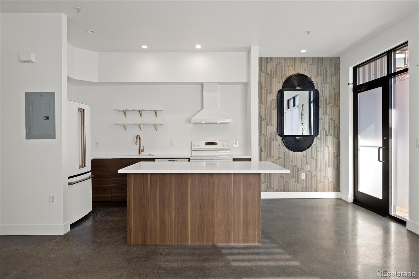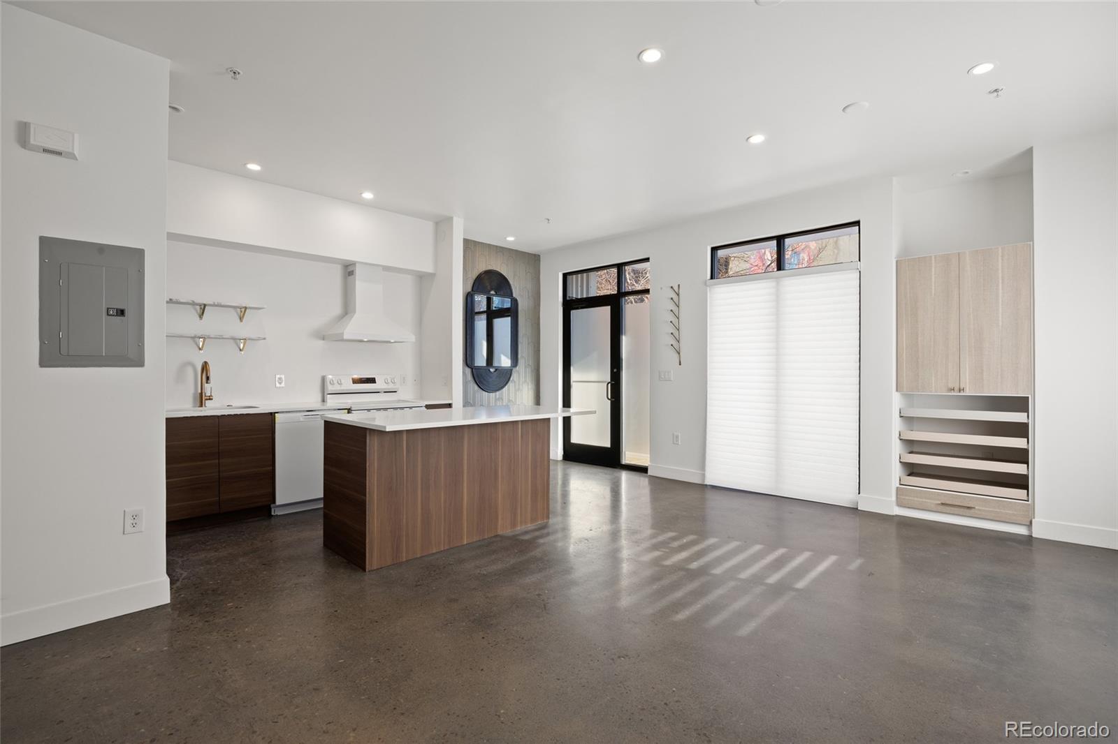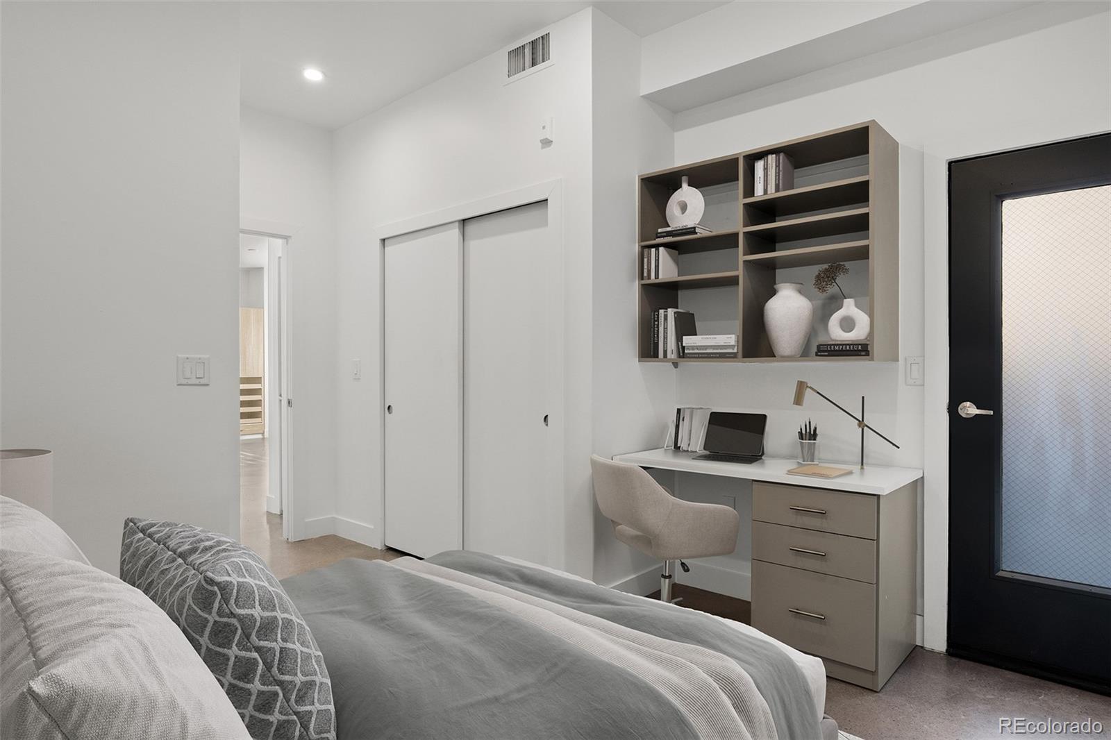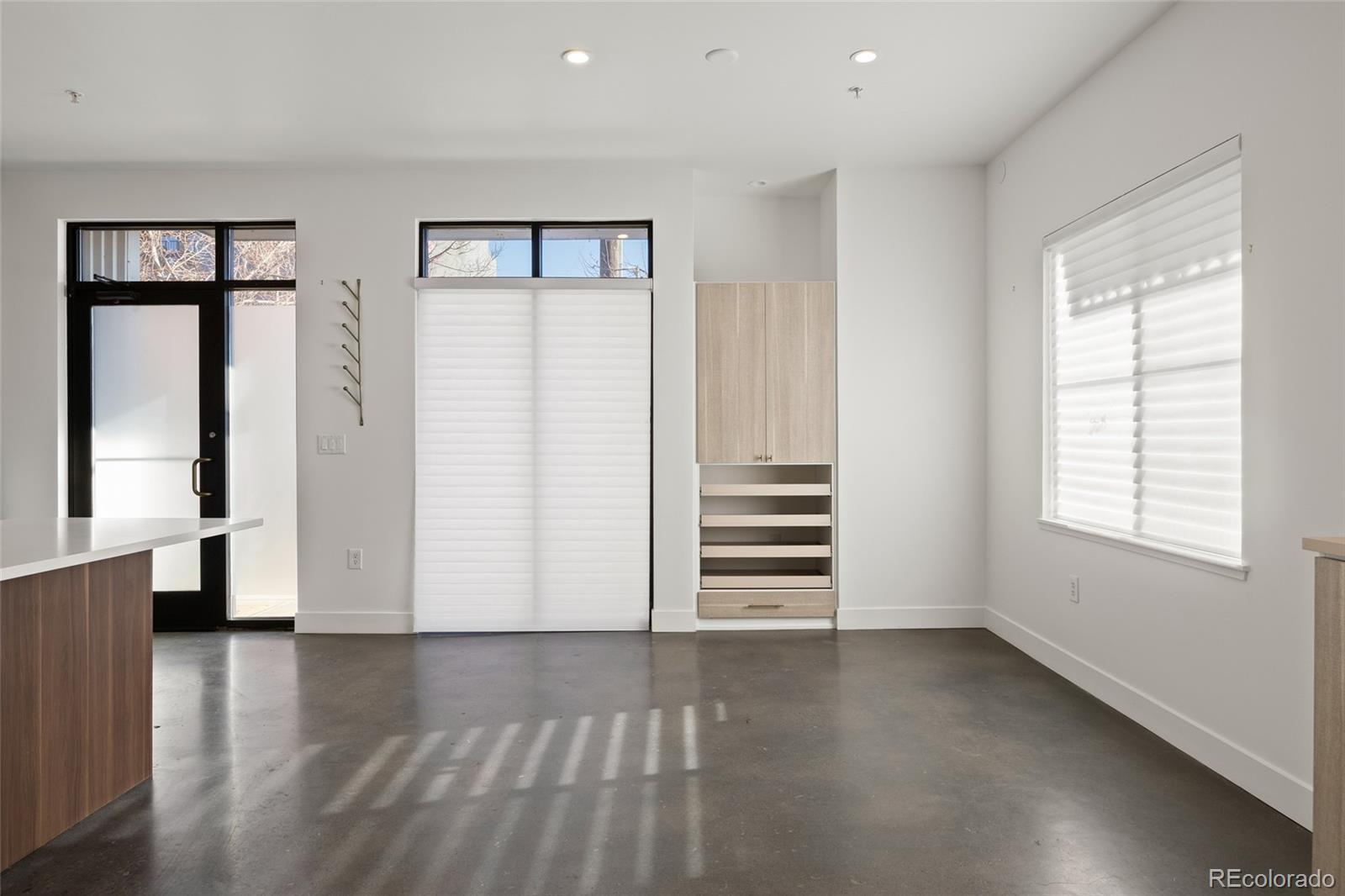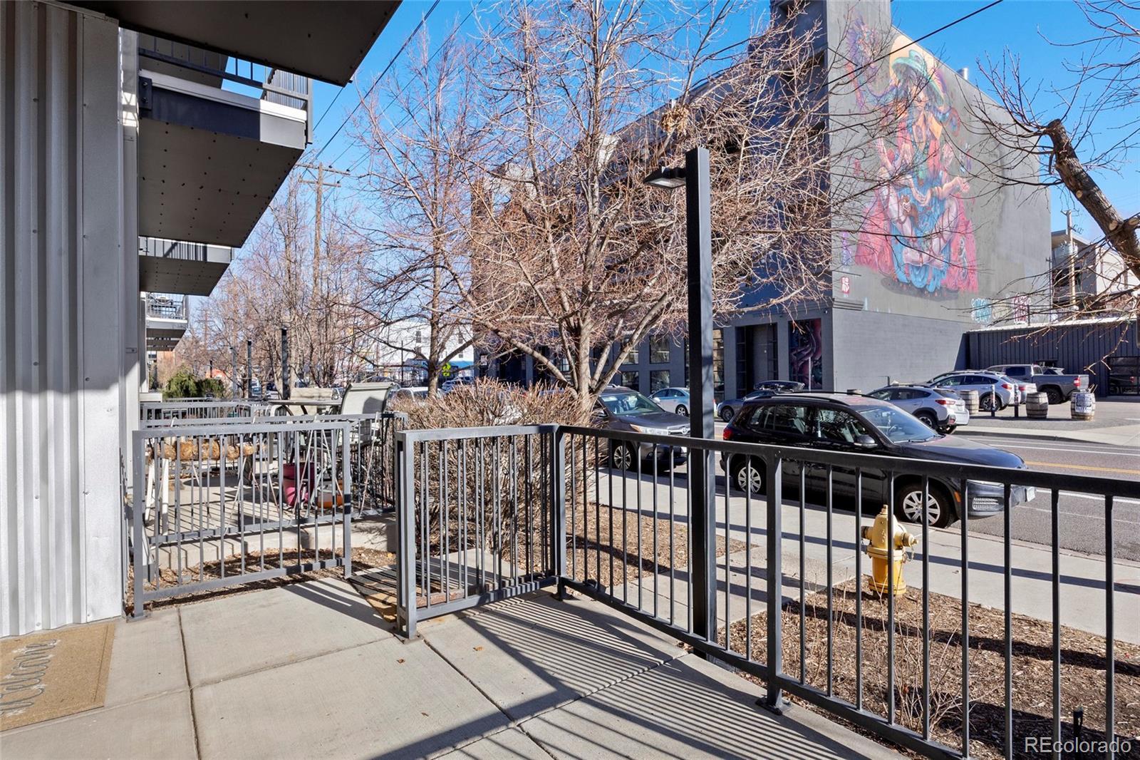 This is a rare opportunity to own a versatile Live/Work residence in the heart of Denver’s highly sought-after RiNo Art District, with direct frontage and immediate access to Blake Street. HOA-approved for a wide range of uses—including residential, retail, office and more—this property offers exceptional flexibility in one of the city’s most vibrant and walkable neighborhoods. This beautifully remodeled corner/end-residence has been thoughtfully updated from top to bottom with modern, high-quality finishes throughout. Interior features include epoxy-stained concrete floors, smooth-finish walls and ceilings, custom kitchen cabinetry, a deep-basin sink with disposal, and GE Café smart refrigerator. The spa-like bathroom showcases a marble tile shower, updated vanity, designer lighting, and curated wallpaper accents. Custom built-ins by California Closets, a dedicated built-in desk, recessed lighting, and automated blinds enhance both functionality and style. Oversized windows flood the living area with abundant natural light, creating a bright and inviting atmosphere. Rare for the community, the space offers both front and rear entrances, a gated private patio, and a dedicated parking space conveniently located just outside the back door. Enjoy unmatched walkability to neighborhood favorites including Mr. Oso, Improper City, The 14er, Blue Sparrow Coffee, and Denver Central Market. The 38th & Blake Light Rail Station is close, providing one-stop access to Union Station and an easy commute to Denver International Airport in approximately 30 minutes. Move-in ready with no updates needed, this is a prime opportunity to own a highly flexible, modern space in one of Denver’s most desirable neighborhoods.