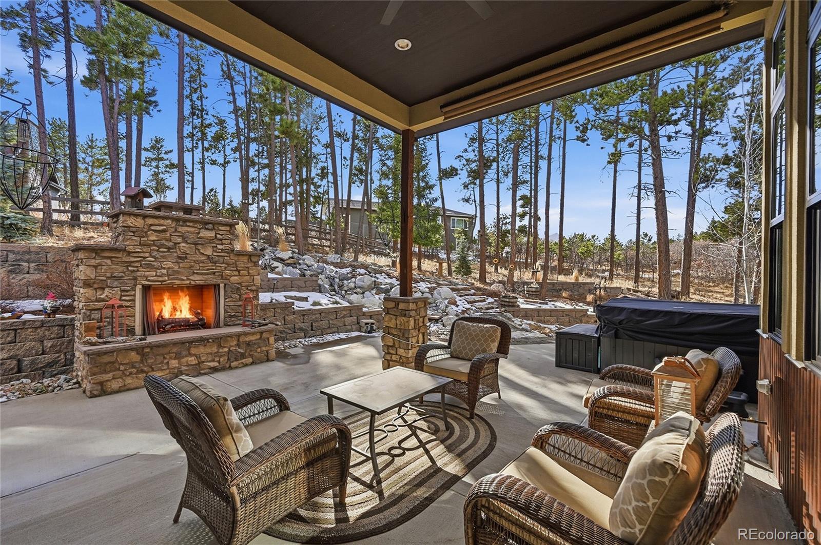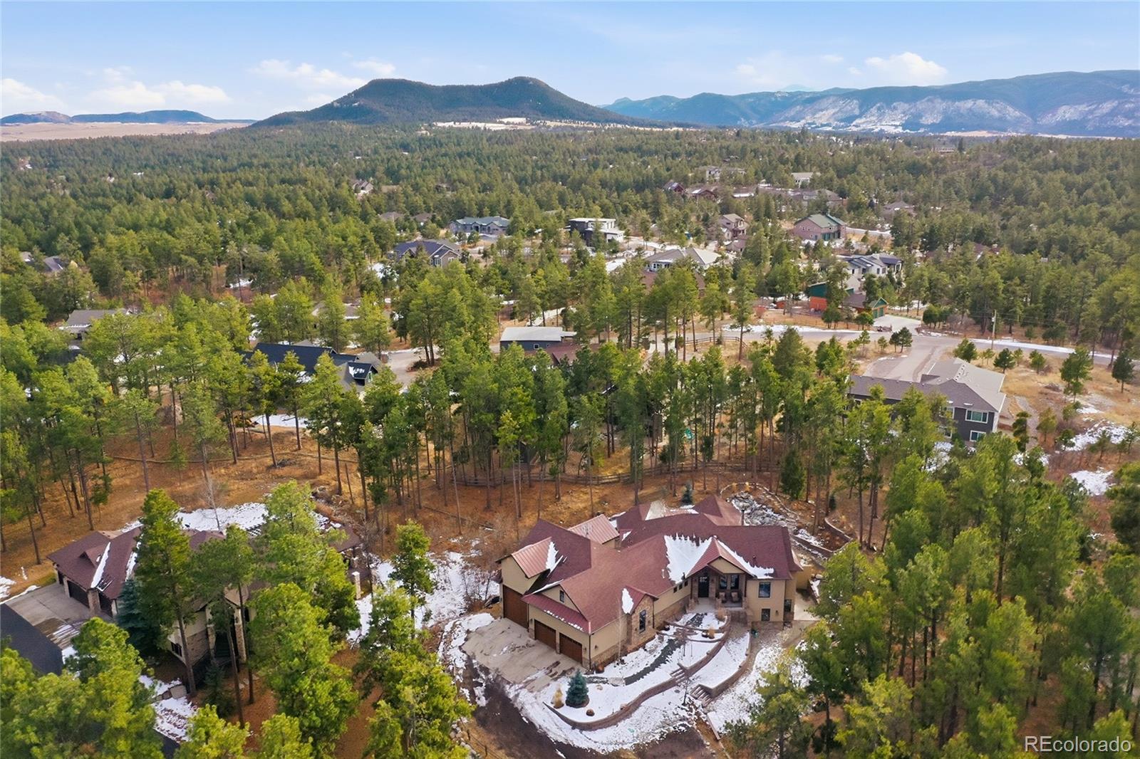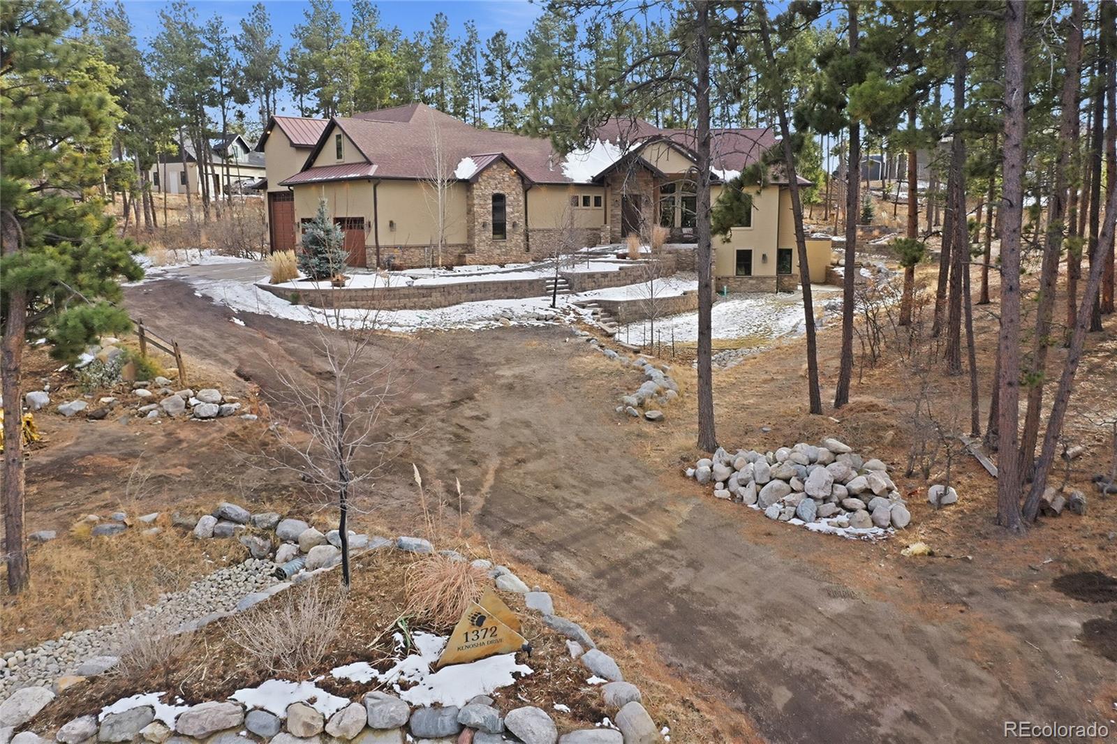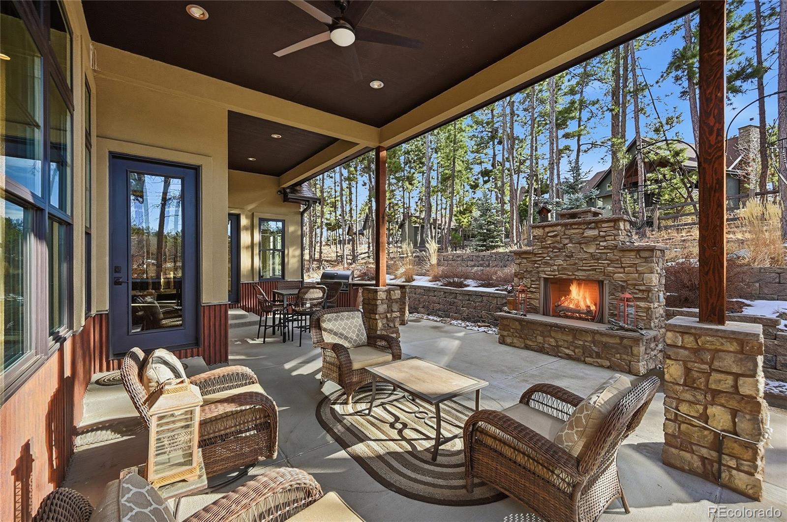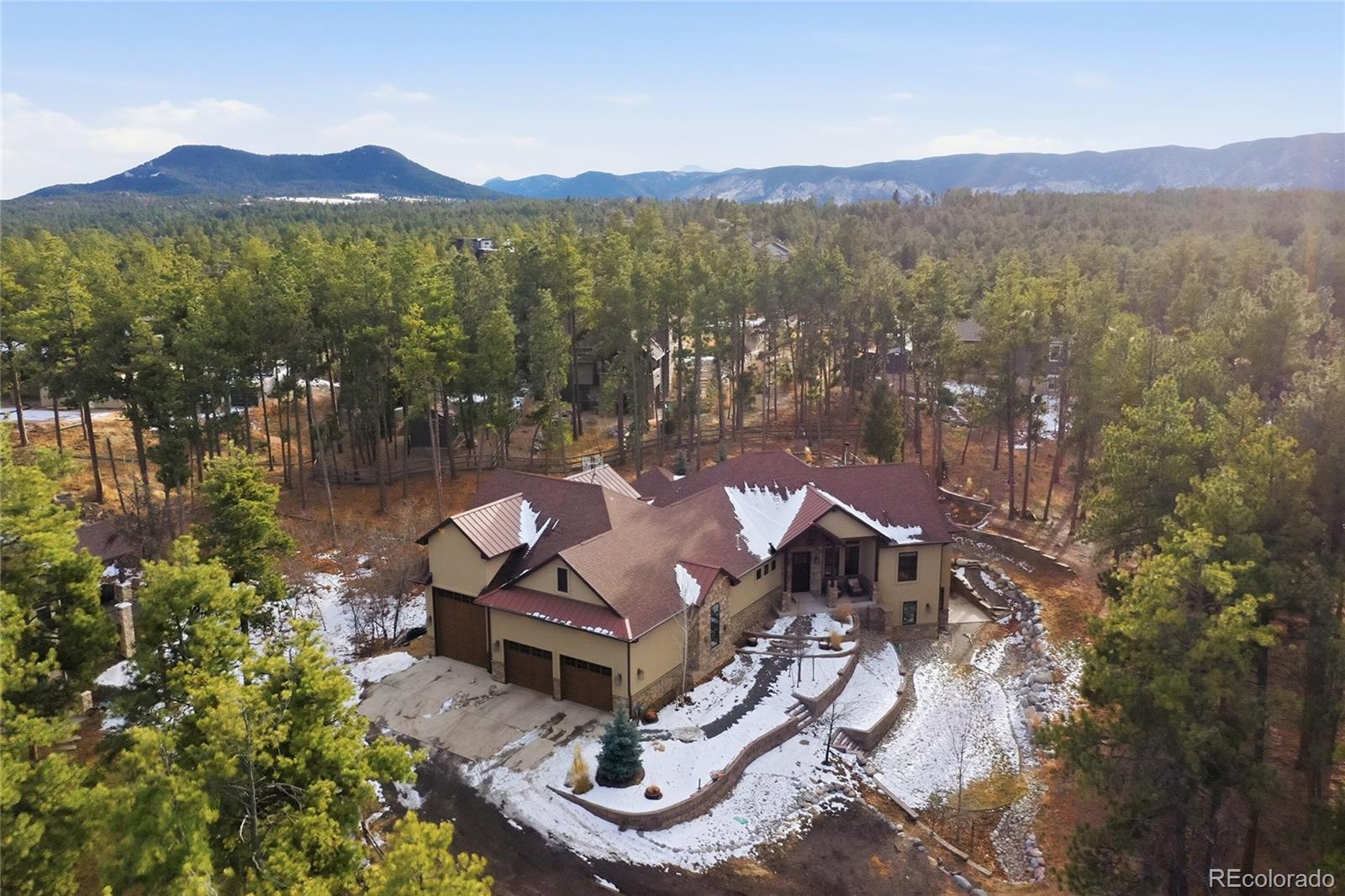 A must see nestled on nearly an acre in the picturesque mountain community of Larkspur, Colorado. This custom home has it all! From the expansive 6 car garage with RV door and 1/2 bath to the exceptional custom luxury residence offering beautifully finished living space. This home is designed for relaxation, comfort and entertaining. High ceilings, 8 ft doors, Rich knotty alder cabinetry, gas stove, upgraded appliances, large island with "leathered" granite countertops, expansive large-plank wood floors, and a dramatic oversized stone fireplace anchor the inviting main living area, creating a warm yet refined atmosphere throughout the home. The spacious primary suite is a true retreat, featuring private access to the back deck, a generous walk-in closet, and a stunning spa-inspired bathroom with radiant heated flooring. Two additional guest bedrooms share a well-appointed bathroom, offering both convenience and privacy. The fully finished, overly spacious walk-out basement expands the living space with a full bar, fourth bedroom, additional bathroom, and a dedicated office area—perfect for guests, multigenerational living, or working from home. Plus, more storage room than you can fill. Outdoor living is equally impressive, with over $75,000 in professional landscaping transforming the backyard into a private oasis. Enjoy year-round entertaining on the covered back patio with ceiling fan, built-in grill, outdoor fireplace, and hot tub area all while taking in the peaceful Colorado surroundings. This remarkable home seamlessly blends luxury finishes, thoughtful design, and exceptional indoor-outdoor living in one of Larkspur’s most desirable settings. Very close to Bear Dance Golf course