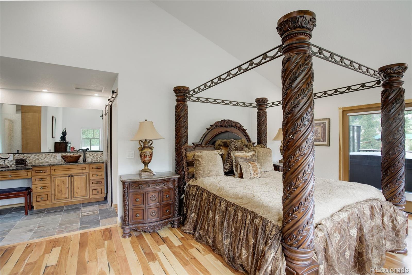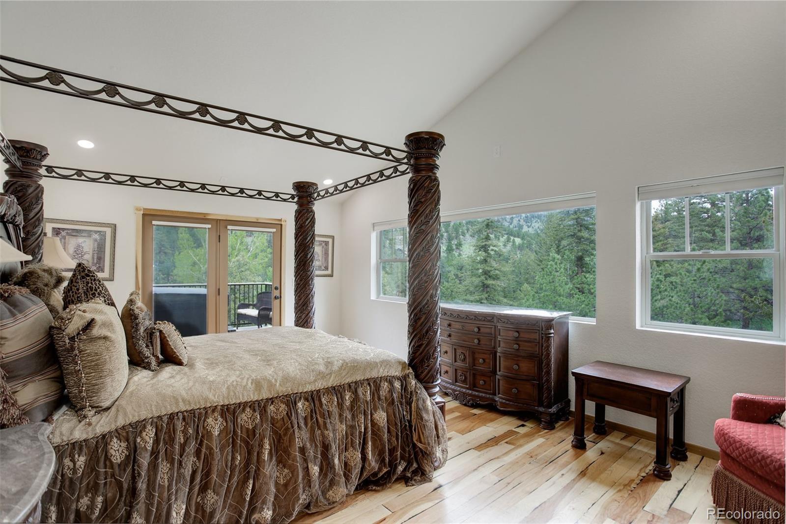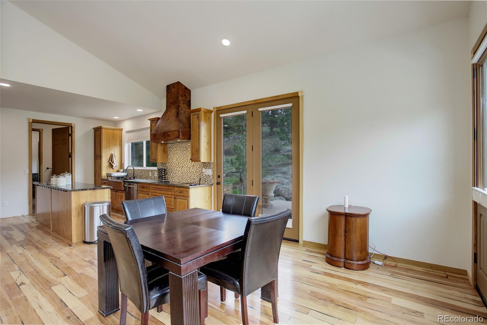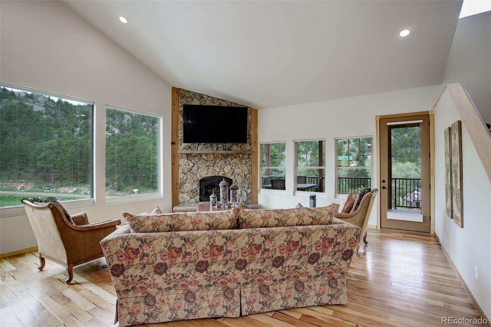 One-of-a-kind waterfront property! Step outside your new construction custom home & fish in the Little Thompson River. Stunning new estate in Pinewood Springs is a true haven, combining unrivaled elegance, seclusion, & exceptional craftsmanship. Set on 1.5 acres, enjoy access to Roosevelt National Forest. Enjoy scenic wildlife encounters & mountain views out every window. Upon entering, your eyes will be drawn to the hickory flooring that extends throughout the home. The gourmet kitchen boasts elegant alder cabinets, a copper hood & sink, dual ovens, & plenty of storage. The open floor plan guides you with effortless flow into the living area, where electronic blinds offer climate control for the windows that provide an abundance of natural light & unbeatable mountain views. Cozy wood fireplace with eye-catching floor-to-ceiling moss rock. Designed for exceptional indoor-outdoor living, the expansive, no-maintenance covered deck offers a private setting for dining & entertaining, all while enjoying the soothing sounds of the flowing river. Upstairs, the secluded primary suite commands tremendous views & features a private patio with a hot tub, the perfect place to savor mountain living at nightfall, gazing at the stars. A sumptuous bath has a generously sized shower, copper sinks, & deep walk-in closet providing plenty of storage space. A secondary bedroom on the main level has deck access & an ensuite bath. Bedroom on the lower level has walk-out access to the river. Oversized garage & south-facing driveway top off the ideal home! Fire-resistant siding offers peace of mind, & you'll love the energy-saving benefits of the solar panels & the passive solar design of the house. A 120 sq ft greenhouse provides the garden hobbyist a nice place to bloom. This luxury retreat is an ideal opportunity for the discerning buyer looking for tranquility & privacy in an ideal location between Estes Park & Lyons, only 35 min from Boulder, 35 min to Longmont, & 45 min to Loveland.