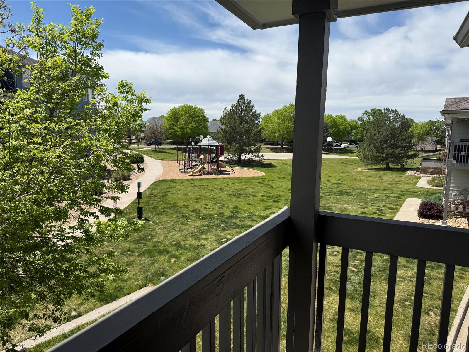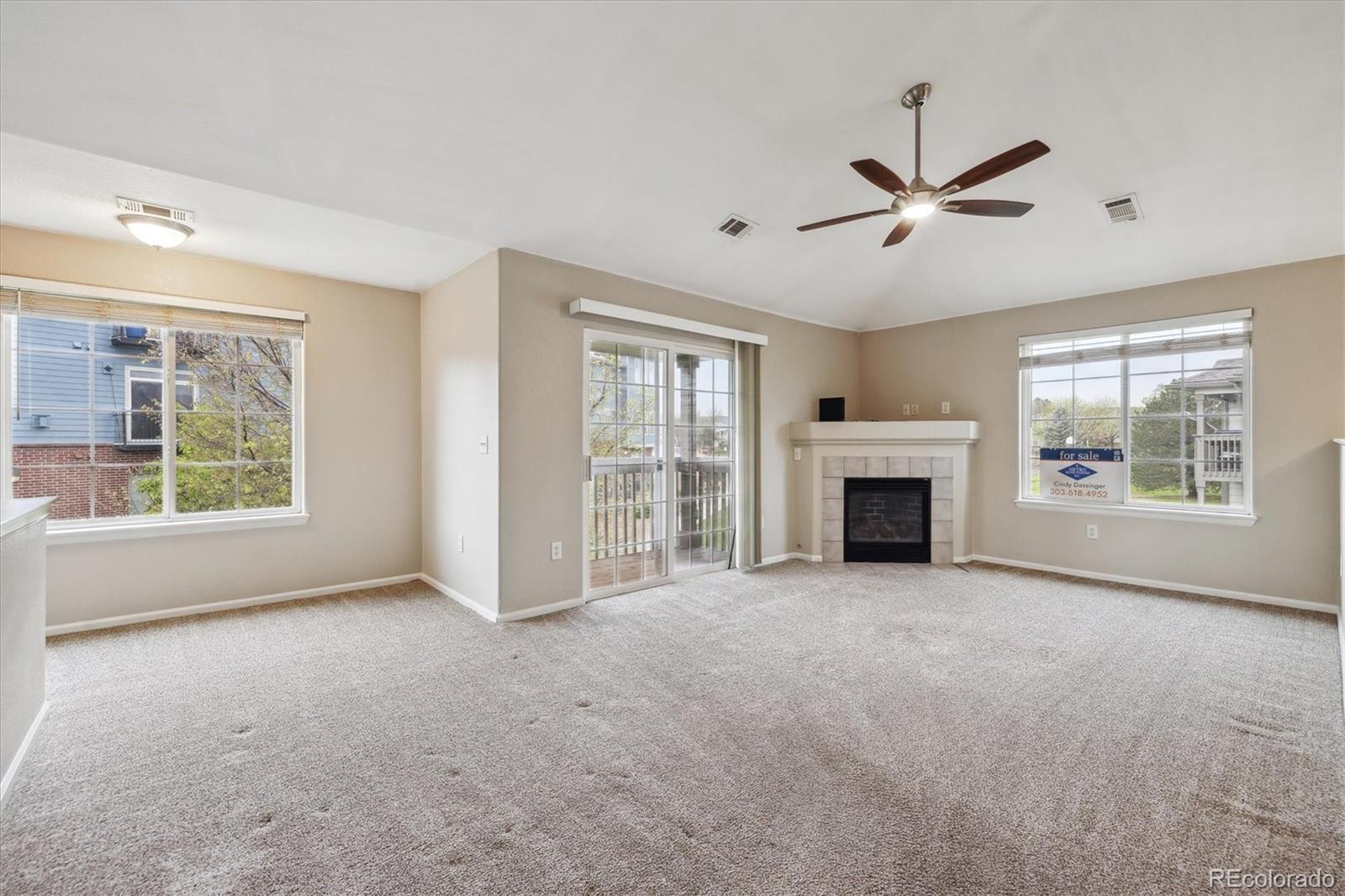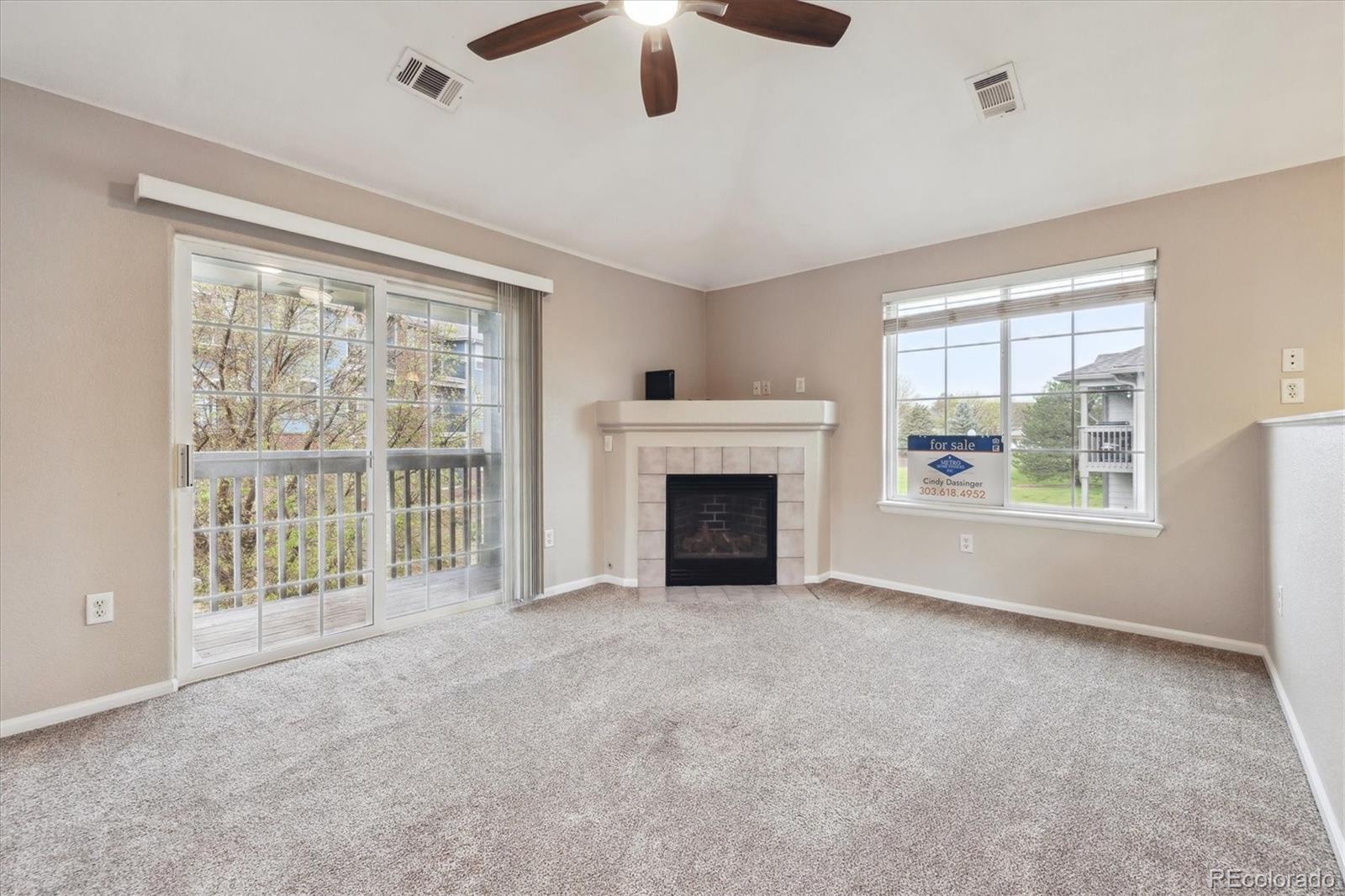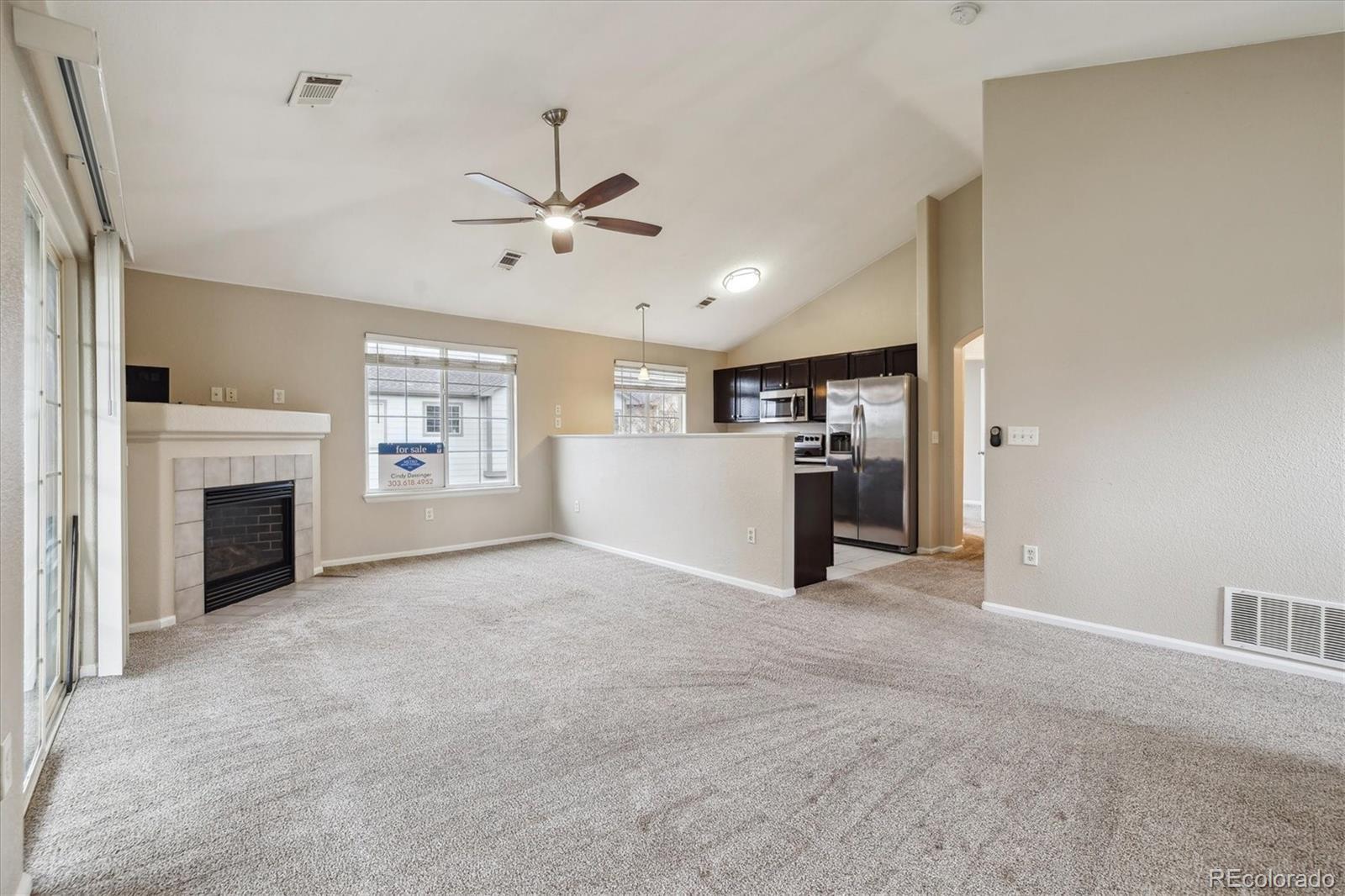 Welcome to this spacious and inviting 1-bedroom condo in a gated community! With 906 sq. ft. of thoughtfully designed living space, this home offers the ideal balance of comfort and functionality. The open layout features vaulted ceilings, a cozy fireplace, and abundant natural light, creating a warm and welcoming atmosphere. The kitchen has stainless steel appliances, ample counter space, and plenty of cabinetry—great for everyday cooking or entertaining. A separate laundry area adds convenience, while the large bedroom easily fits a king-size bed and includes a walk-in closet. Working from home? There’s plenty of room in the open-concept living and dining area to create a dedicated workspace without sacrificing comfort. Step out to your private balcony and enjoy serene views overlooking the grassy community park and basketball court. Additional features include central A/C, a refinished tub and tile, an attached 1-car garage, and an additional reserved parking space. This well-kept community offers fantastic amenities—clubhouse, fitness center, pool, and hot tub—plus an unbeatable location. You’re just minutes from the light rail, shopping, dining, and parks, with Riverdale Open Space and Carpenter Recreation Center nearby for outdoor adventures.Don’t miss this opportunity to own a home that combines space, convenience, and value in one of Thornton’s most desirable neighborhoods!