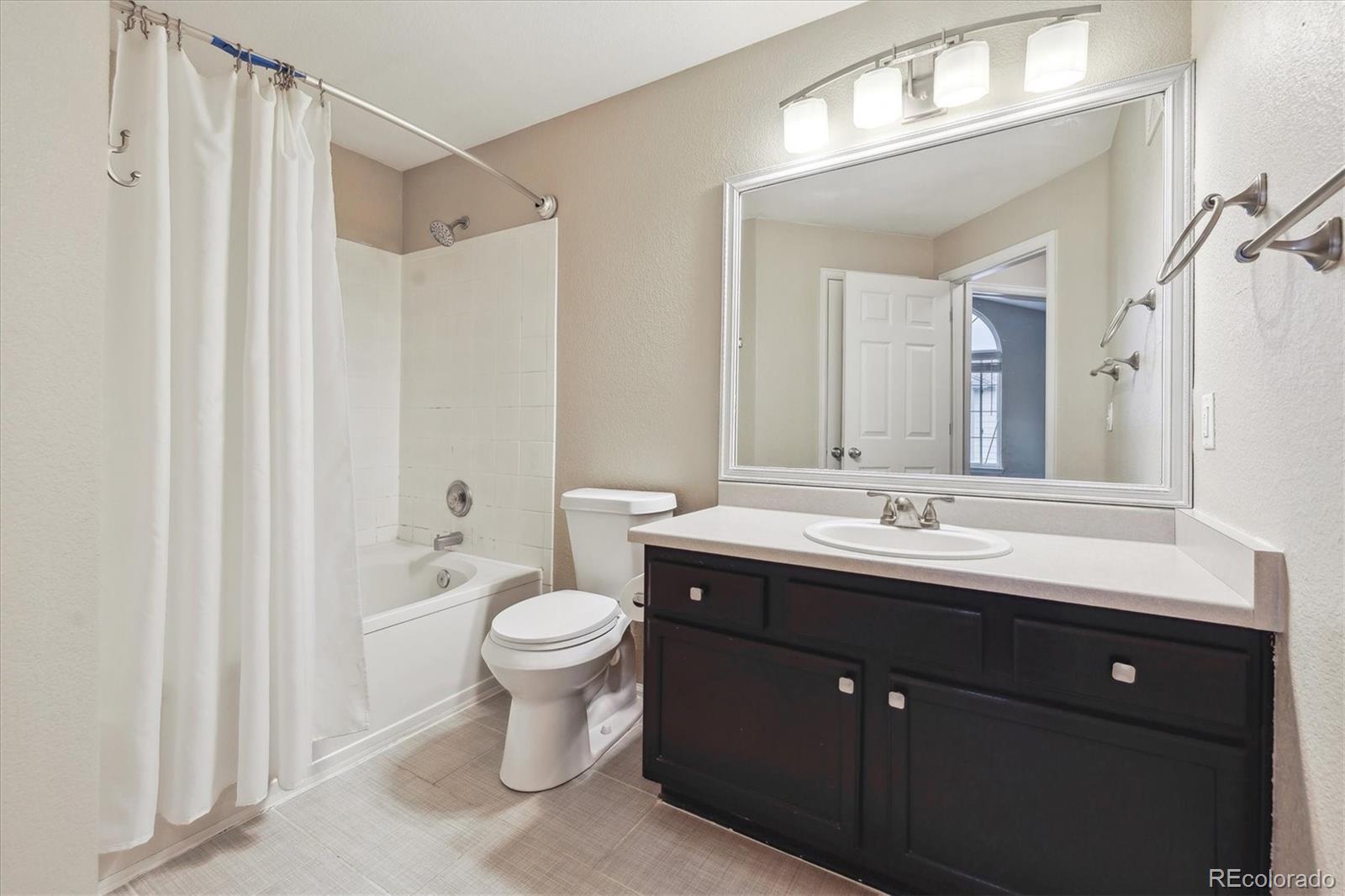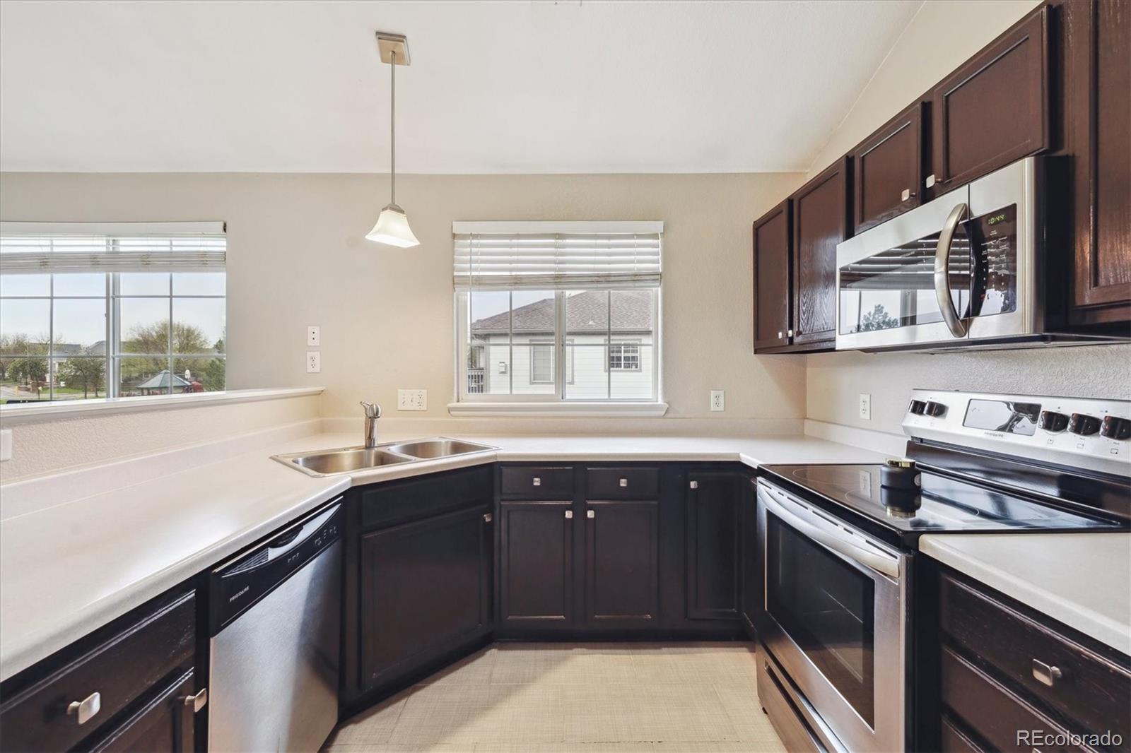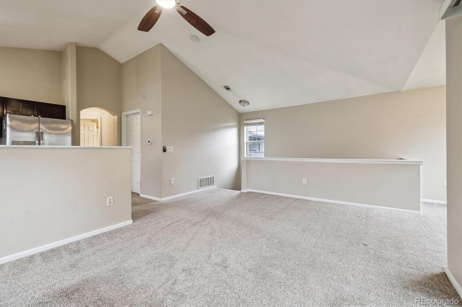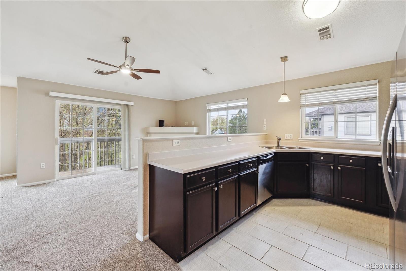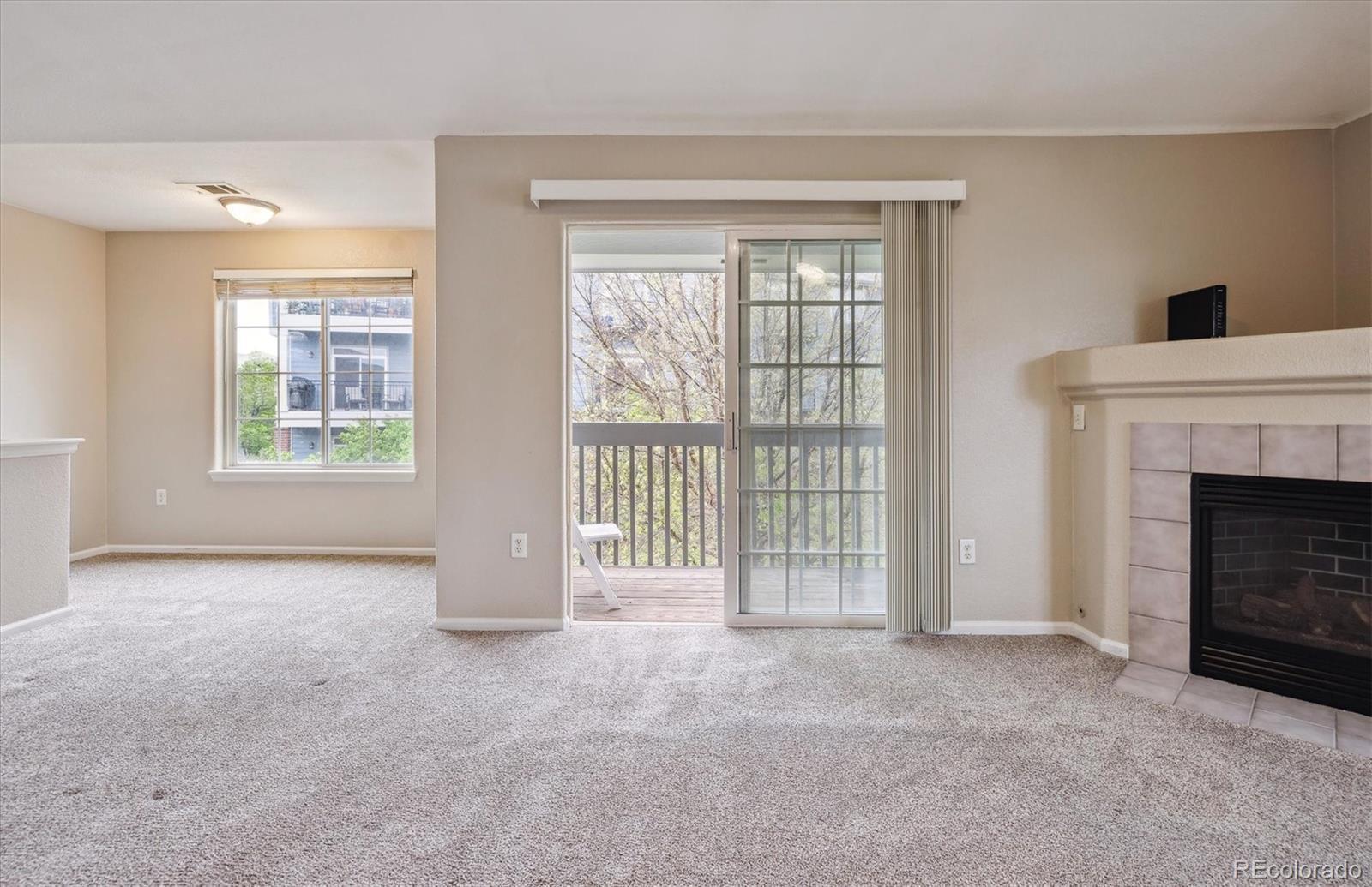 Welcome to this spacious and inviting 1-bedroom condo in a gated community! With 906 sq. ft. of thoughtfully designed living space, this home offers the ideal balance of comfort and functionality. The open layout features vaulted ceilings, a cozy fireplace, and abundant natural light, creating a warm and welcoming atmosphere. The kitchen has stainless steel appliances, ample counter space, and plenty of cabinetry—great for everyday cooking or entertaining. A separate laundry area adds convenience, while the large bedroom easily fits a king-size bed and includes a walk-in closet. Working from home? There’s plenty of room in the open-concept living and dining area to create a dedicated workspace without sacrificing comfort. Step out to your private balcony and enjoy serene views overlooking the grassy community park and basketball court. Additional features include central A/C, a refinished tub and tile, an attached 1-car garage, and an additional reserved parking space. This well-kept community offers fantastic amenities—clubhouse, fitness center, pool, and hot tub—plus an unbeatable location. You’re just minutes from the light rail, shopping, dining, and parks, with Riverdale Open Space and Carpenter Recreation Center nearby for outdoor adventures.Don’t miss this opportunity to own a home that combines space, convenience, and value in one of Thornton’s most desirable neighborhoods!