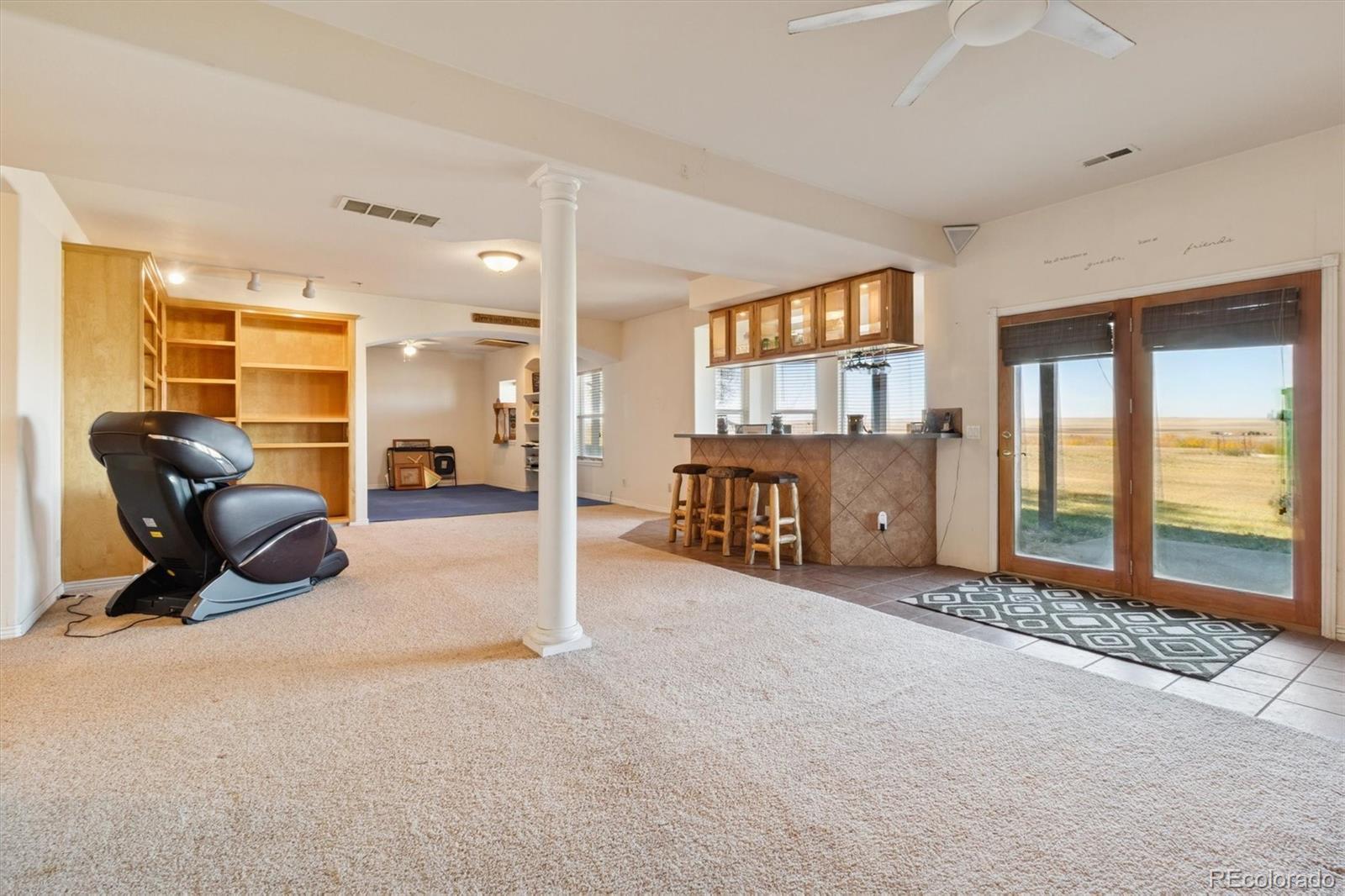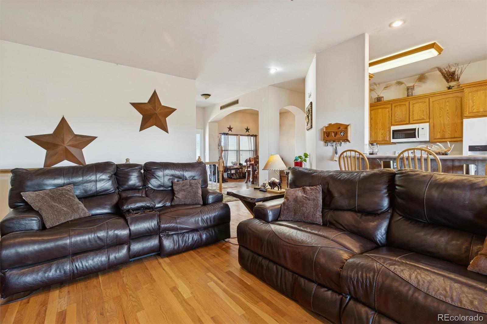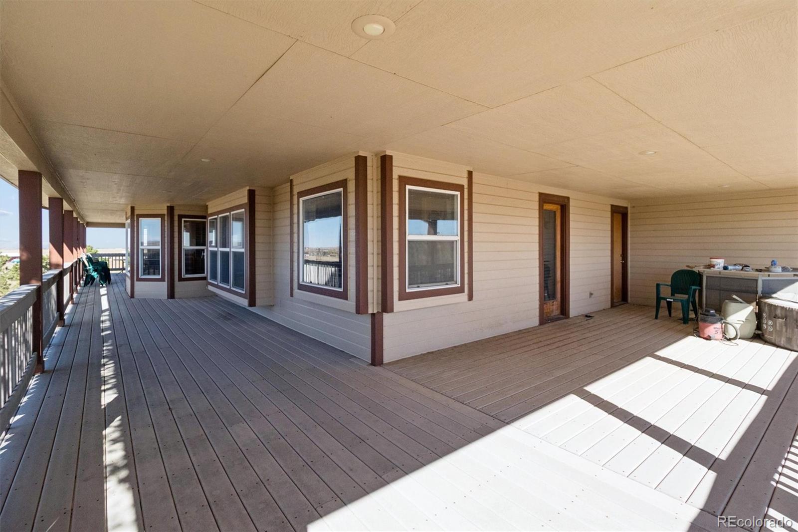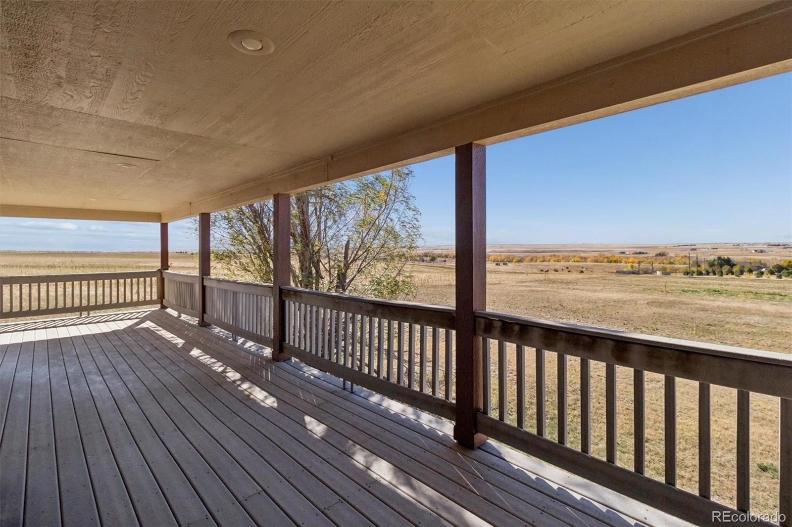 Welcome to the country life! This lovely, open floorplan home has hardwood floors throughout the main level living areas and in the primary suite with 12' high ceilings and TONS of windows that really bring the beauty of the country inside. Situated on almost 35 acres with NO HOA, the opportunities are endless - bring your livestock, horses, toys, you name it! This ranch home with a fully finished walkout basement has plenty of room for everybody. There are 3 bedrooms and 2 bathrooms on the main level plus your large kitchen with eat-in dining area and island with built-in seating, the main living room with a pellet stove fireplace, as well as a beautiful formal dining room and spacious office with a custom, built-in desk. In the basement, you will find another bedroom and a full bathroom with a steam-sauna shower that has audio controls for music, as well as a bar with kitchenette, another pellet stove fireplace and a workout area/flex space waiting for your enjoyment. Step outside onto the HUGE wrap-around Trex deck from the kitchen or the primary bedroom and enjoy the mountain views! The basement also has a walk-out entrance, which could be a great multi-generational living option, if needed. There is plenty of space for storage in the basement maintenance closet/storage closet plus an oversized 3-car garage that is drywalled and insulated! With a recently new roof (Class 4, hail resistant shingles), new septic lids, new well pump, newer hot water tank and 1,000 gallon propane tank that is owned outright, this property is move-in ready and waiting for its new owners. Don't miss this lovely country gem - schedule your showing today!