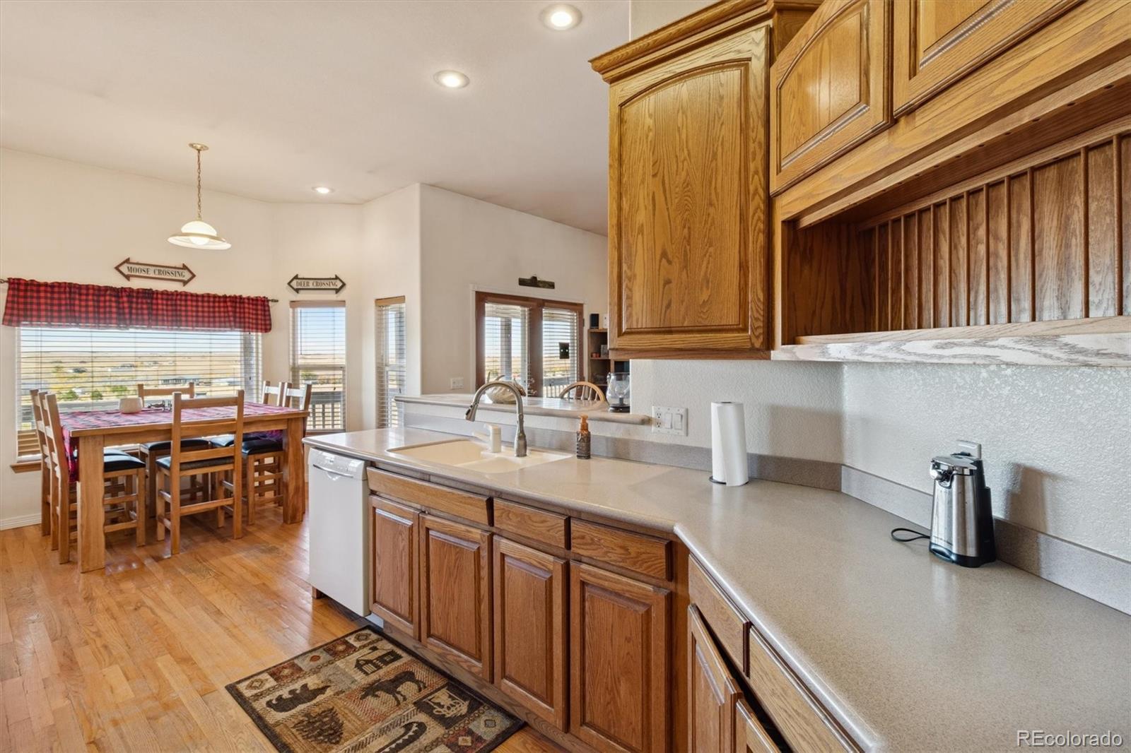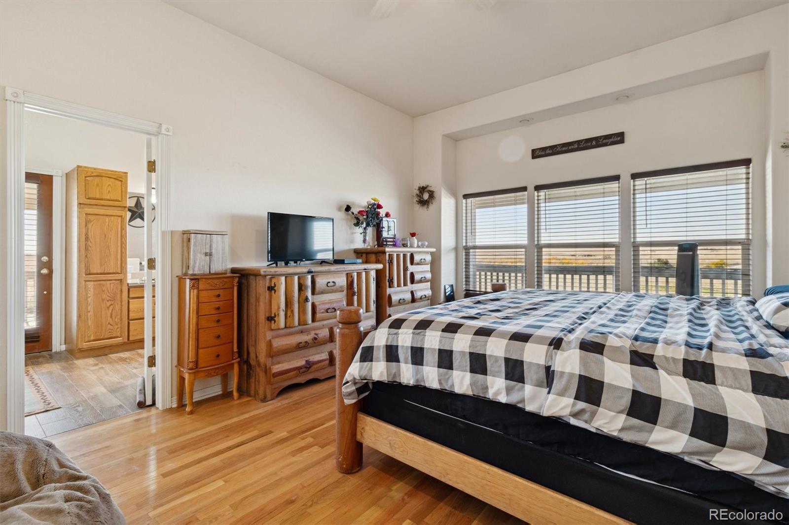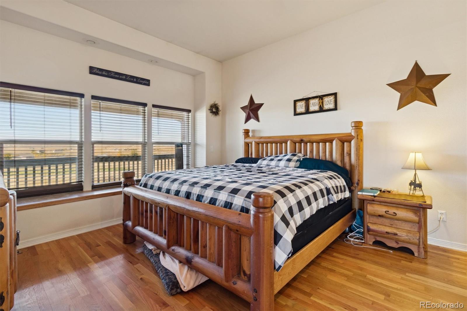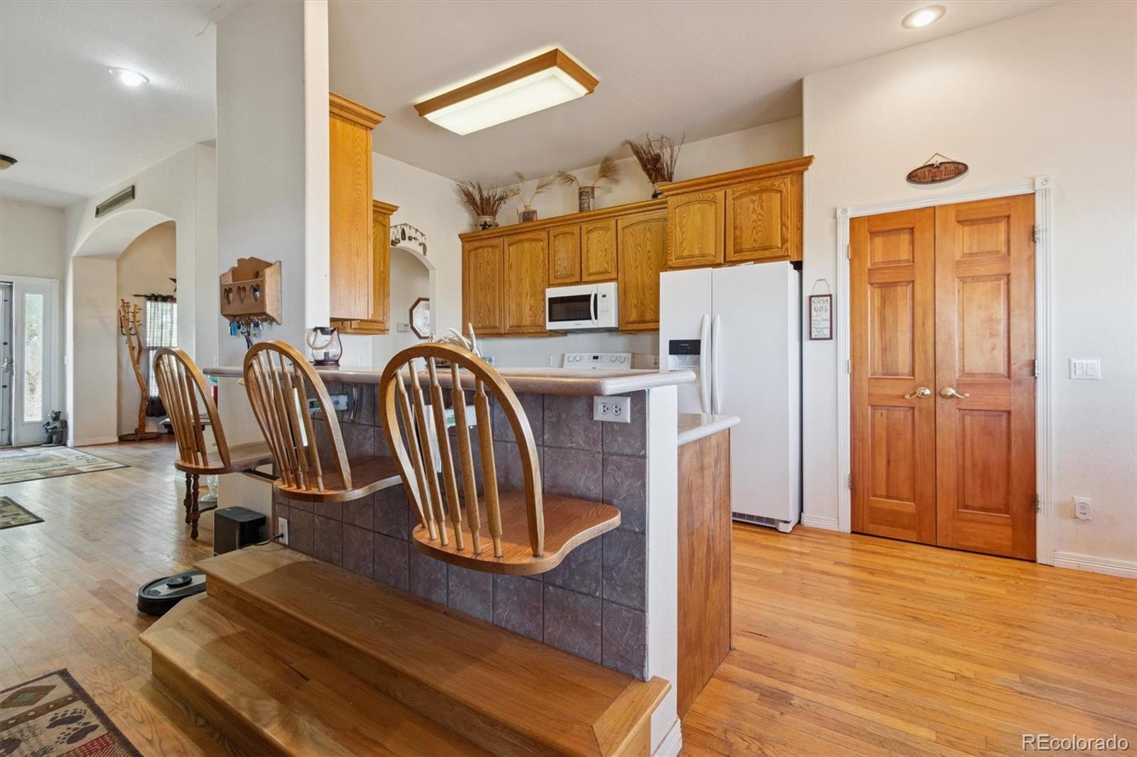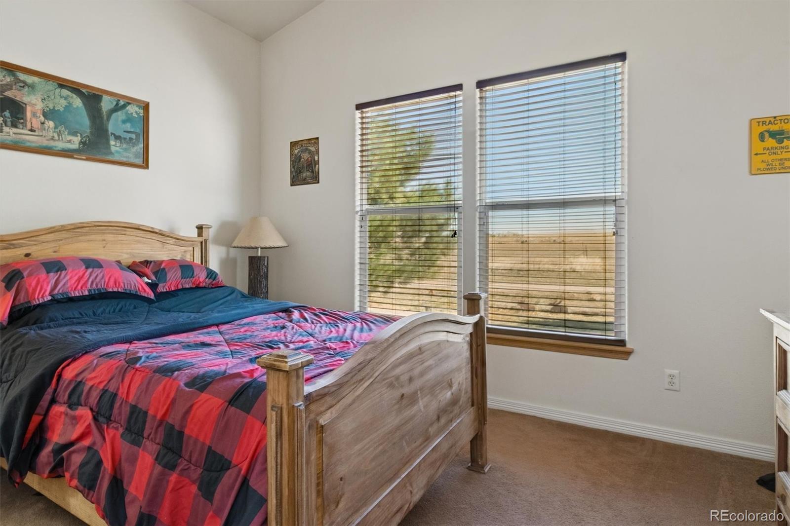 Welcome to the country life! This lovely, open floorplan home has hardwood floors throughout the main level living areas and in the primary suite with 12' high ceilings and TONS of windows that really bring the beauty of the country inside. Situated on almost 35 acres with NO HOA, the opportunities are endless - bring your livestock, horses, toys, you name it! This ranch home with a fully finished walkout basement has plenty of room for everybody. There are 3 bedrooms and 2 bathrooms on the main level plus your large kitchen with eat-in dining area and island with built-in seating, the main living room with a pellet stove fireplace, as well as a beautiful formal dining room and spacious office with a custom, built-in desk. In the basement, you will find another bedroom and a full bathroom with a steam-sauna shower that has audio controls for music, as well as a bar with kitchenette, another pellet stove fireplace and a workout area/flex space waiting for your enjoyment. Step outside onto the HUGE wrap-around Trex deck from the kitchen or the primary bedroom and enjoy the mountain views! The basement also has a walk-out entrance, which could be a great multi-generational living option, if needed. There is plenty of space for storage in the basement maintenance closet/storage closet plus an oversized 3-car garage that is drywalled and insulated! With a recently new roof (Class 4, hail resistant shingles), new septic lids, new well pump, newer hot water tank and 1,000 gallon propane tank that is owned outright, this property is move-in ready and waiting for its new owners. Don't miss this lovely country gem - schedule your showing today!