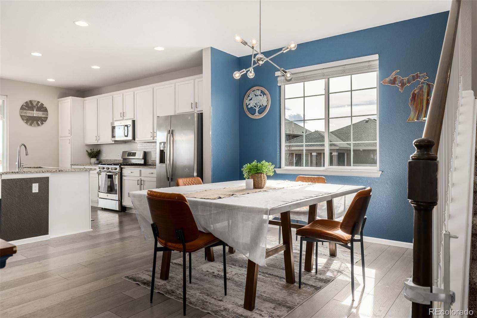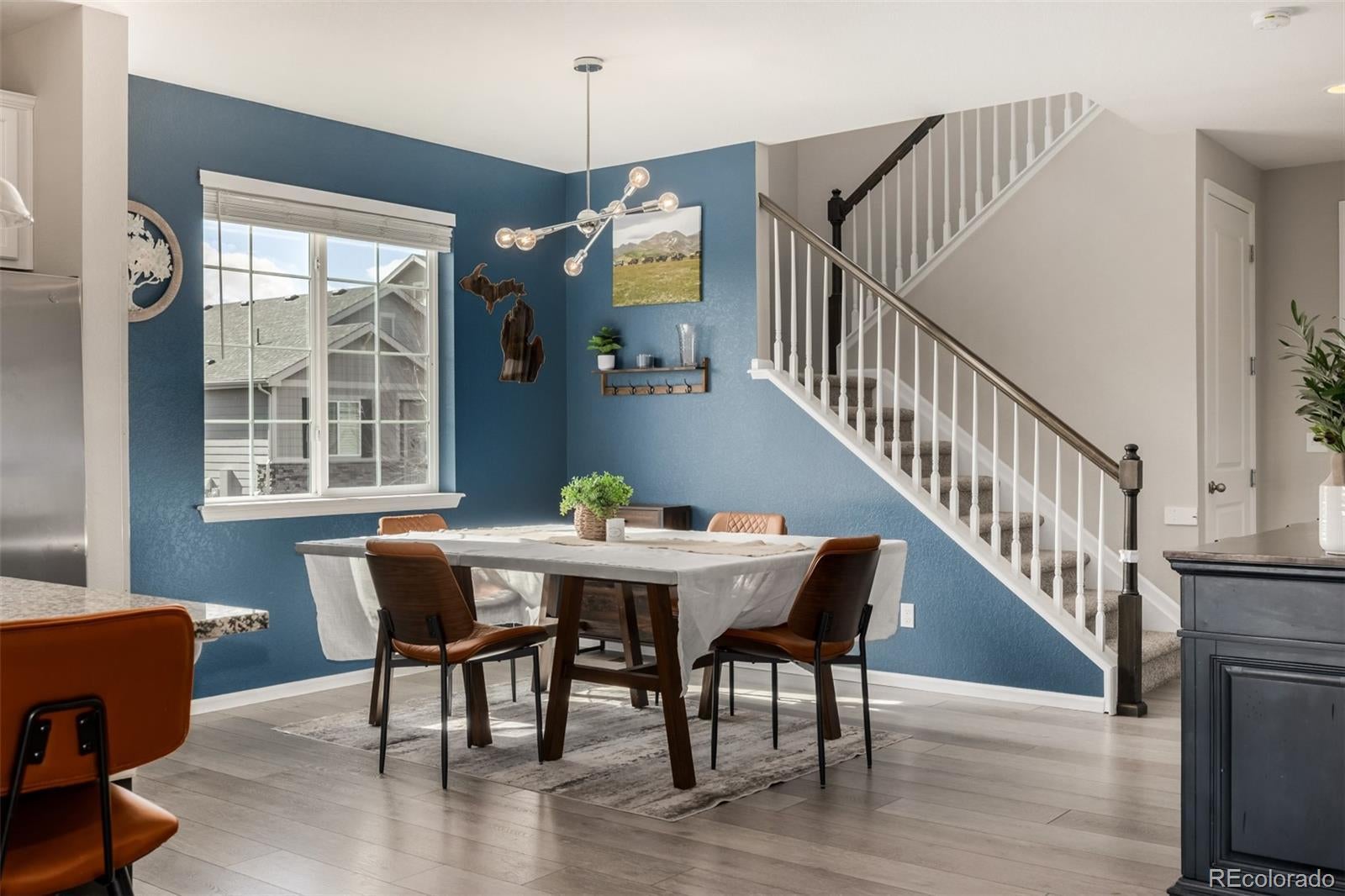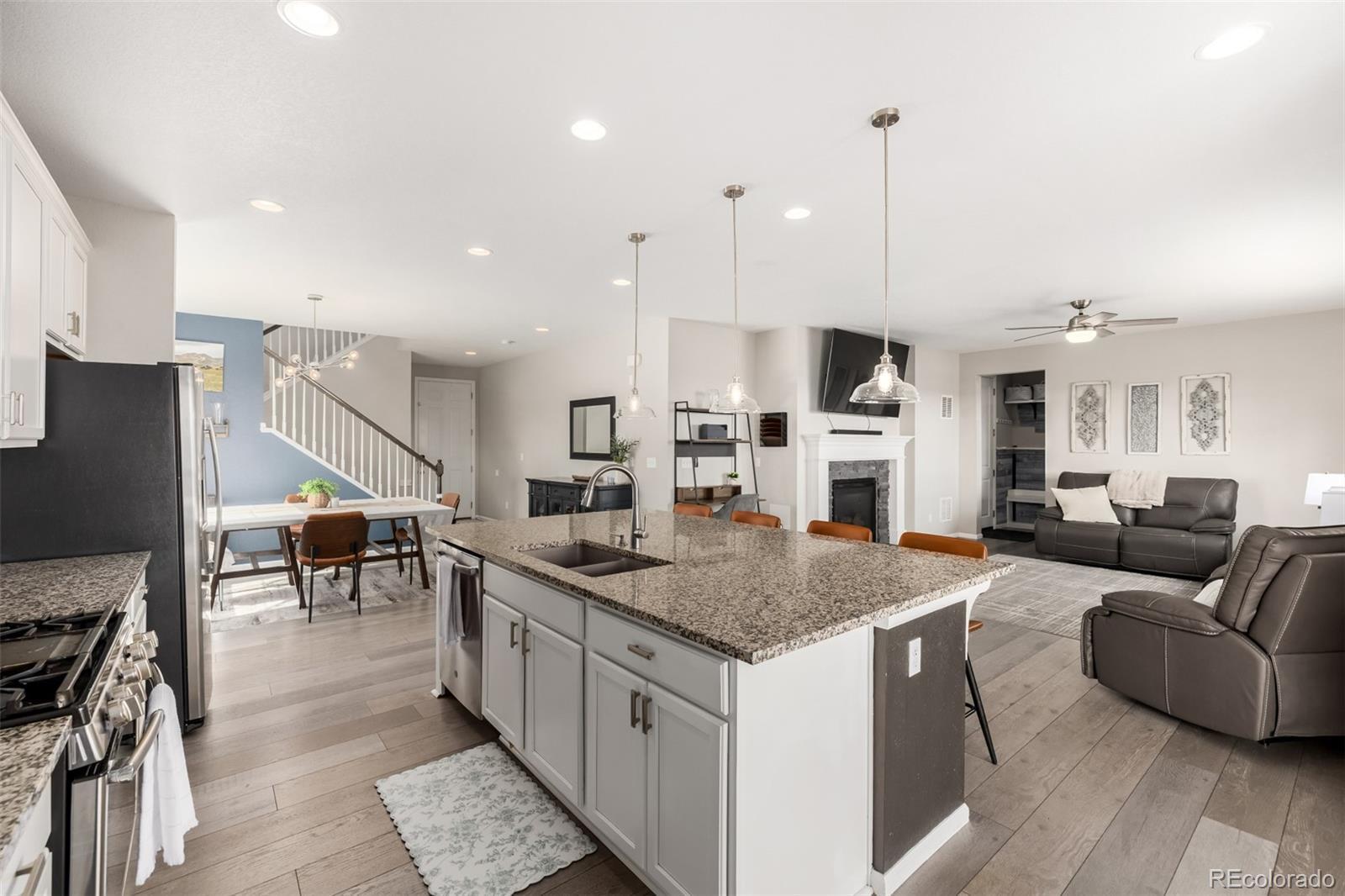 This welcoming residence carries a quiet confidence that feels both grounded and thoughtfully elevated. Set on a charming corner lot, gentle appeal draws the eye toward a covered front porch that invites slow moments watching the neighborhood move by. The home flows directly into the main living spaces, creating an immediate feeling of connection and warmth. The dining room sits comfortably alongside the kitchen and is filled with natural light. A sputnik style light fixture adds a note of personality + modern edge. The kitchen is timeless with white cabinetry, stainless appliances, elegant pendant lighting, undermount sink, and recessed lighting. The living area is spacious and bright, anchored by a iconic fireplace that naturally gathers the space. Upstairs, newly installed carpet brings a fresh comfortable feel to the private spaces. A dedicated laundry adds everyday convenience, while a flexible loft offers versatility. The primary suite is generous and light, with an inviting ensuite bath featuring spa-inspired finishes including an oversized shower, dual sinks, and a beautifully arranged walk-in closet. Two charming additional upper-level bedrooms are well proportioned. The fully finished walkout basement expands the home in a meaningful way. With a private entrance, full second kitchen, living area, bedroom + bath, and dedicated laundry, the lower level is ideal for multigenerational living or flexible rental potential. A beautifully enclosed sunroom sits just off the kitchen and opens directly to the backyard, creating indoor/outdoor connection. A covered back deck offers a shaded perch to enjoy Colorado sunshine throughout the seasons. The backyard itself is quiet and nicely landscaped, offering room to relax or entertain alike. With a 2-car attached garage and a layout designed to adapt to many chapters of life, this residence blends traditional warmth with modern livability in a way that feels both intentional and enduring.