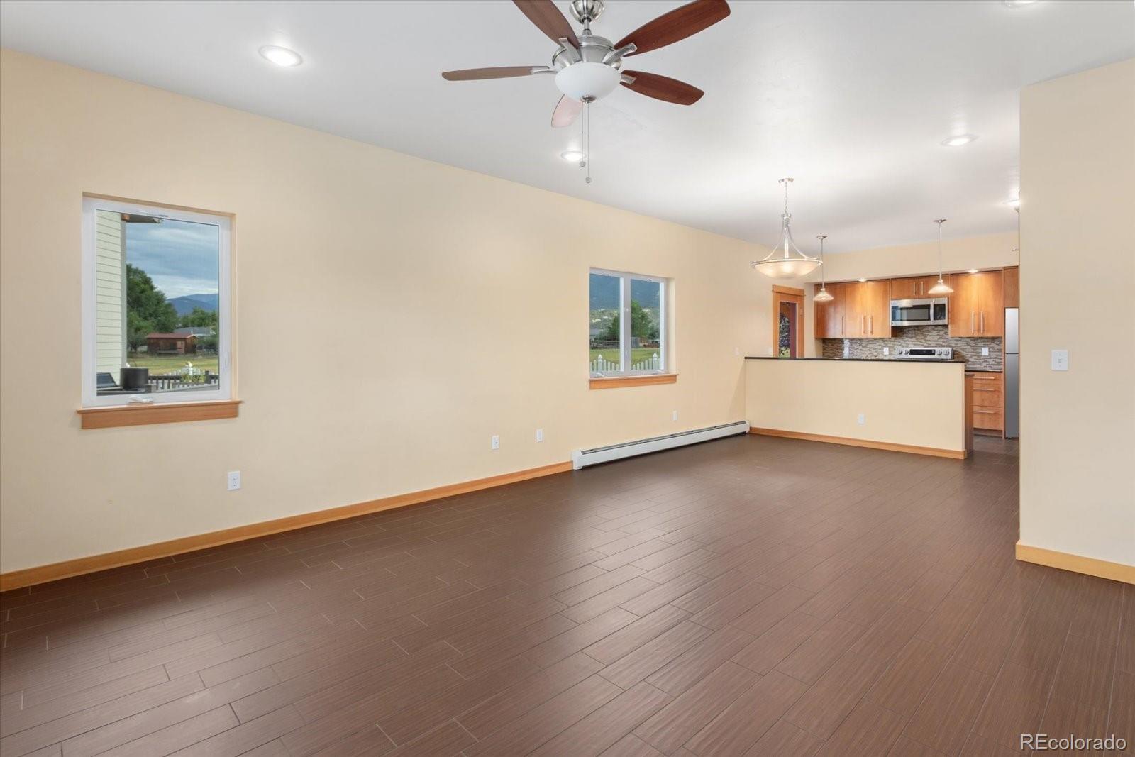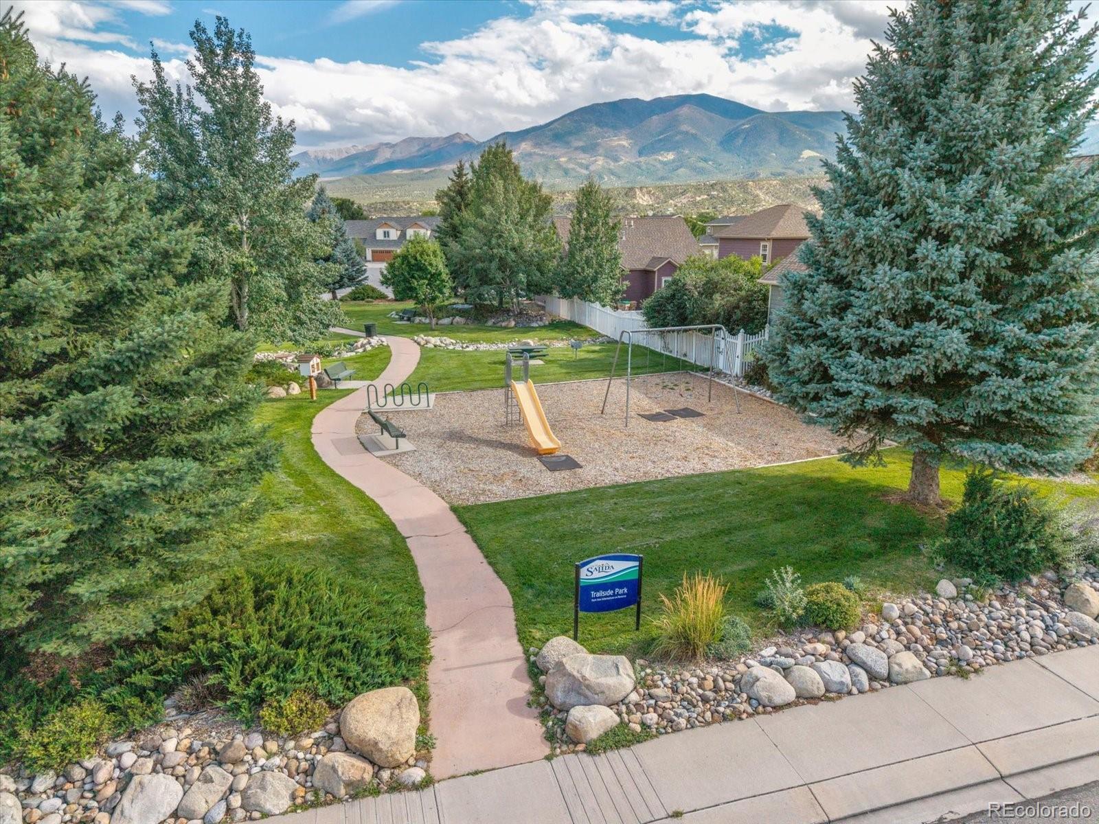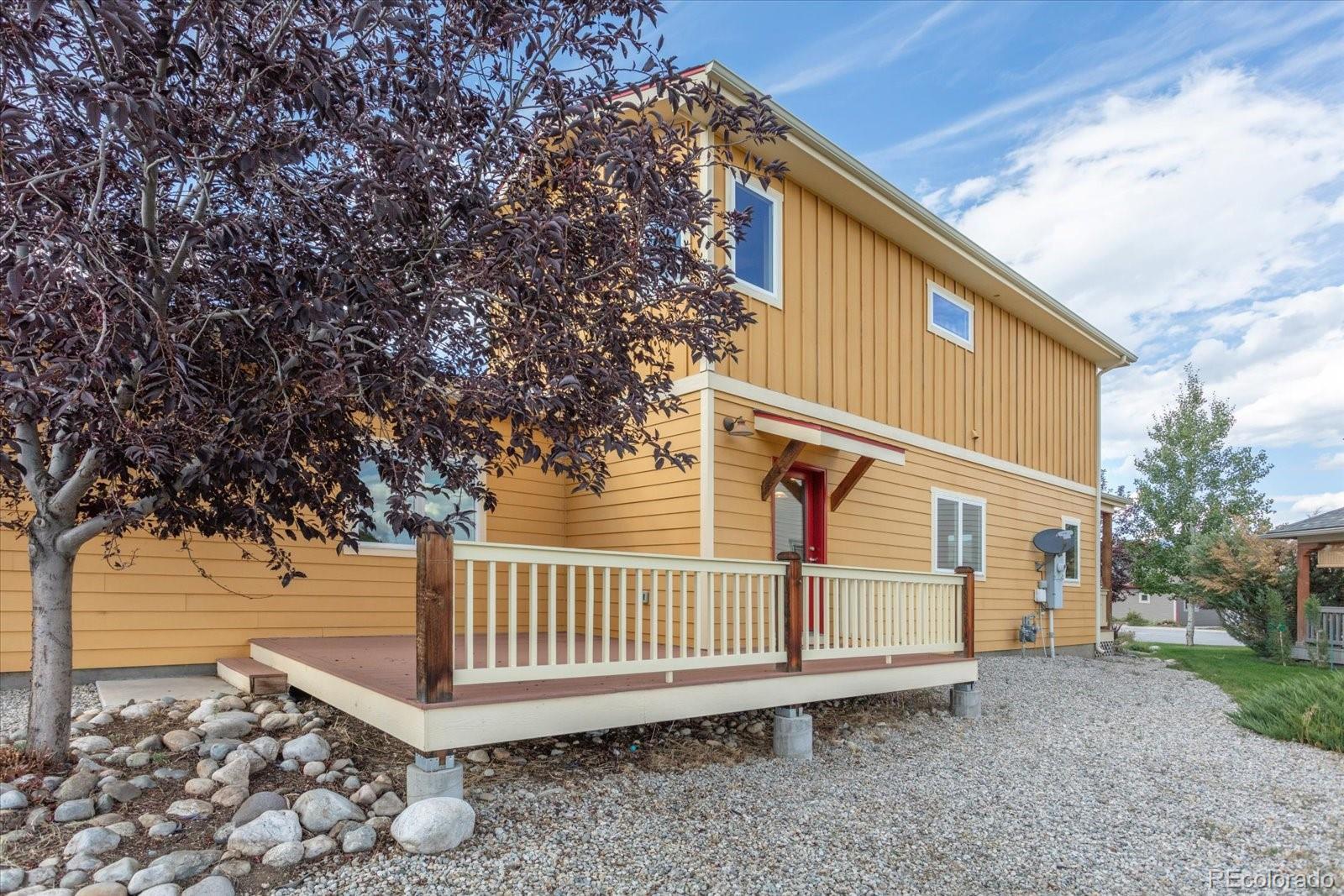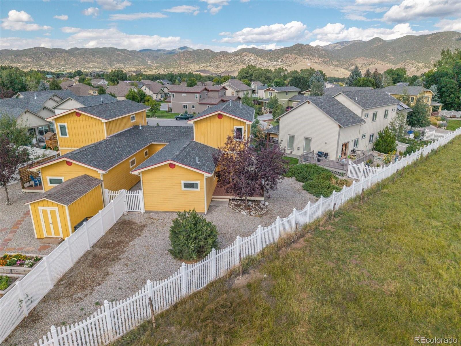 This charming 2014 Craftsman-style townhome is nestled on a tranquil cul-de-sac, offering stunning views of the surrounding mountains and meadows. With 3 bedrooms, 2.5 bathrooms, and a spacious 1,750 square feet of living space, this home is designed for comfort and convenience. The main-level primary suite provides easy accessibility and includes a walk-in closet and a full private bathroom. The open-concept main floor features a beautifully appointed kitchen with quartz countertops, a glass tile backsplash, a generous pantry, and dining area. A patio door from the kitchen leads to a private back deck, perfect for relaxing or entertaining, with breathtaking views of the Sangre de Cristo Mountains to the south. The main level also boasts a mudroom off the garage, ideal for keeping things organized and clean. Upstairs, you'll find two generously sized bedrooms, a full bathroom, and a convenient laundry room. The back bedroom enjoys southeast-facing windows, while the front bedroom benefits from northwest-facing views. Additional highlights include an in-house water filtration system, a new tankless hot water boiler (installed in 2023), and an attached one-car garage with space for two additional cars in the driveway. The home also features a low-maintenance, xeriscaped yard and Trex deck, providing an ideal outdoor space to enjoy the surrounding natural beauty. Enjoy easy access to the neighborhood park, the Monarch Spur Trail, and the quiet, friendly neighborhood, all just minutes from downtown.