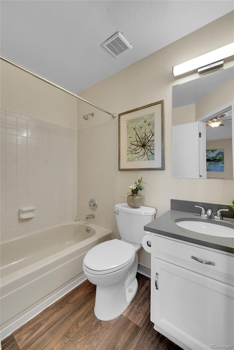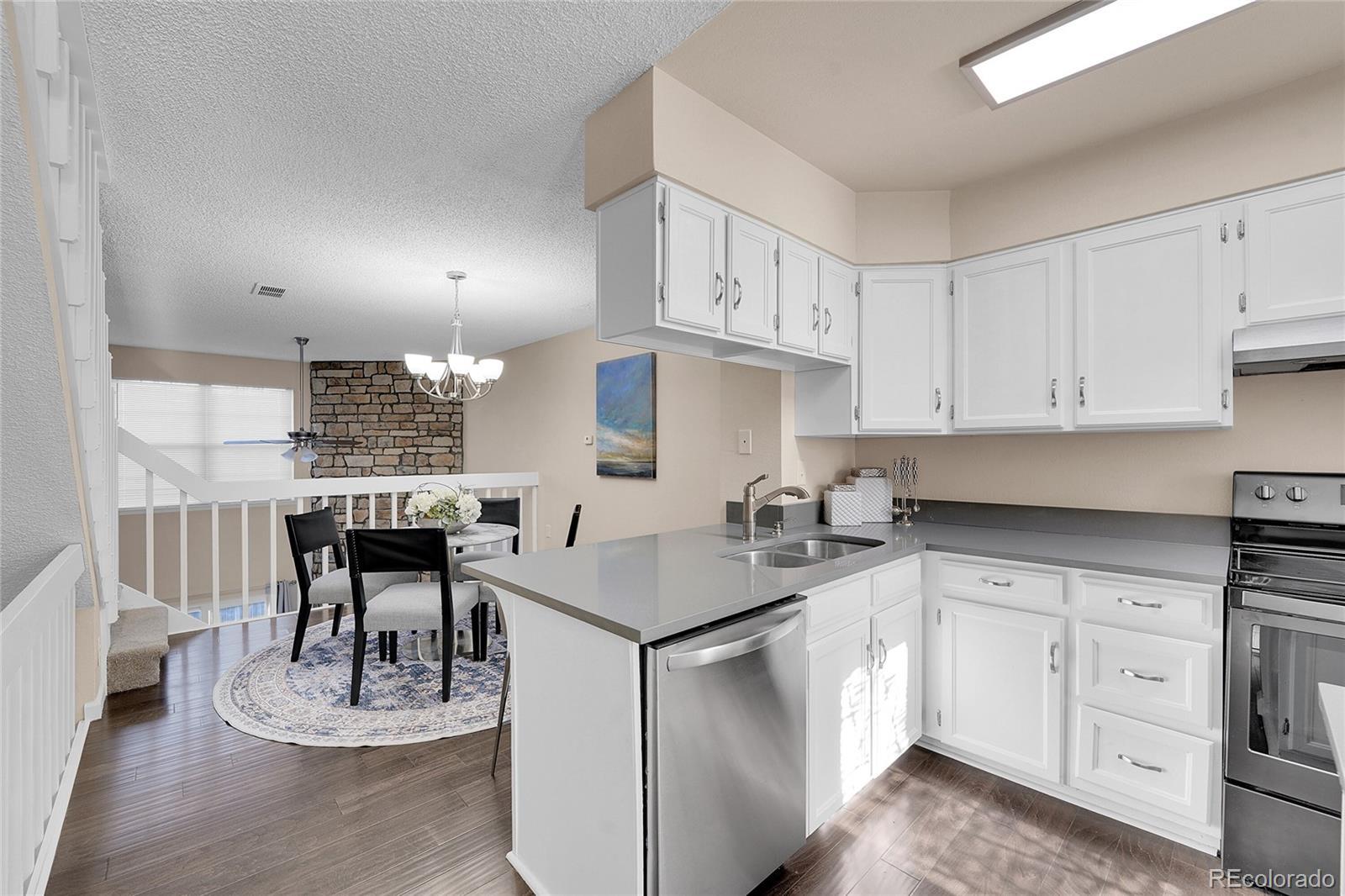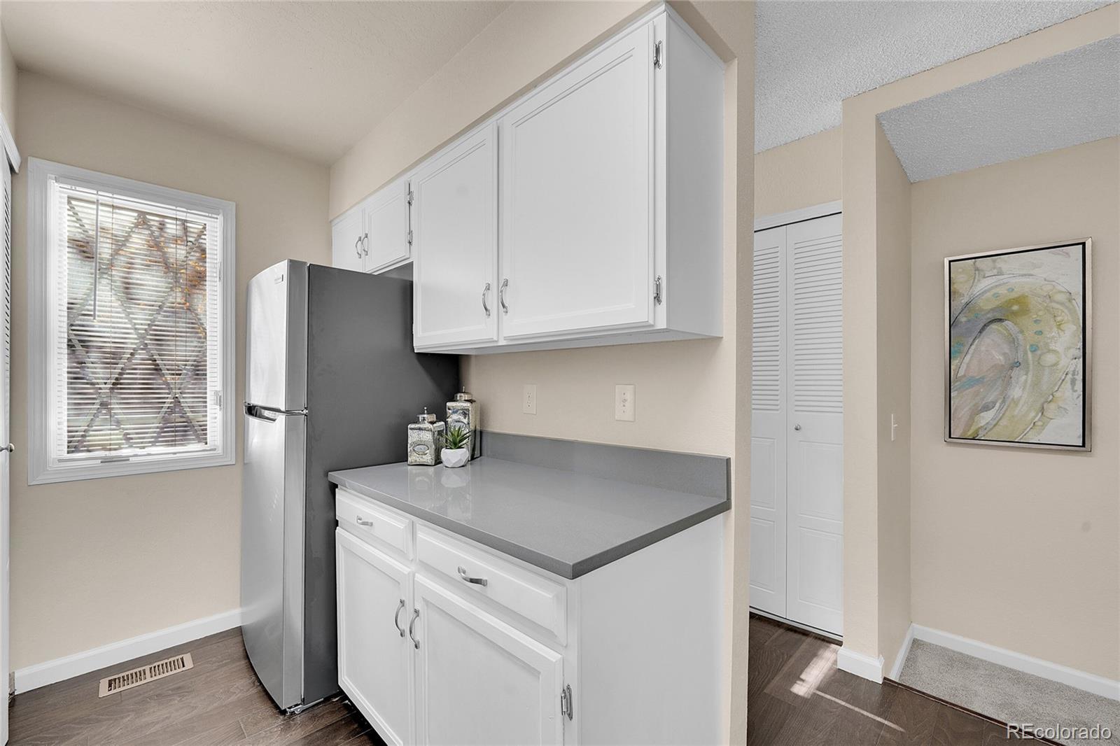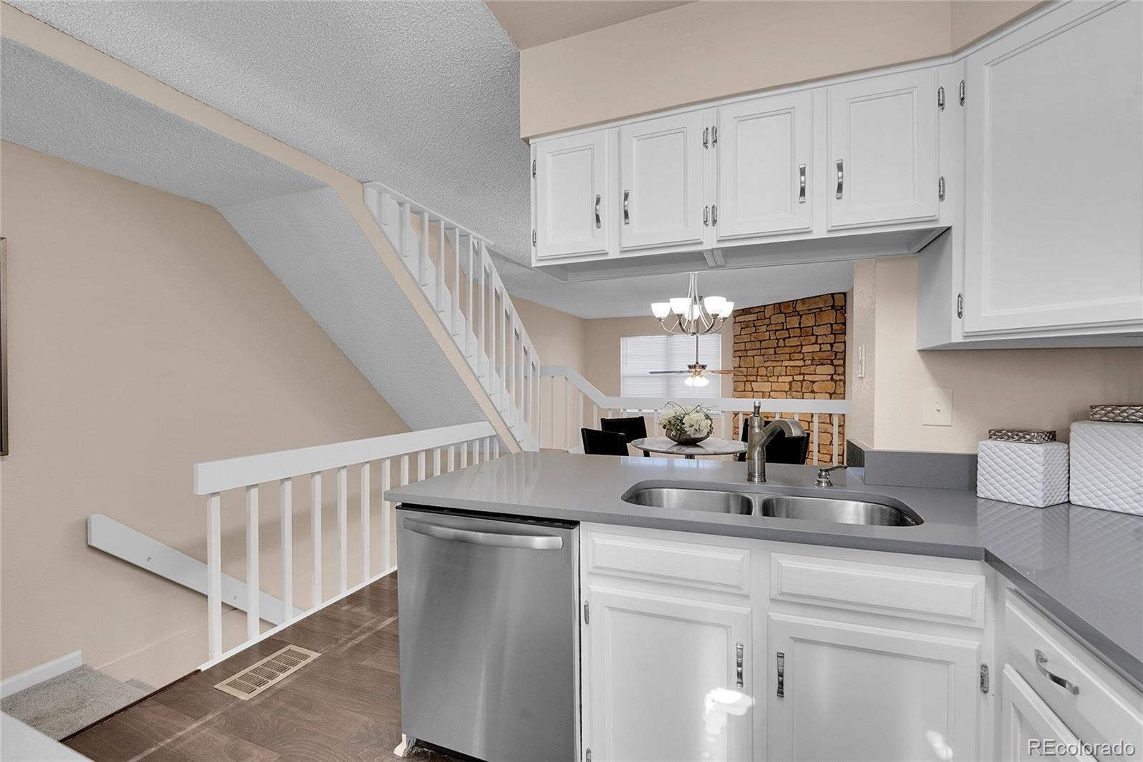 Move-In Ready Townhome in Highland View! Beautifully Staged and Easy To Show! South Facing. Two Reserved Parking Spaces directly in front of the unit. Cozy fenced patio for pets. Direct access to large open space behind the unit. Updates include Furnace and AC only 1 year old, newer windows and sliding door, brand new carpet and complete interior paint, quartz countertops. Great location near C470, RTD Light Rail, Shopping and Dining. Quick possession available.