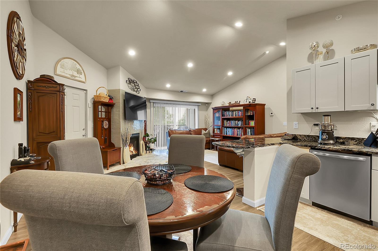 Welcome home to this spacious 3-bedroom, 2-bathroom condo offering the perfect blend of comfort, style, and convenience in the heart of Denver. Step inside to an open-concept layout filled with natural light, where the living room is centered around a cozy gas fireplace—ideal for both relaxing evenings and entertaining guests. The modern kitchen features stainless steel appliances, granite countertops, a large peninsula with bar seating, and plenty of cabinet space, seamlessly connecting to the dining area for easy gatherings.The private primary suite offers a walk-in closet and ensuite bathroom, while two additional bedrooms and a full bathroom provide versatility for family, guests, or a home office. An in-unit laundry room with extra storage adds everyday functionality.Enjoy Colorado living from the covered patio, complete with a storage closet. Two dedicated parking spaces and ample visitor parking ensure convenience for you and your guests.Perfectly located just minutes from Downtown Denver, 30 minutes from DIA, and with quick access to I-25 and I-70, this condo keeps you close to shopping, dining, trails, and everything the Metro area has to offer. Rentals with a 30-day minimum are permitted, making this home an excellent choice for both homeowners and investors. Move-in ready and thoughtfully designed, this condo combines low-maintenance living with a prime location—don’t miss the opportunity to make it yours!