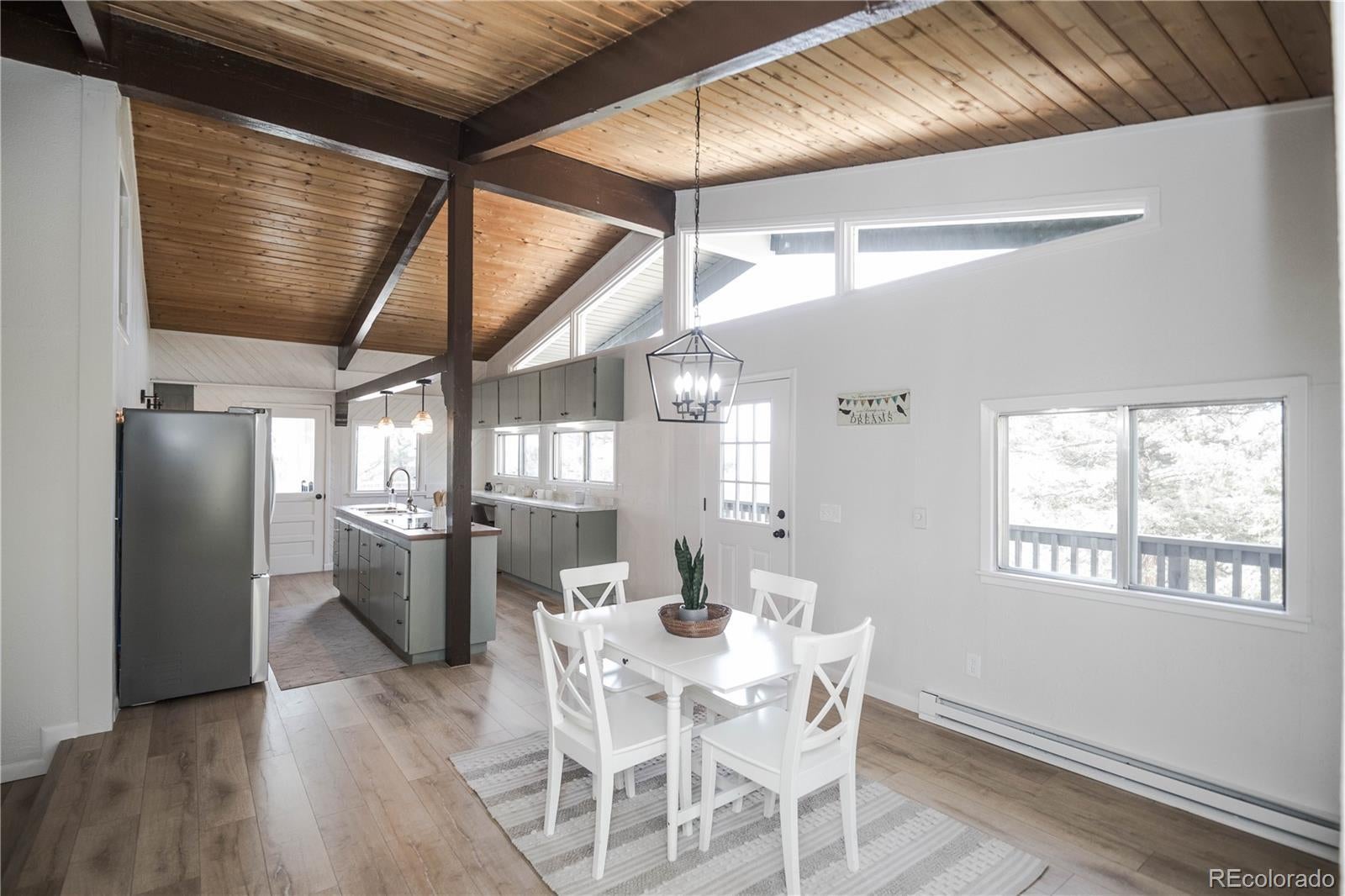 Welcome to 12853 S Wamblee Valley Rd in Conifer—a 2-bedroom, 1-bath ranch perched on 3.3 acres with sweeping mountain views right from your deck. It’s the kind of place where your coffee tastes better, the air feels cleaner, and the neighbors might just be deer. Inside, it’s all fresh and fabulous: new interior paint, new laminate flooring, new carpet, and new vinyl mean every step feels brand new. The kitchen’s had a serious glow-up with painted cabinets, new countertops, and shiny new double oven and fridge—because mountain living doesn’t mean compromising. Outside, you’ll find new exterior paint, a refreshed driveway, and a deck perfect for sunset-watching, star-gazing, or plotting your next adventure. This is more than just a home—it’s your all-season escape, where modern upgrades meet rustic charm and the only traffic jam you’ll hopefully see is a family of elk crossing the road.