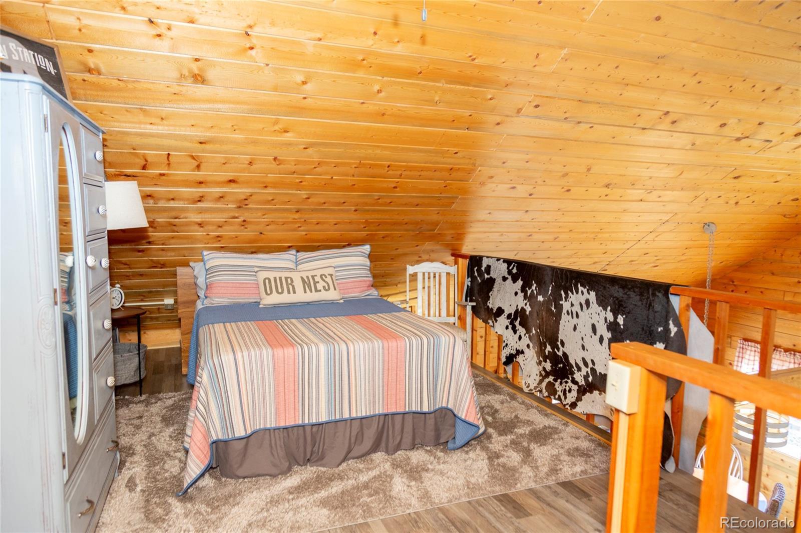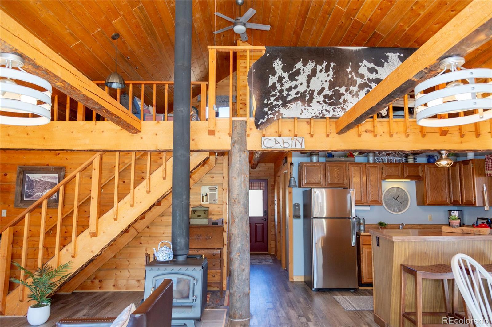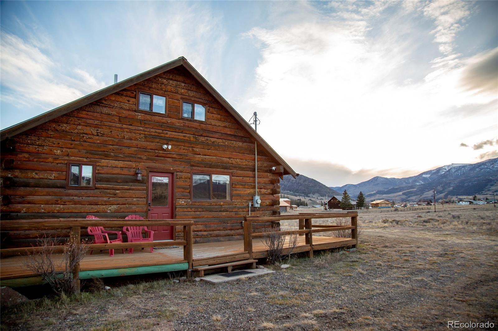 Cozy cabin just outside of town in Holiday Acres, set on a full acre of land. This charming retreat is filled with rustic character and comfortable living space. Enjoy vaulted ceilings, large picture windows, and beautiful views from every angle. Relax on the spacious decks—front and back—perfect for taking in the mountain air. The property also includes a large two-car detached garage and an additional storage shed for all your gear. The main level features one bedroom, one bathroom, a warm and inviting living area, dining space, kitchen, and pantry. Upstairs, the loft provides additional sleeping or flex space along with a convenient half bath. Just minutes from downtown Creede, and close to National Forest access and private prime fishing easement on the Rio Grande River, this location puts adventure right at your doorstep. Don’t let this one slip away.